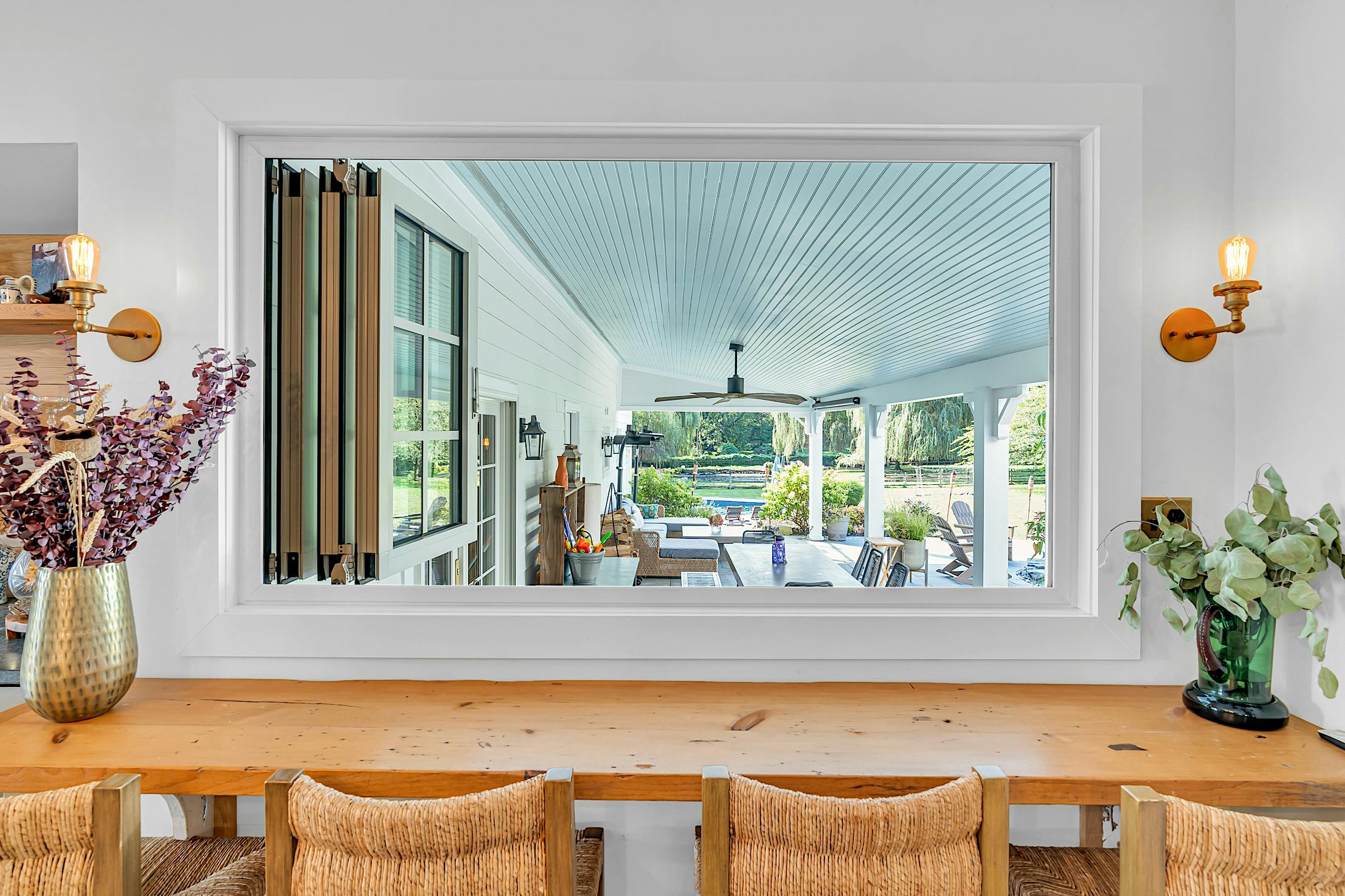 A Home Shaped by Light, Music, Wood Framed Patio Doors, and a Pass-Through Window
