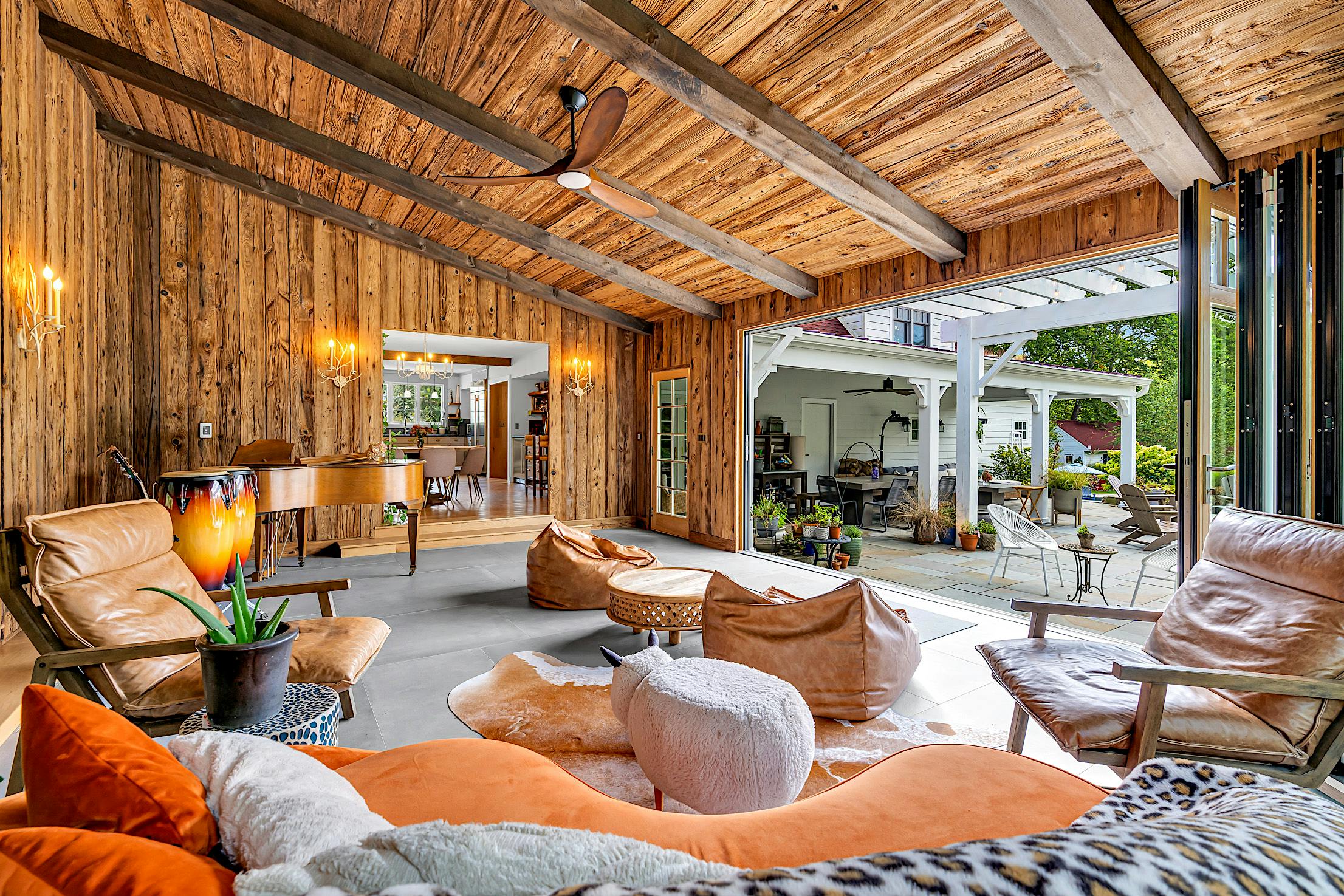 Some homes are designed to impress from the outside. This one was reimagined to breathe from the inside out with wood framed patio doors. For a family of music lovers and outdoor enthusiasts, the goal was about connection. Connection to each other, to the seasons, to nature, to sound, and to their lush backyard space for daily life and family gatherings.