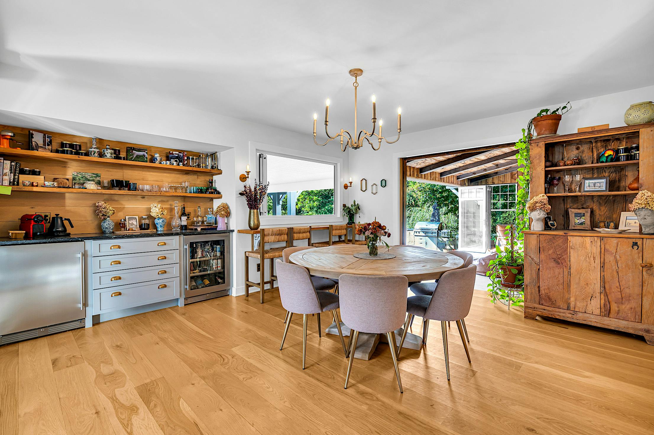 Designed by Jason Hanrahan of Mode Architects, the home features a thoughtfully placed NanaWall kitchen pass-through window and, later, wide bifold doors in the family sunroom. The design evolved in two phases to fit the family’s indoor-outdoor lifestyle perfectly. The result is a renovation defined by openness, light, and laid-back living.
