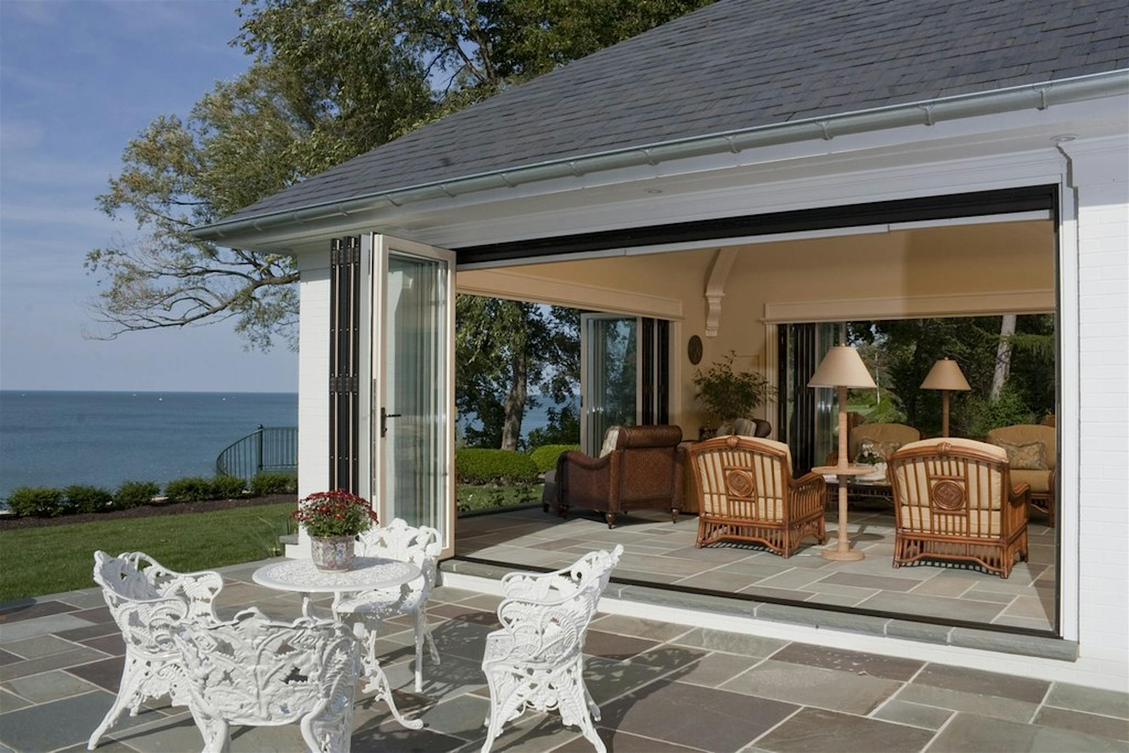 Architect Maddux couldn’t be happier with how the project turned out. “The contractor was pleased, the client was pleased.” In summer, the homeowners can open the walls and create an open-air pavilion to enjoy the lake views. During the winter, the room is secure against weather elements. The homeowners say, “Winter on Lake Erie is brutal. Hail and 60 mph winds left homes along this lake front with severe window damage. The NanaWalls came through without a scratch.” Now, their remodeled room on the lake can be used in all four seasons, rain or shine.
