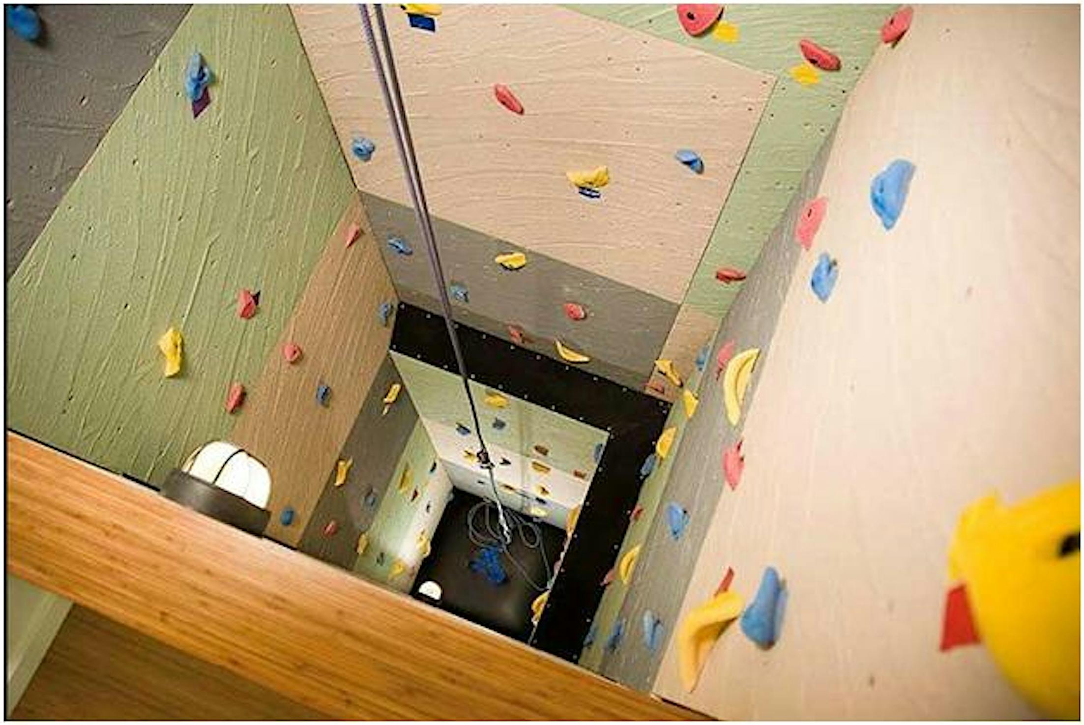 A large porch, facing the South side, became one of the key elements in the project. “Having that Southern orientation was essential to extending the usability of this outdoor space beyond our too brief summer months. Since this porch was a large factor in the form of the building, it seemed wasteful to wall it off from the other living spaces,” explained Chris. NanaWall folding glass doors became the perfect solution to connect the porch and the kitchen/dining area with a seamless transition. “While every window company on the planet now seems to offer a fold-slide door we felt that it made sense to go with a company that had specialized in this for a long time, had a big investment in technology + engineering, and had a solid track record in standing behind their product” says Chris. NanaWall’s pivot windows were also used to keep the house cool and connected to the outdoors during the summer. Designed for multi-generational use, accessibility and adaptability can be seen throughout the home. Even the three story rock climbing unit can be easily converted into an elevator in the years to come!