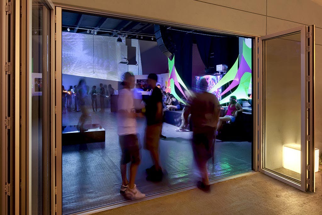 Why is a NanaWall the life of the party? Because it’s perfect for bringing the party outdoors. The 20,000 sq ft gallery space transitions onto a terrace through large folding walls. People spill out of the opening onto a 10,000 sq ft garden, with room for tents, furniture, stages and more. The party just keeps going. Isn’t it so much better when you can party indoors and out?