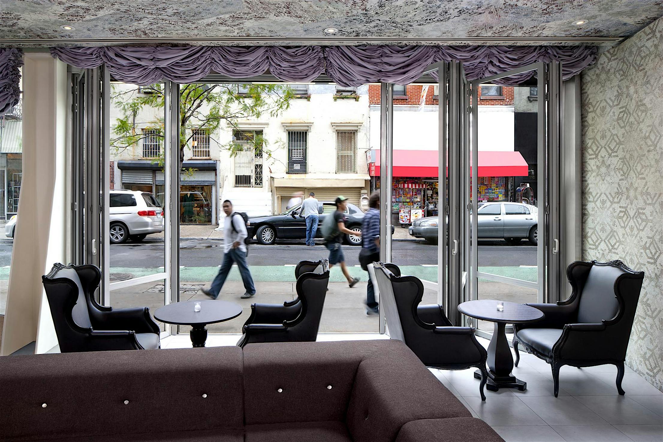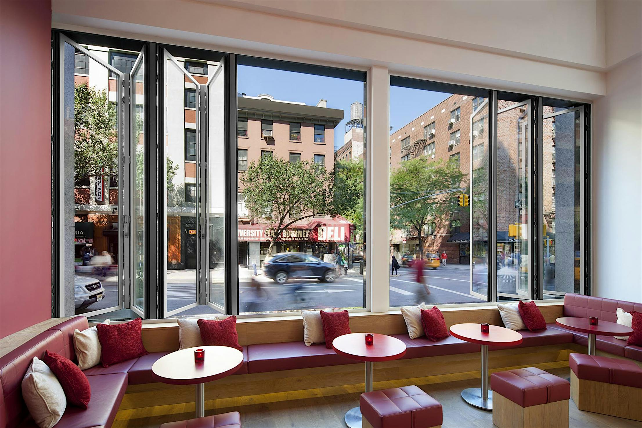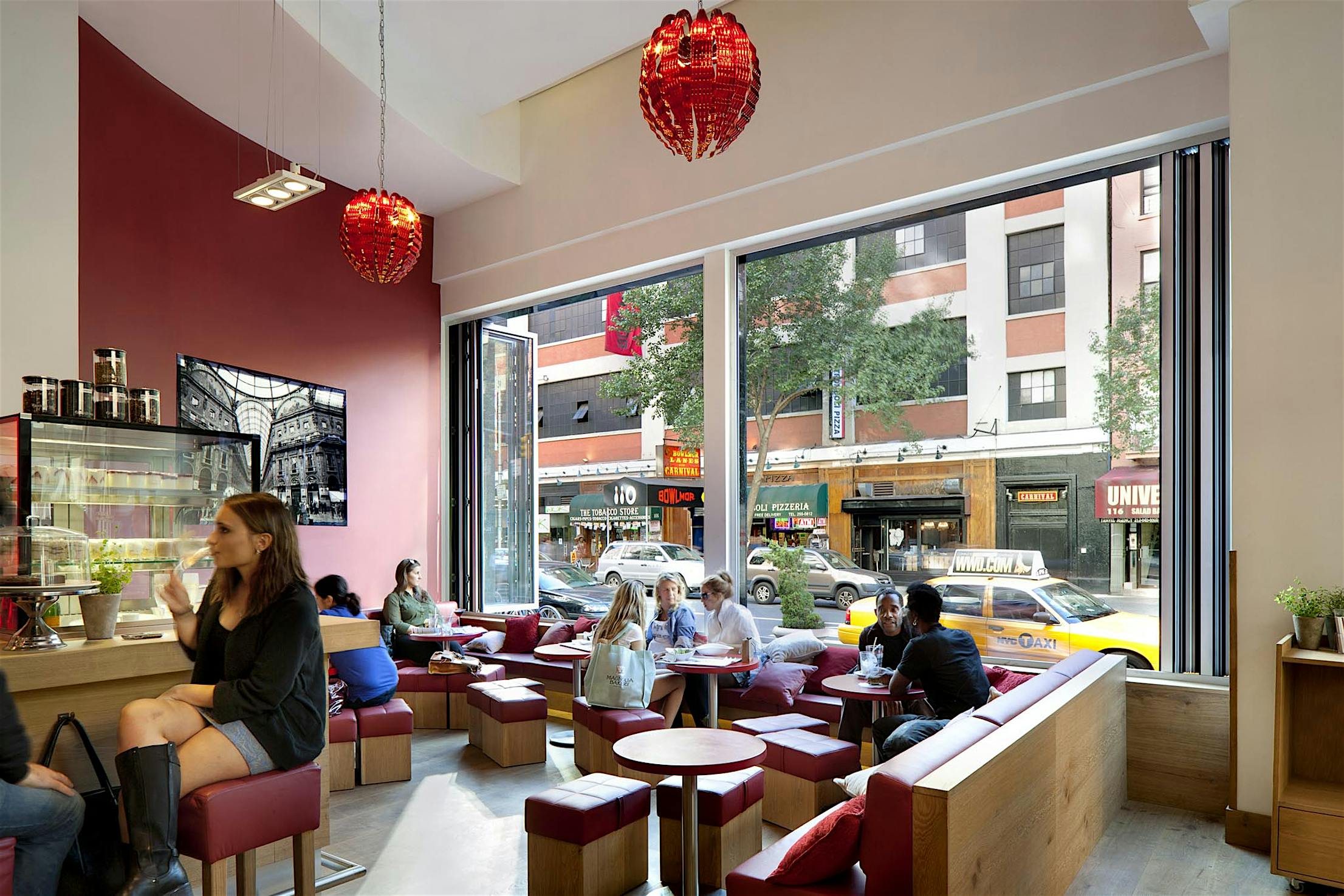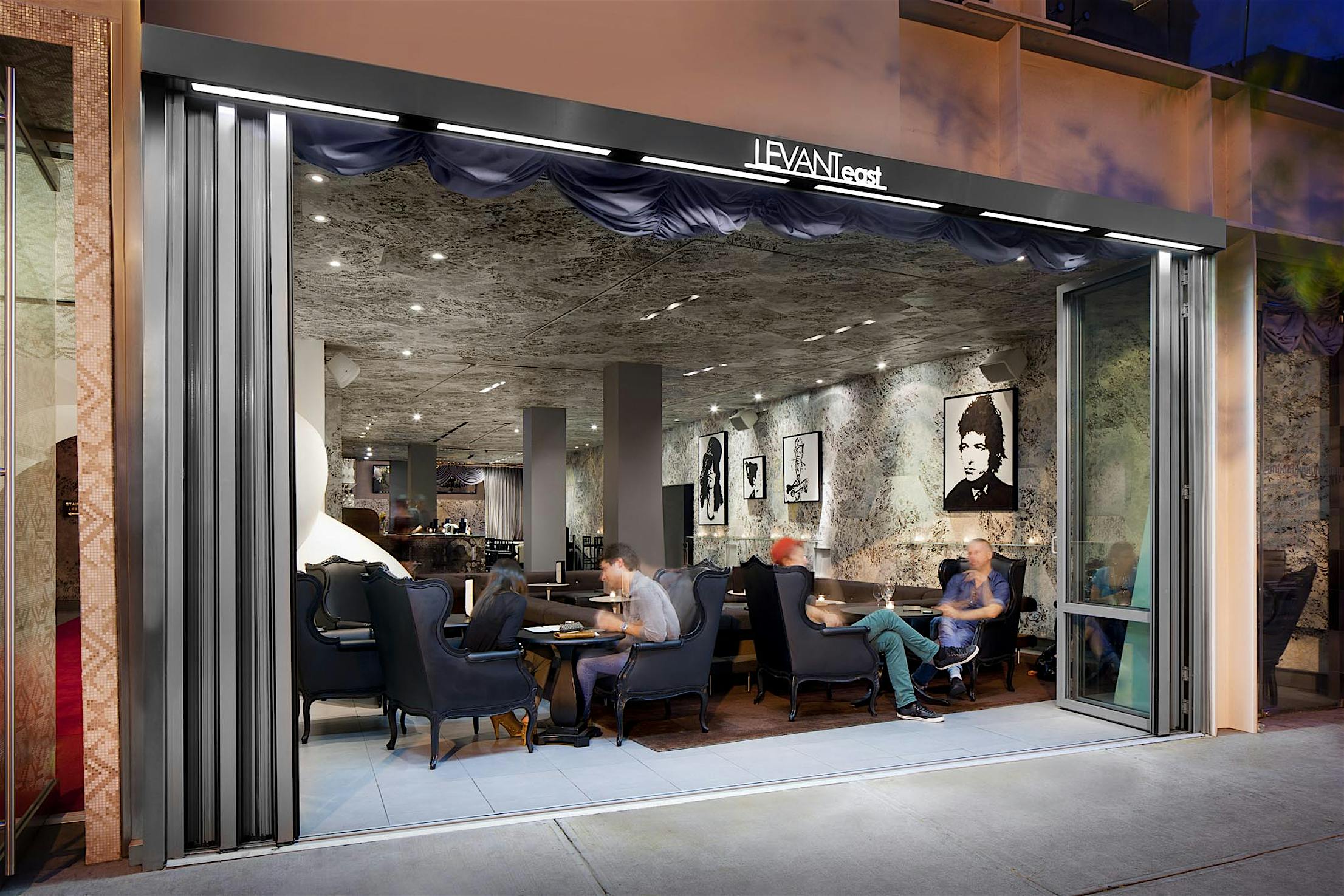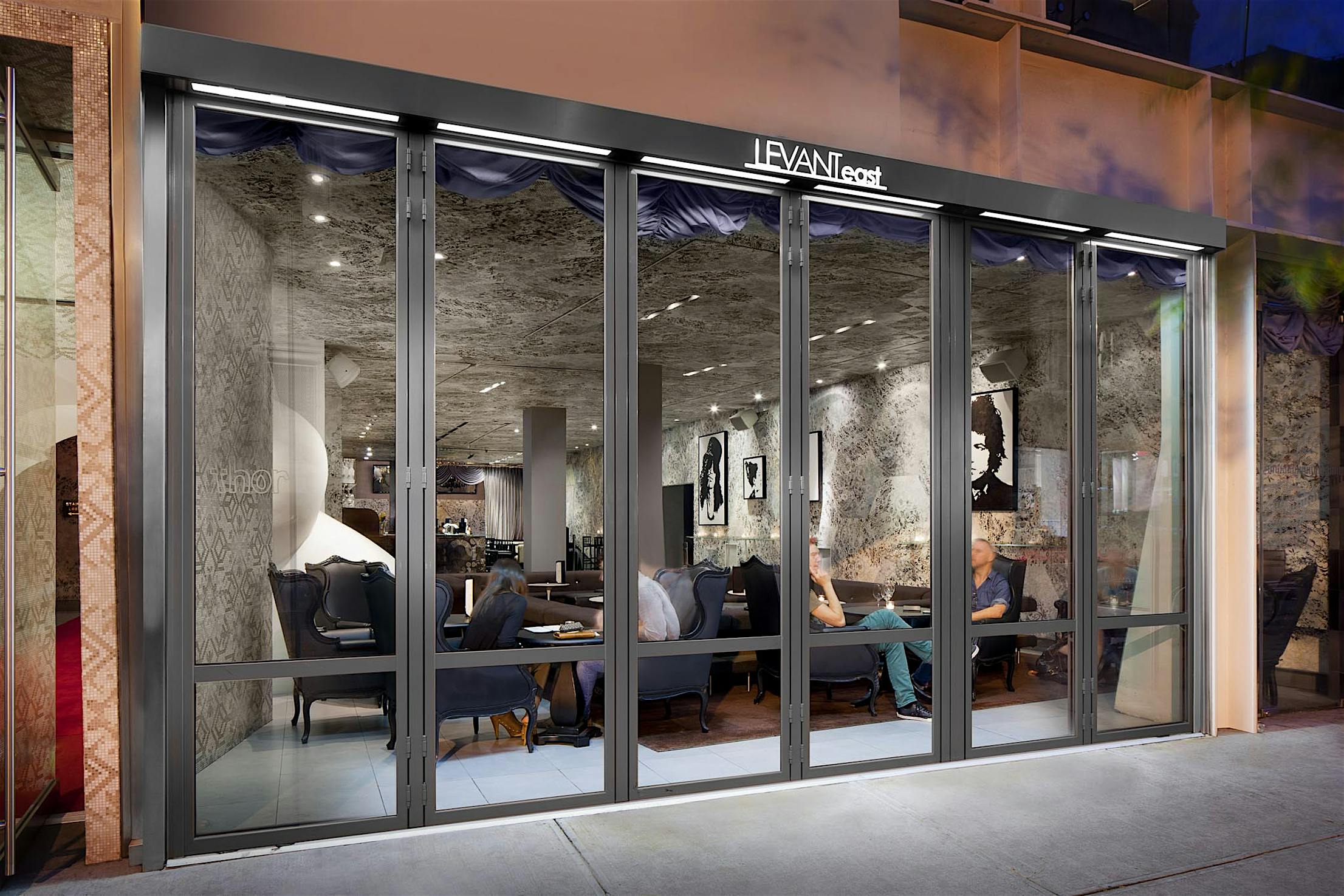 A wide-open entrance created by commercial patio door systems removes the barrier between street and restaurant to allow a free flow of customer traffic. Passersby easily see the food and immediately enjoy the restaurant’s ambience and entertainment.