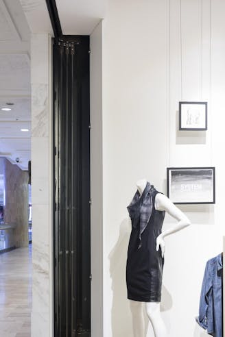 The design of the retail storefront continues to work even after-hours. When time to close, a NanaWall storefront continues the showcase the interior and provides a secure, energy-efficient, transparent façade