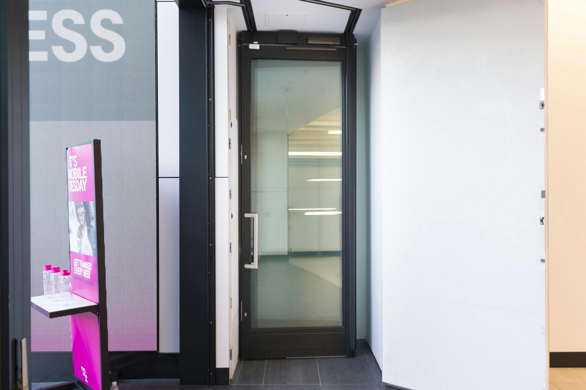 Doors can remain open during business hours, integrated with the rest of the bank floor, and then be securely segregated after the bank closes for singular access and operation.