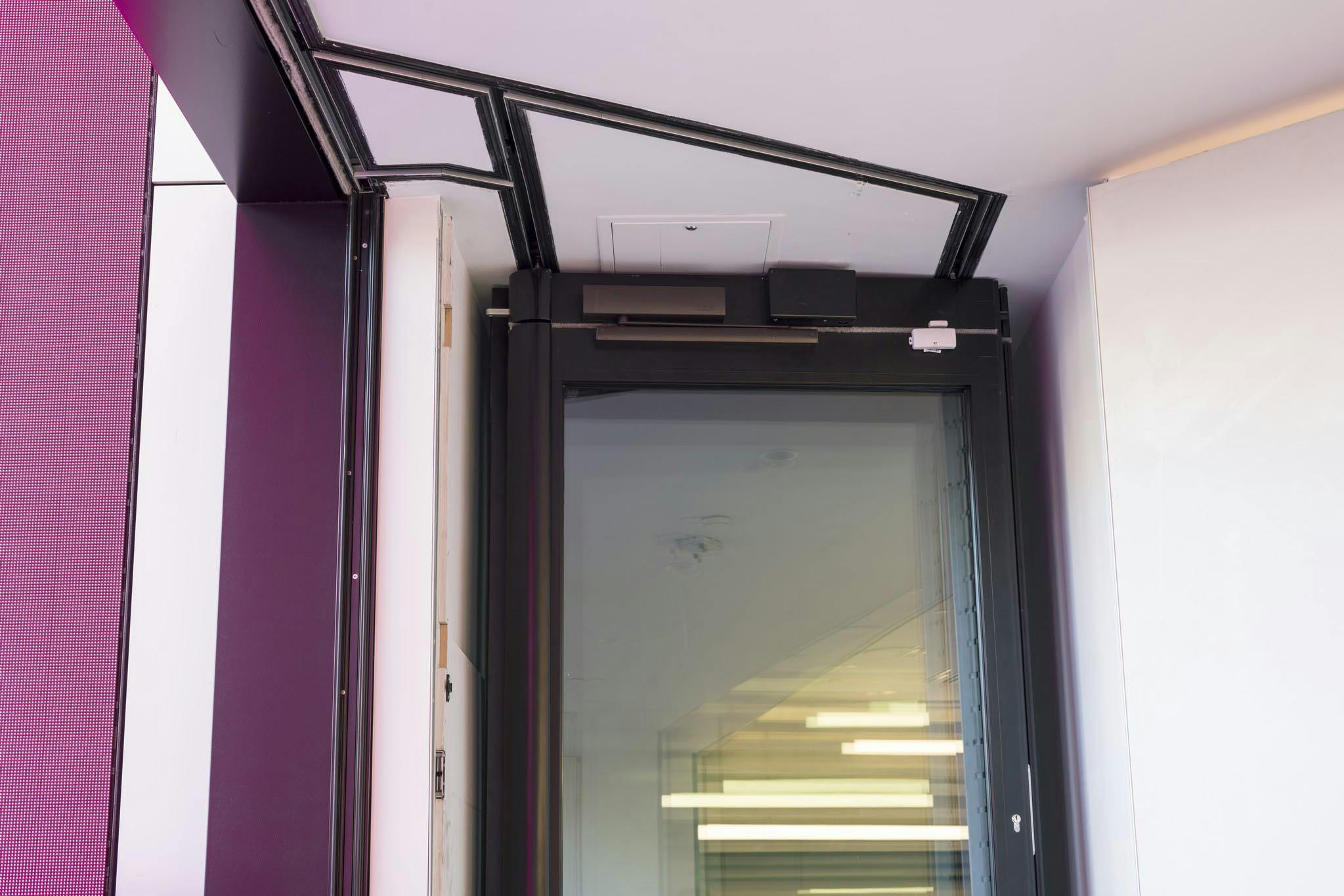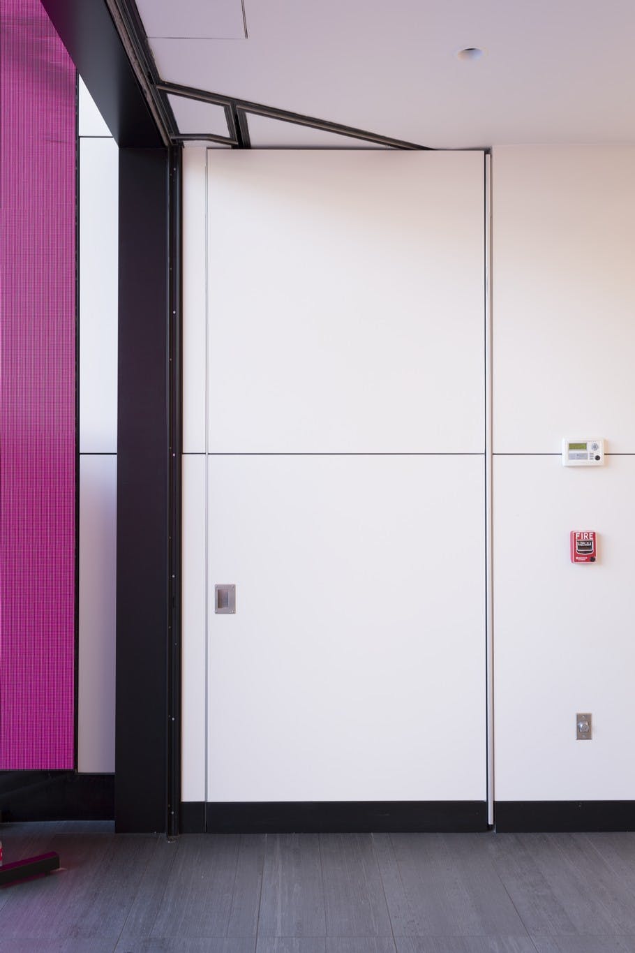 The glass wall system is made of individual panels, each running along a single track and providing effortless design flexibility.