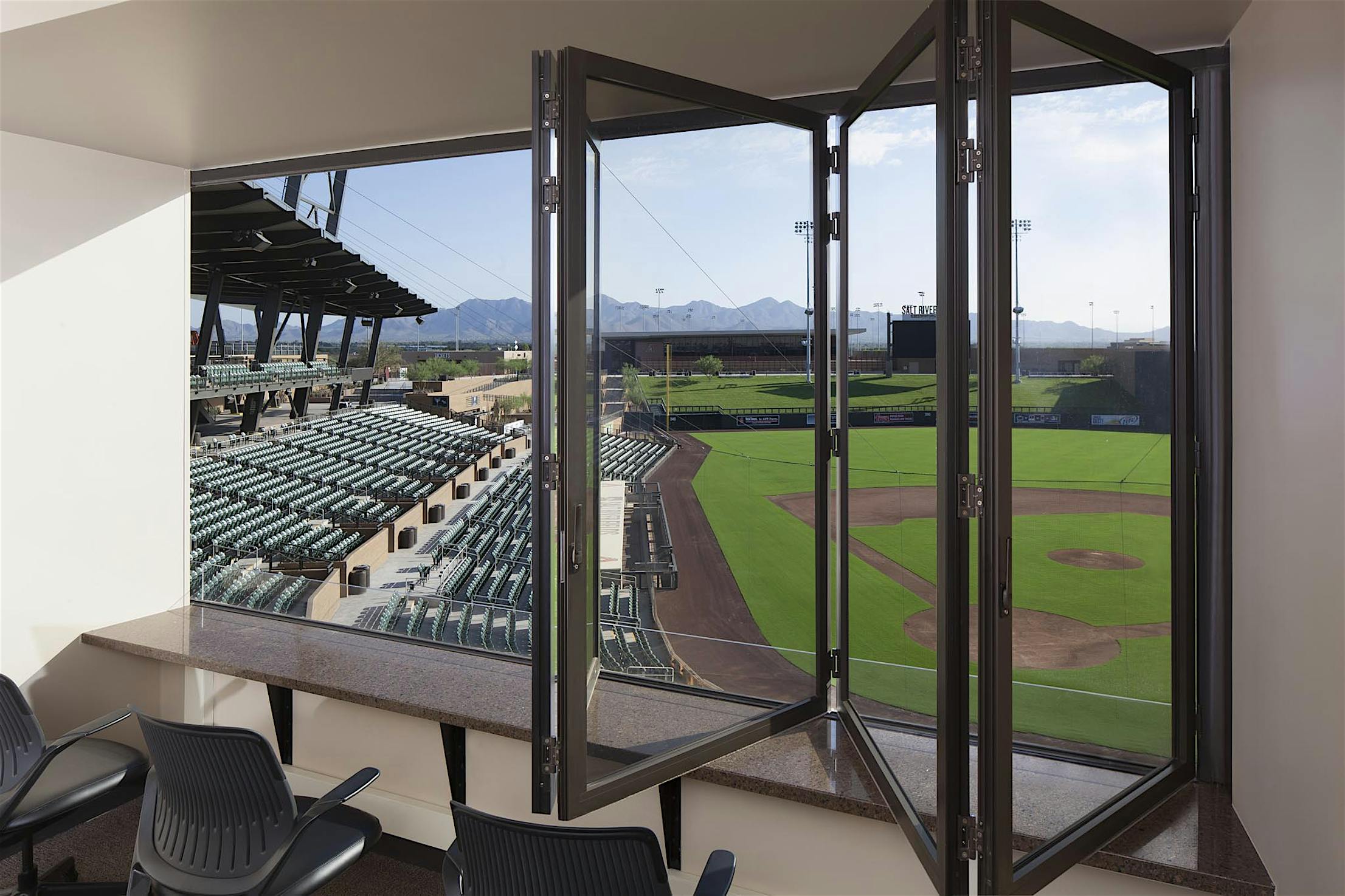 Unobstructed sightlines to the field even when closed. Barely-there frames (or none at all) and large panel sizes that can stack out of the opening transform sports venues into indoor/outdoor spaces for the ultimate game watching experience.