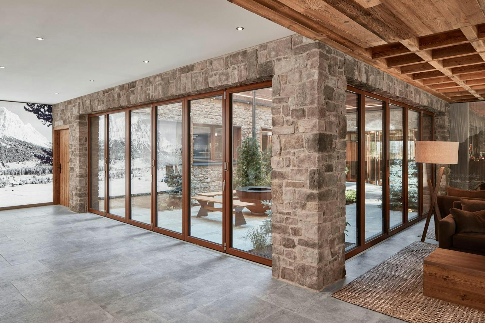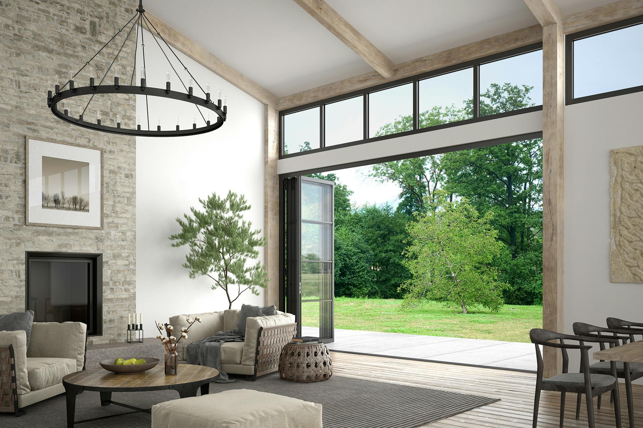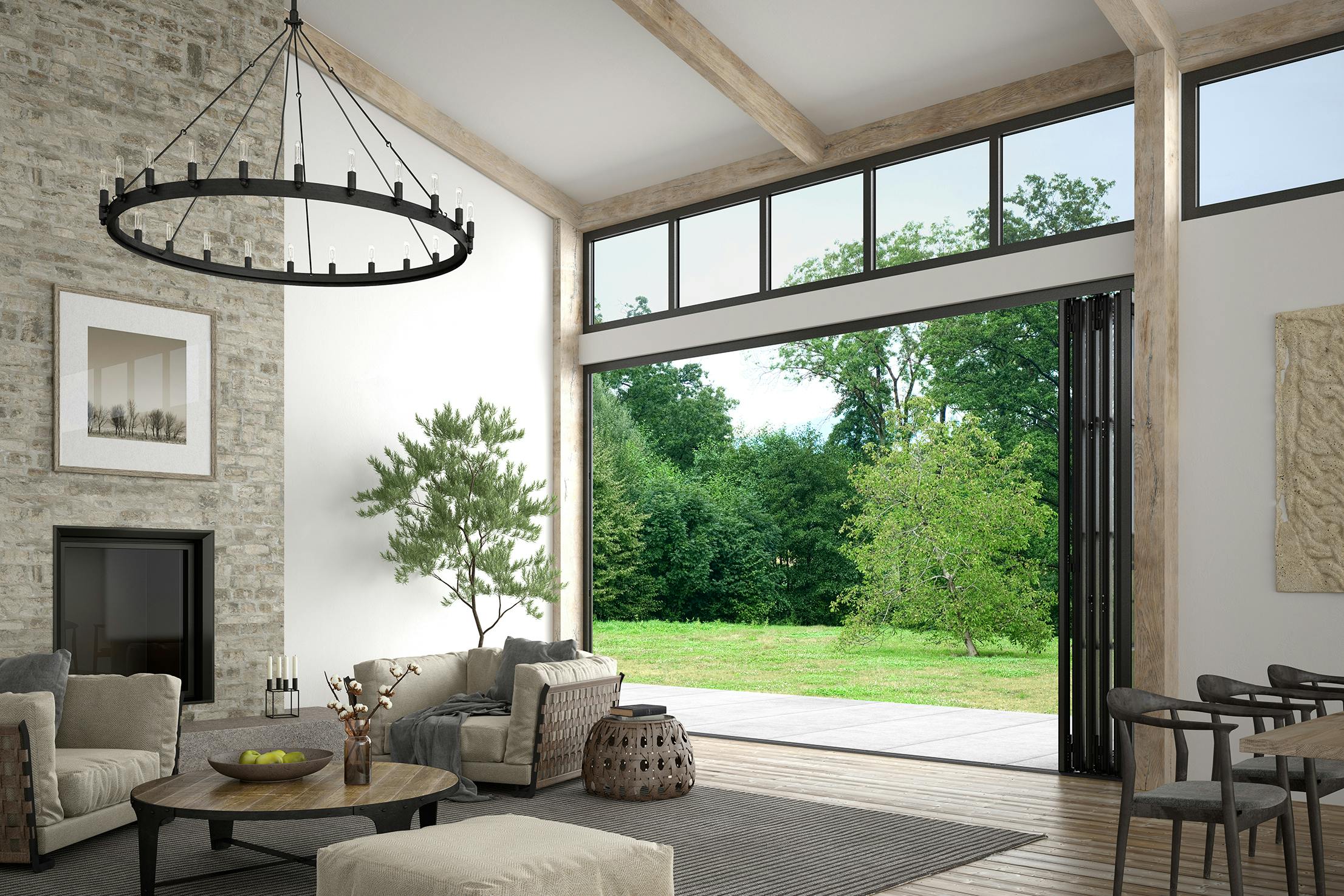 Our aluminum clad folding glass doors serve a dual purpose— providing the performance-driven warmth of the interior wood with the durability of an aluminum exterior.