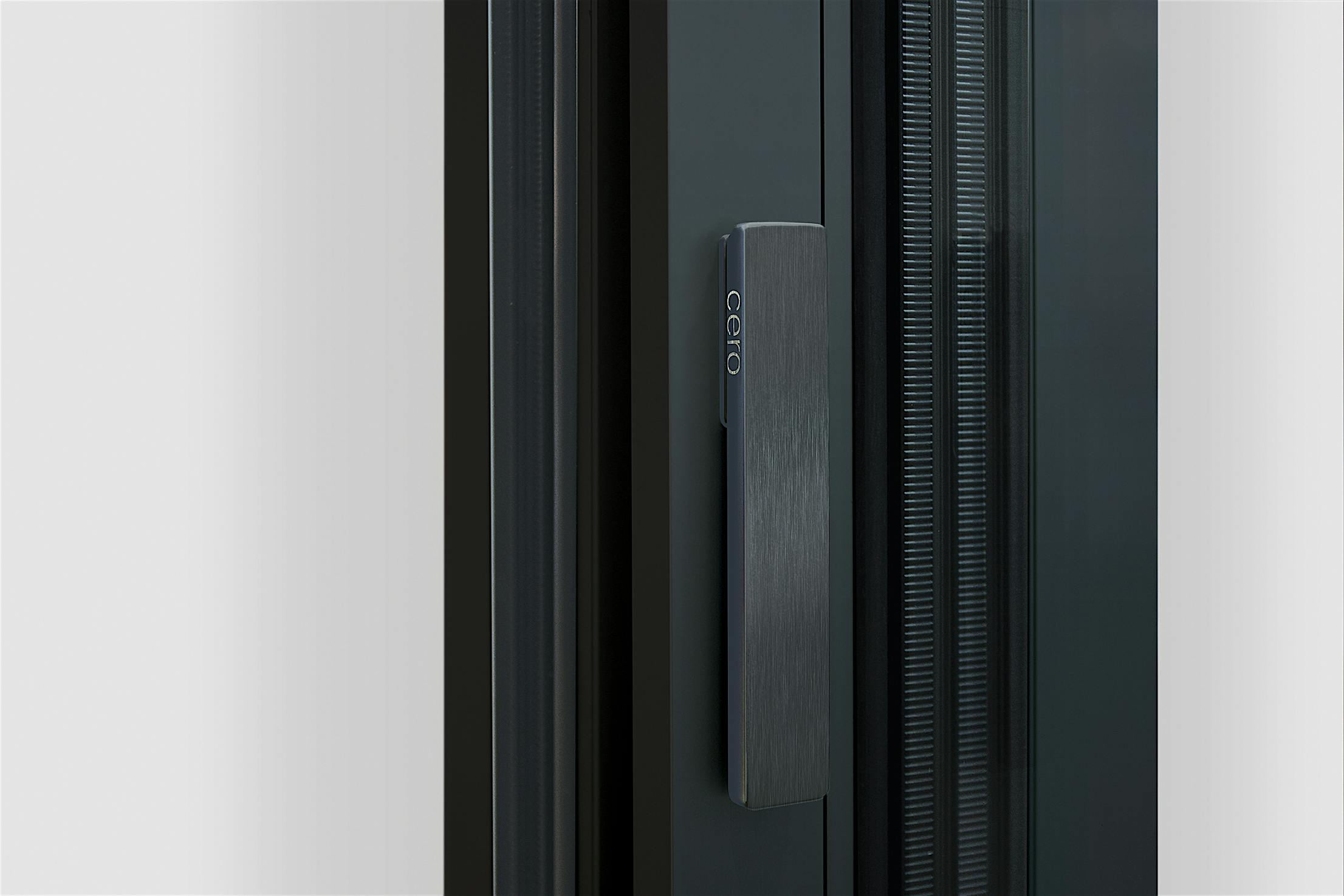For outswing units with larger panel sizes, we supply a spring-loaded pull handle to ease the system’s closing. Handles come in silver or black titanium stainless steel and feature bumpers to avoid metal-to-metal contact.