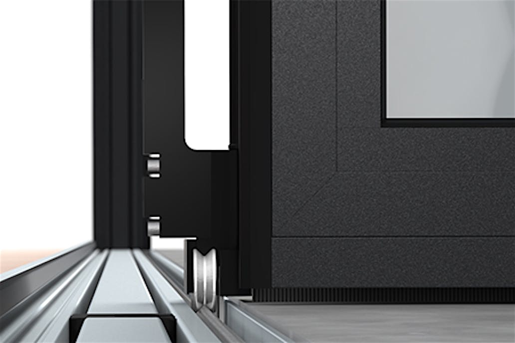 NW Aluminum 840 floor supported panels are capable of heights up to 11' 6" (3500 mm). As a custom-built architectural solution, this system is available in inswing or outswing configurations and can accommodate open corner designs.