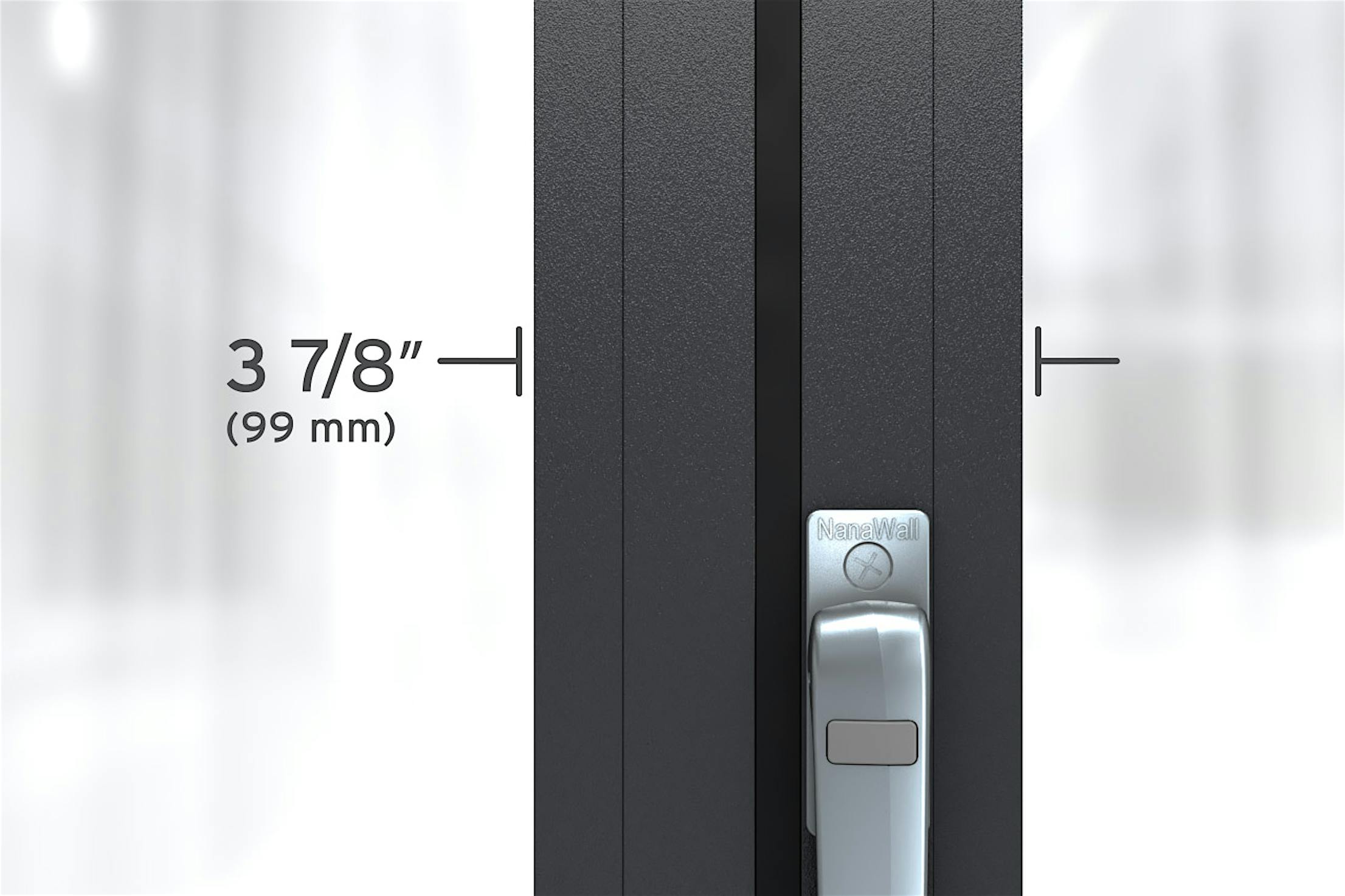 The slimmest aluminum frame of the NanaWall accordion glass doors product line. With a frame profile styled in a crisp, angular design, the intersection of two folding panels is a mere 3 7/8" (99 mm). This floor supported system offers an extremely streamlined appearance with minimal exposed hardware, creating a new level of aesthetics.