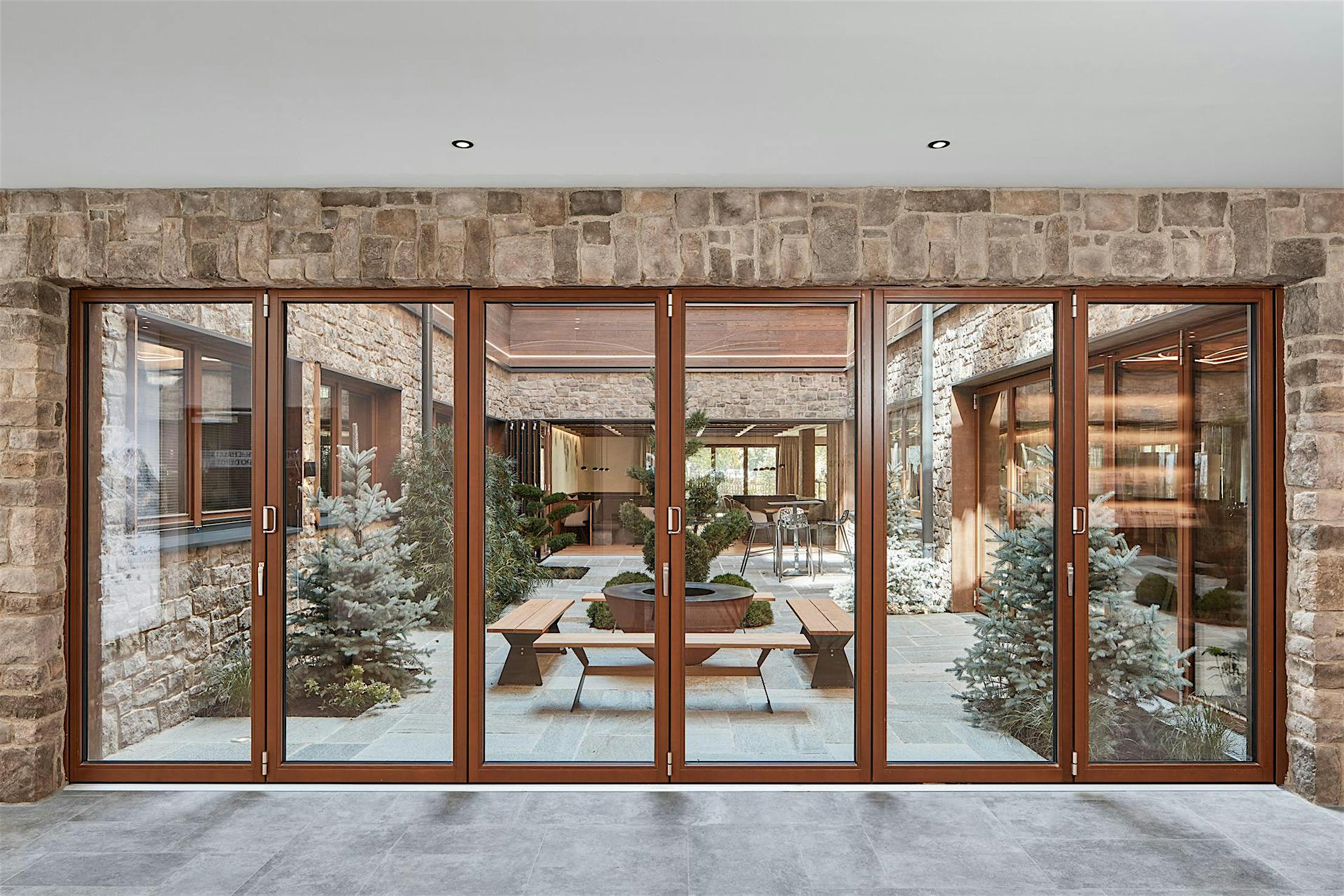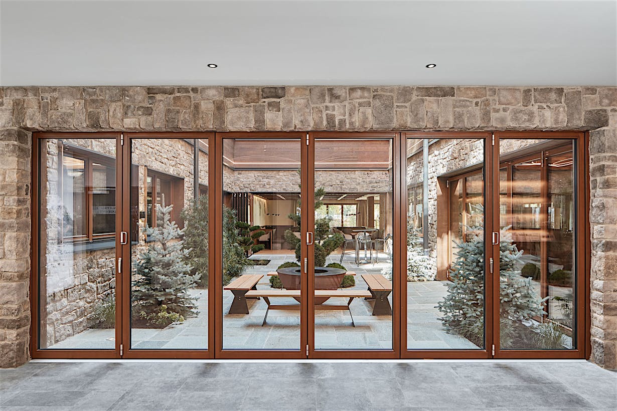 NW Wood 540, along with the Generation 4 Folding Glass Walls by NanaWall product family, is the only floor supported folding system available that allows for larger opening sizes and flexible space management with the integration of FourFold or SixFold Panel Sets. These panel sets can move and stack either to the right, left, or center within the same track allowing the panels to be stacked in the most convenient location as needed.