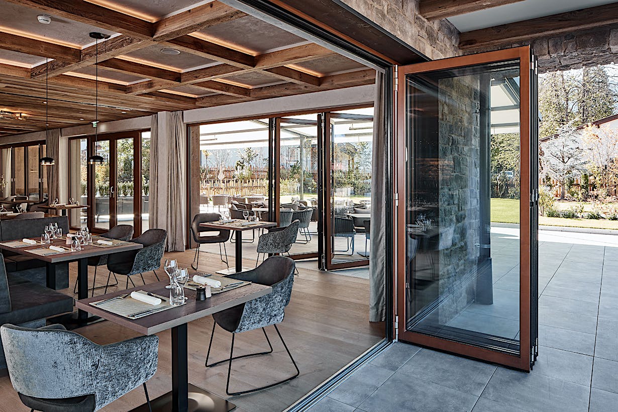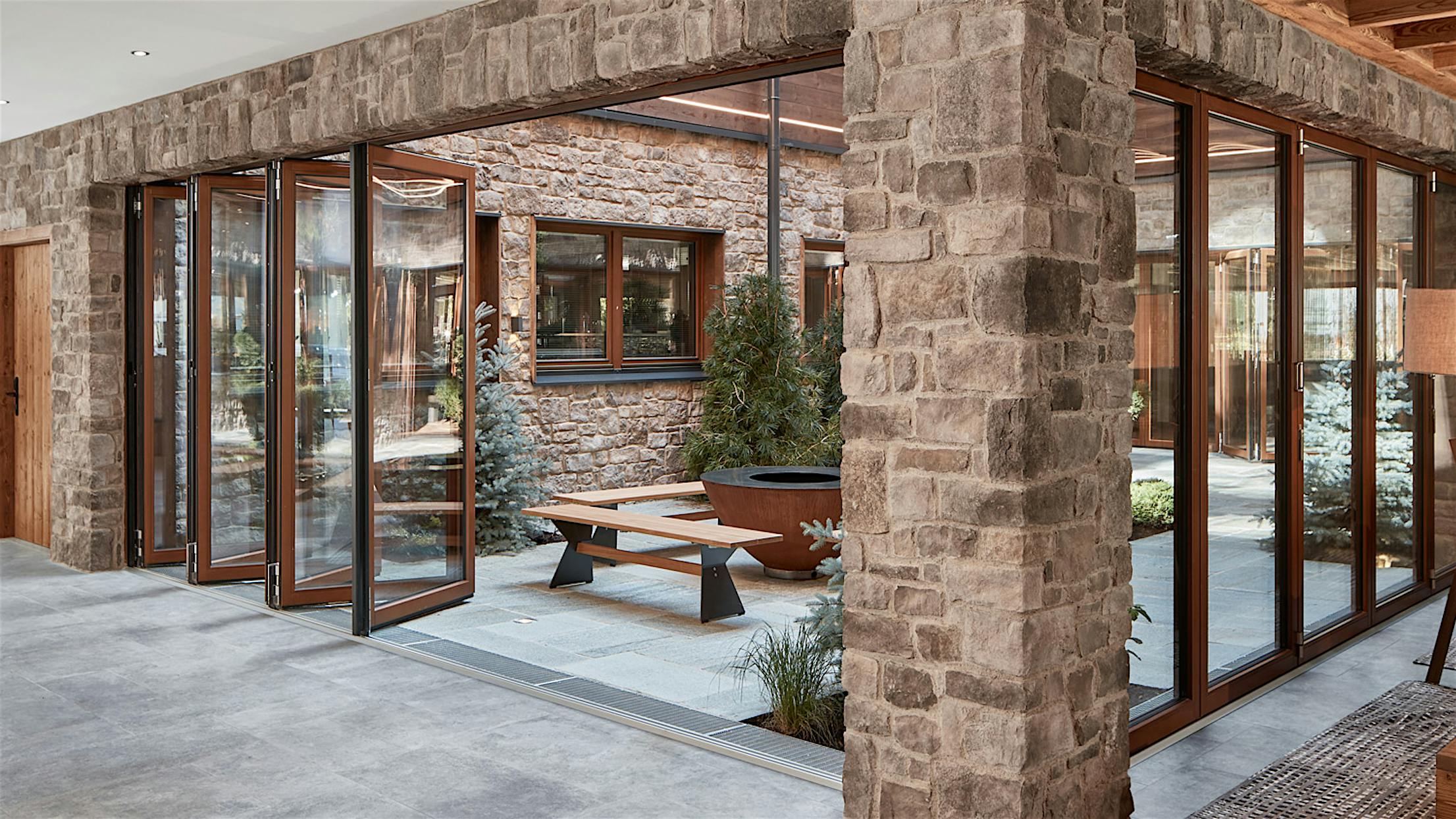 These floor supported panels are capable of impressive heights up to 9' 10" (3000 mm). As a custom-built architectural solution, this system is available in inswing or outswing configurations and open corner designs.