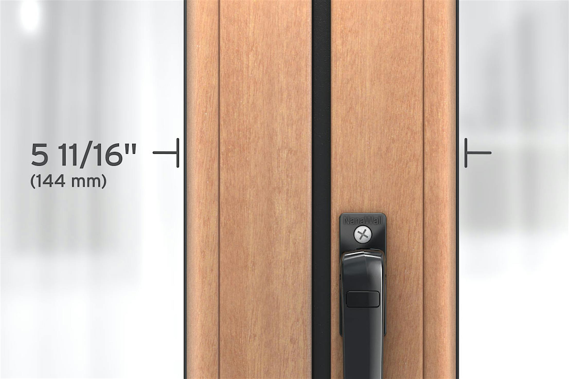 - Intersection of two folding panels is a mere 5 11/16″ (144 mm) for minimal sightlines