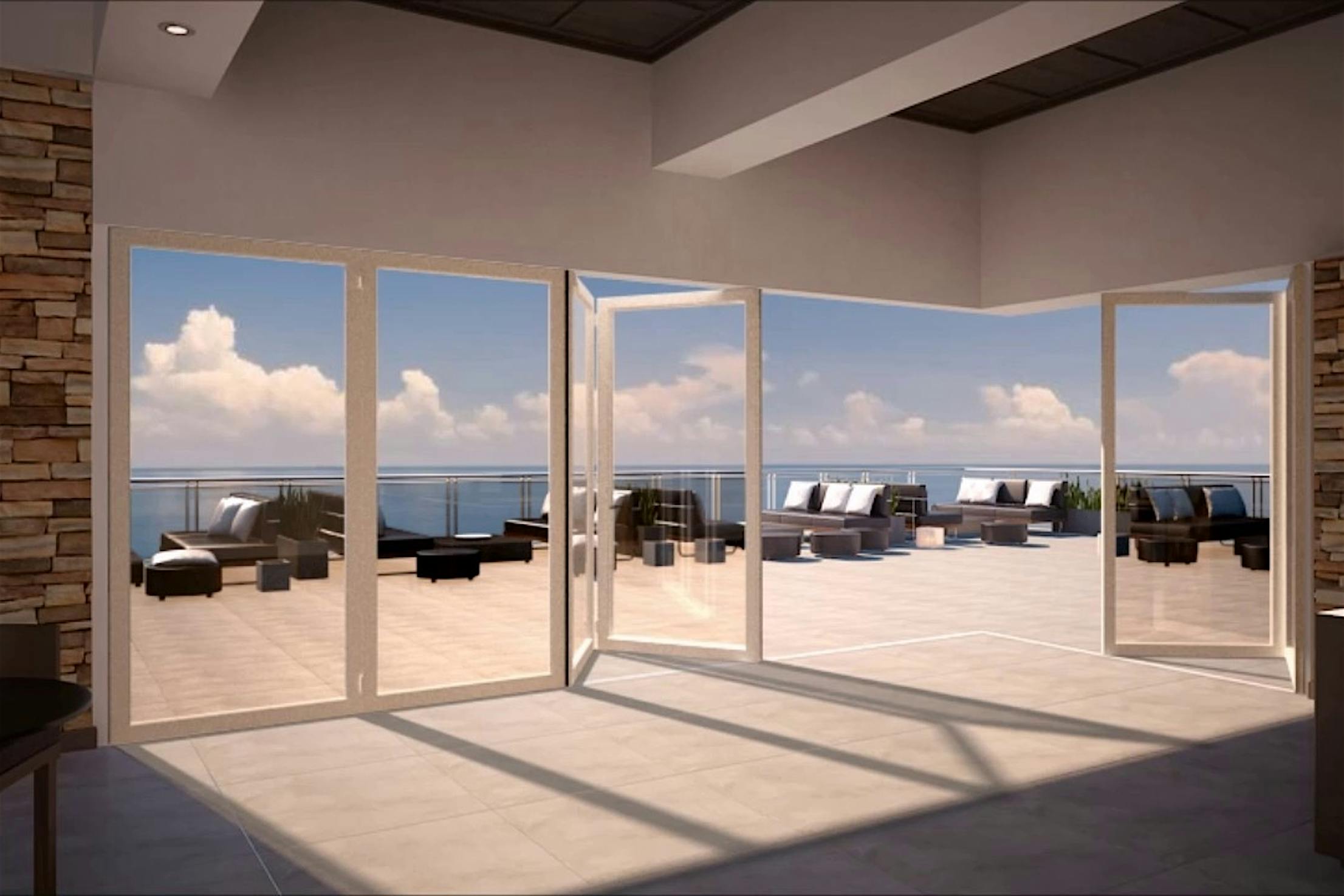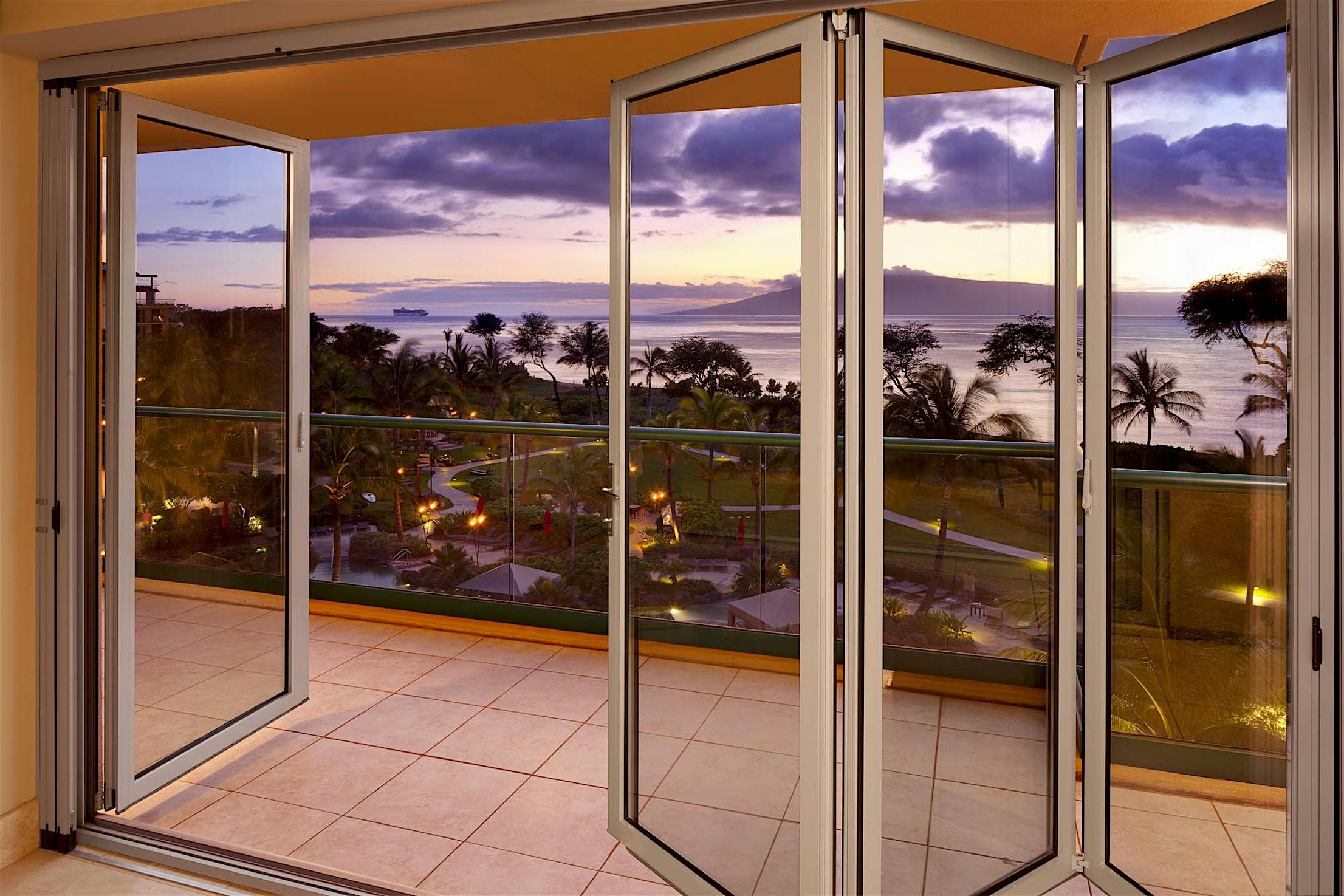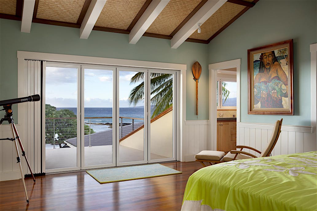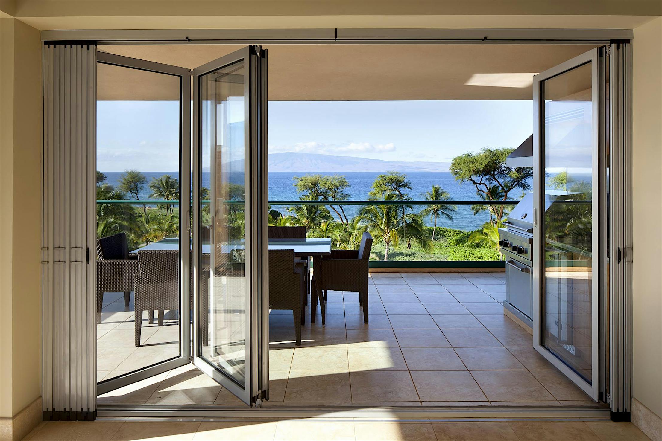Narrow profiles maintain equal sightlines around each door panel. Water-rated Low Profile Saddle Sill provides a smooth, barefoot-safe transition between indoor and outdoor spaces. Configuration options include a daily access door without needing to open the entire system.