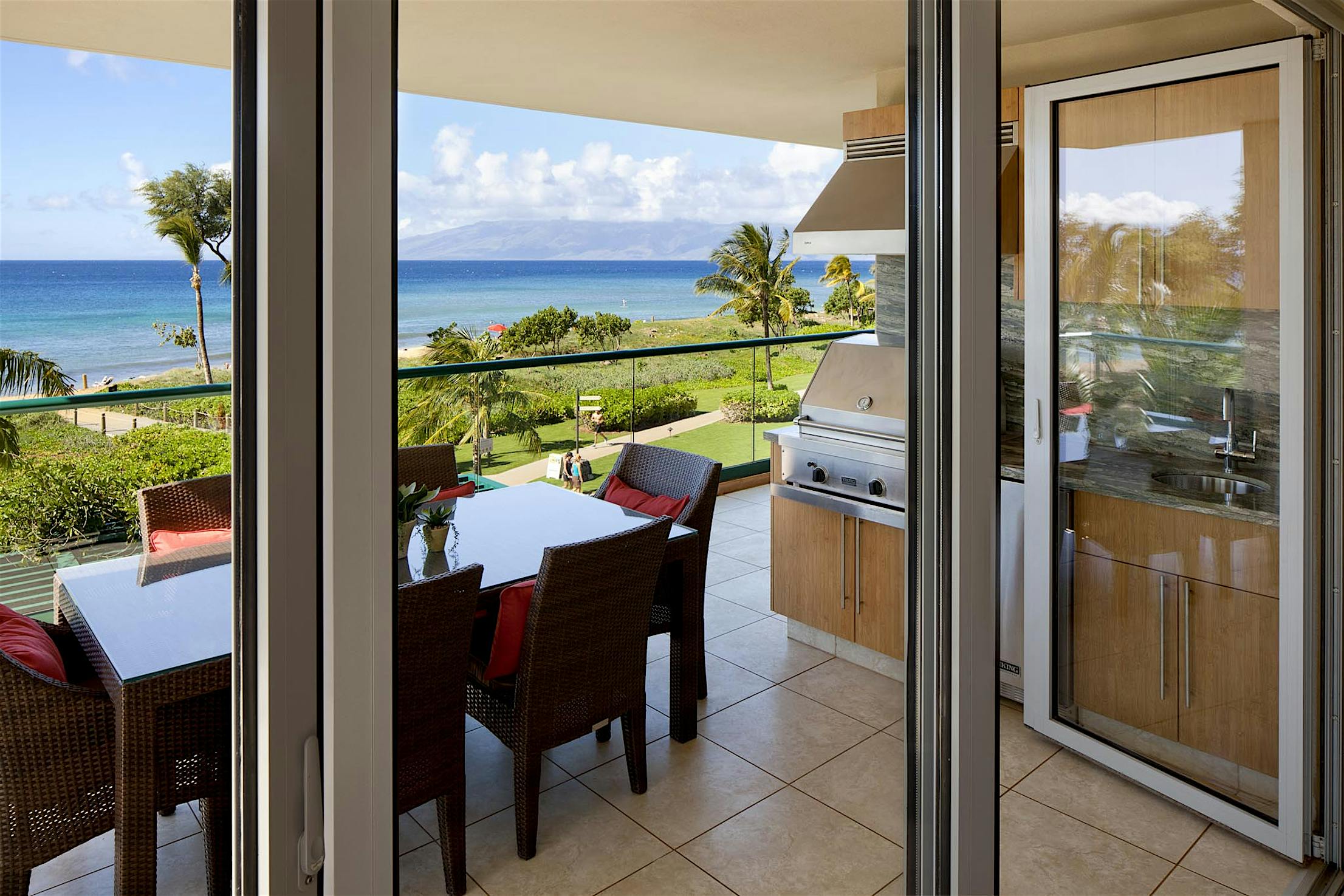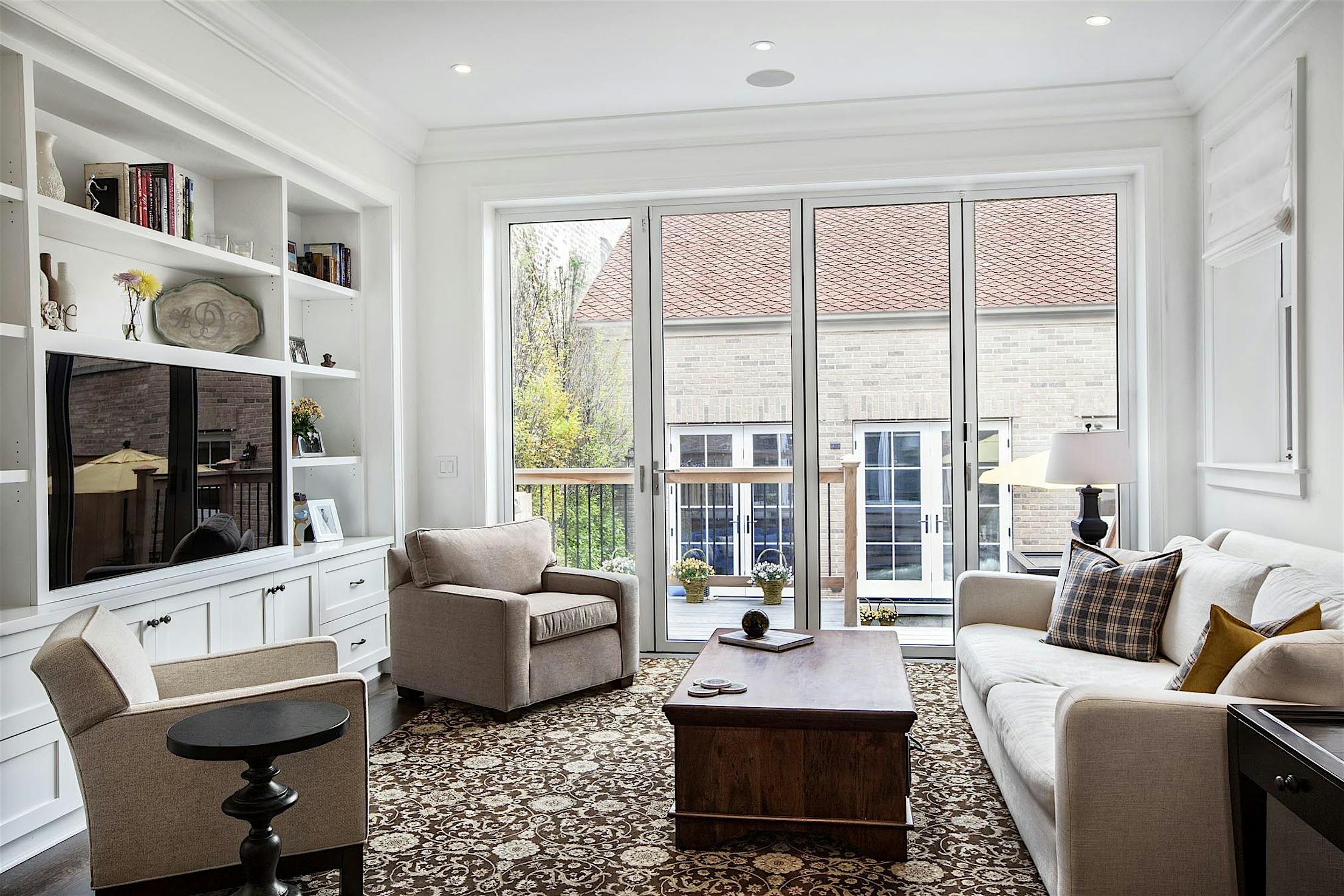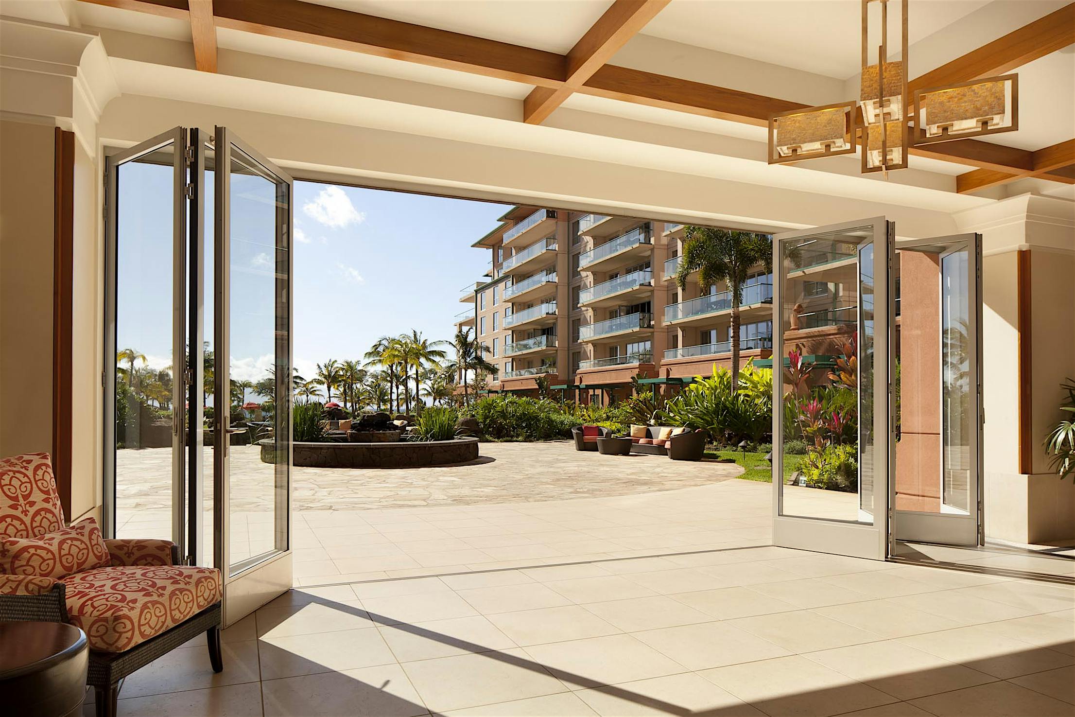 Narrow profiles maintain equal sightlines around each door panel. Water-rated Low Profile Saddle Sill provides a smooth, barefoot-safe transition between indoor and outdoor spaces. Configuration options include a daily access door without needing to open the entire system.