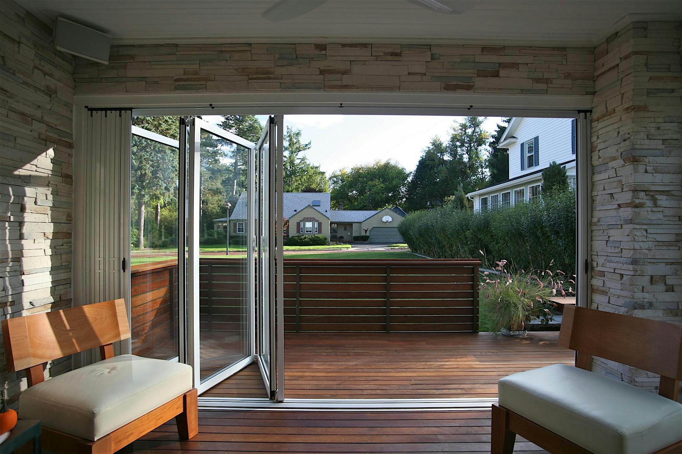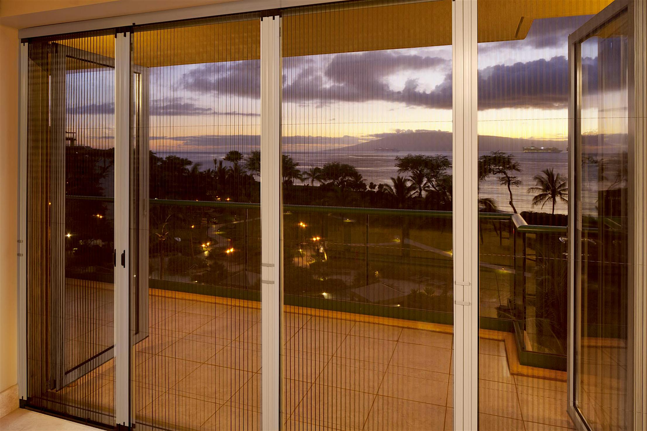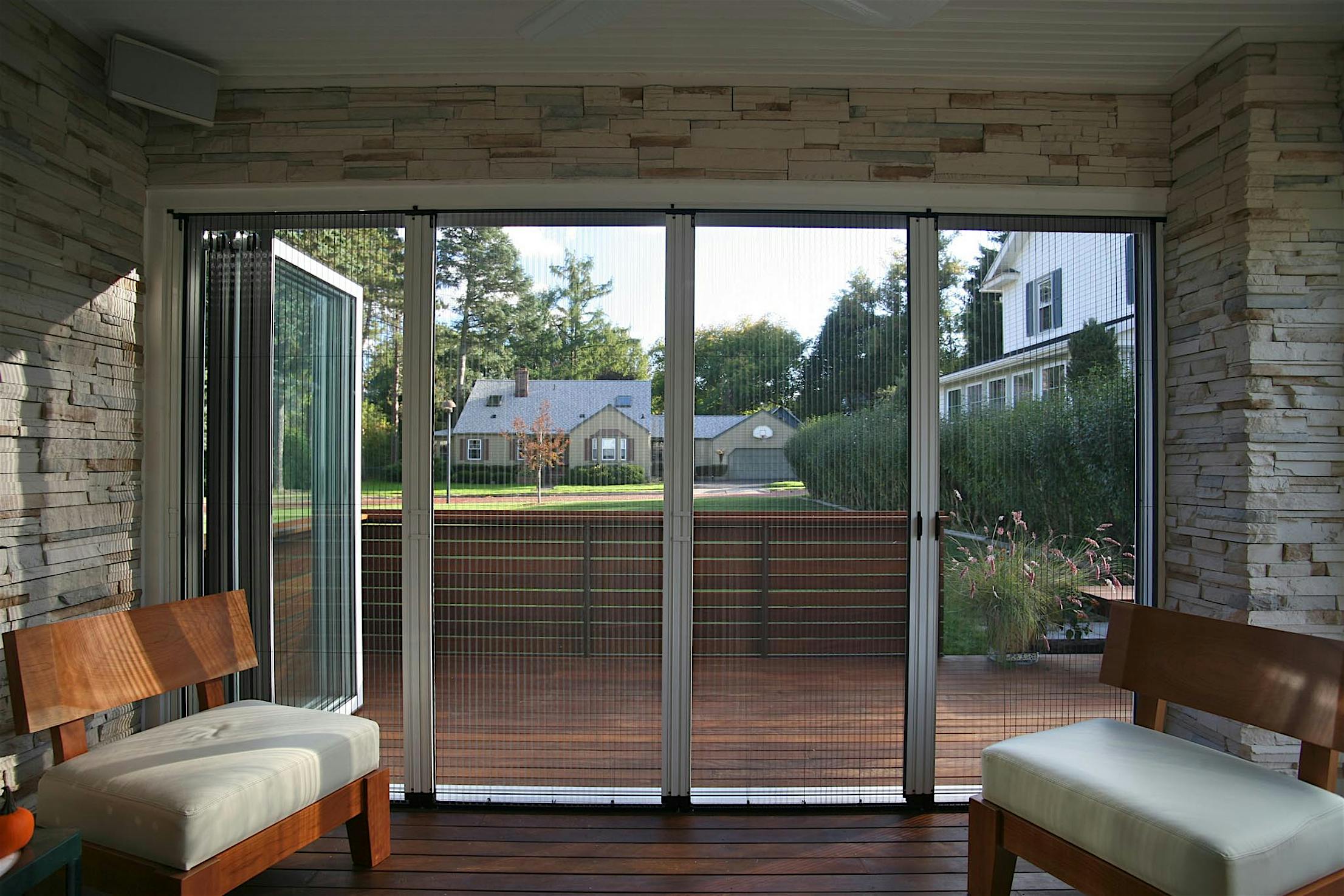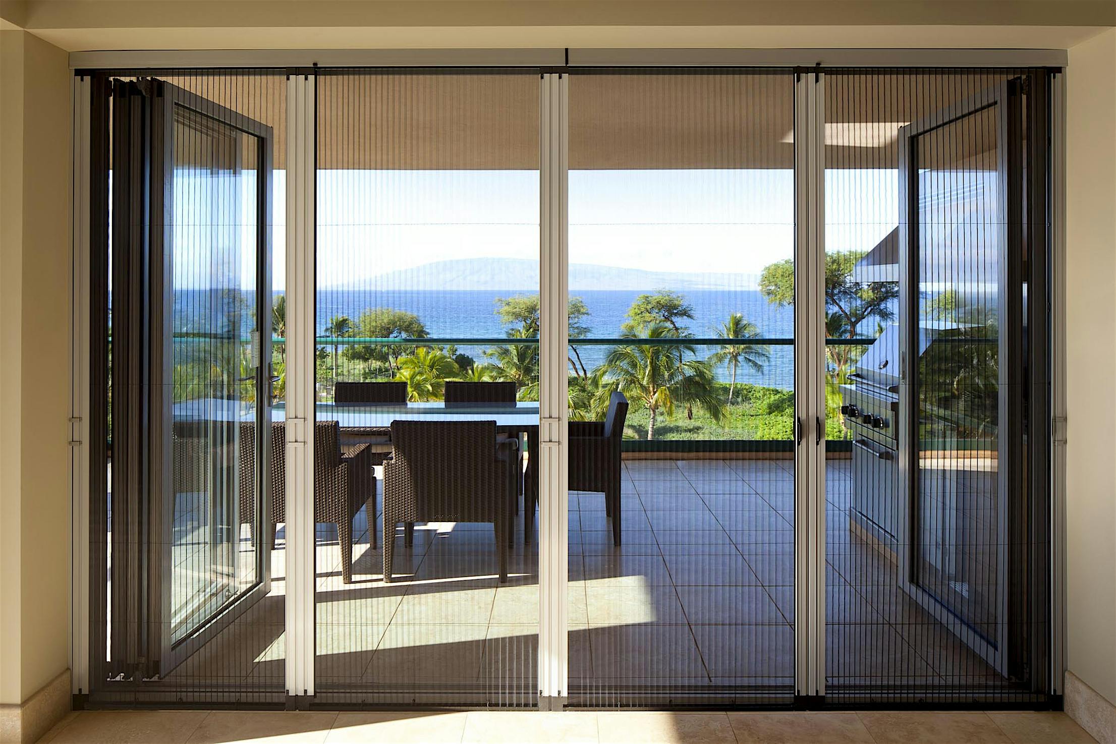 A retractable screen add-on is perfect for blocking bugs while providing privacy and fresh air. Screens are not available through NanaWall Systems.