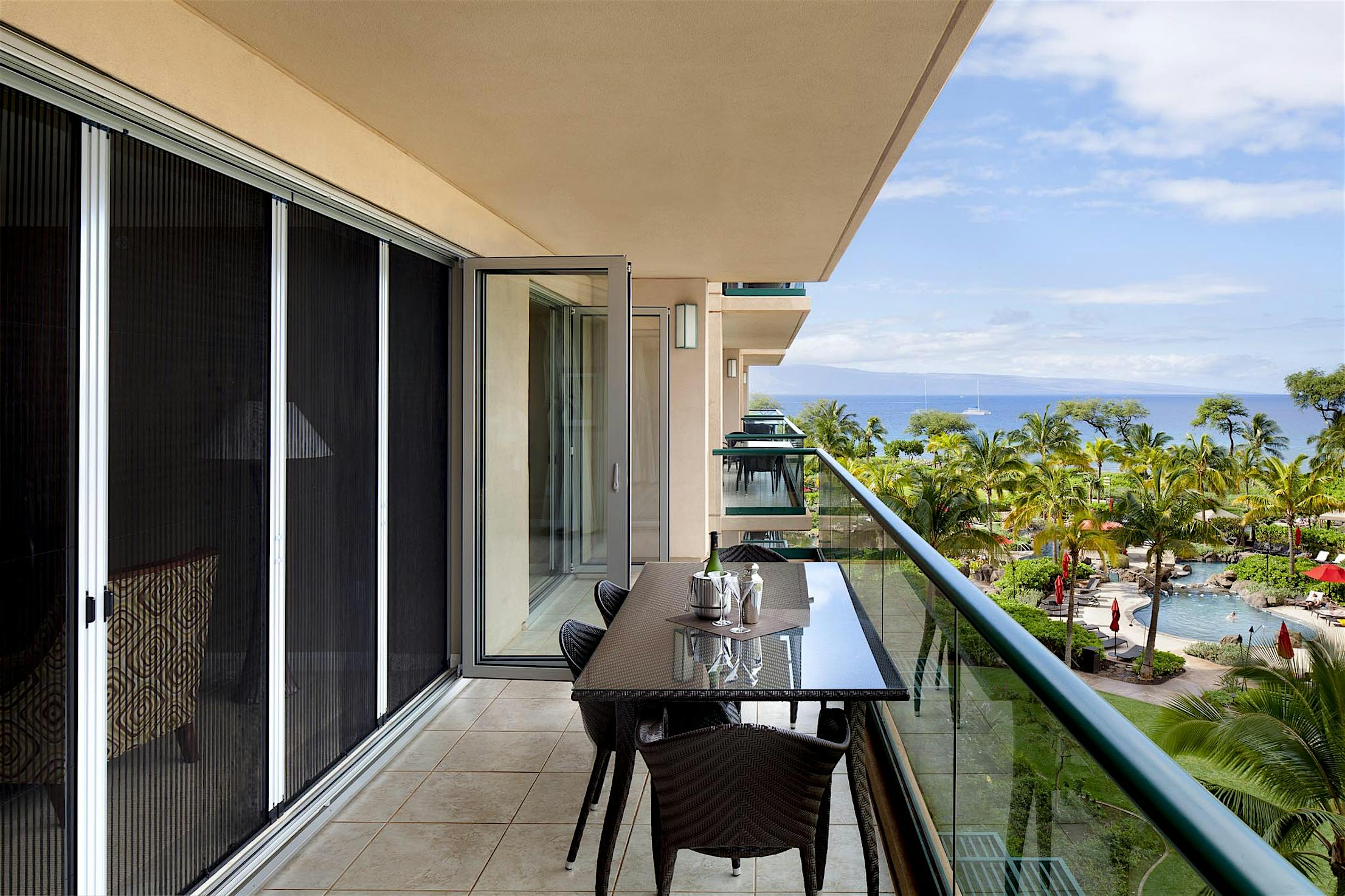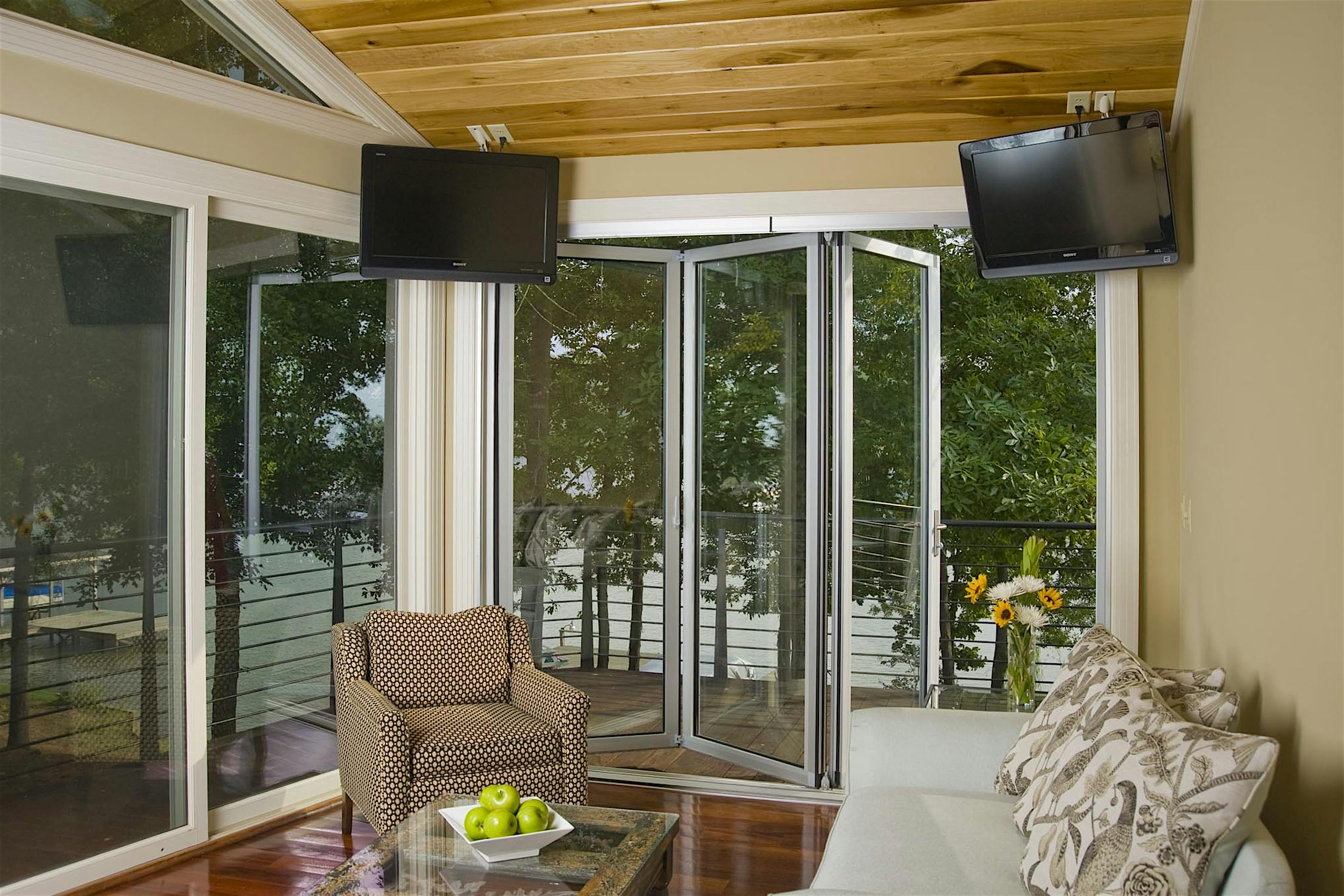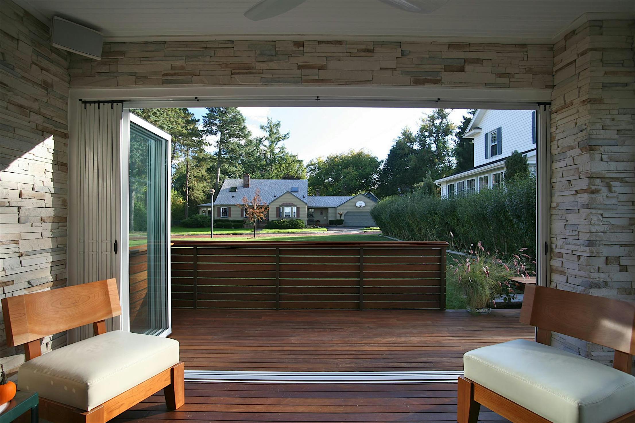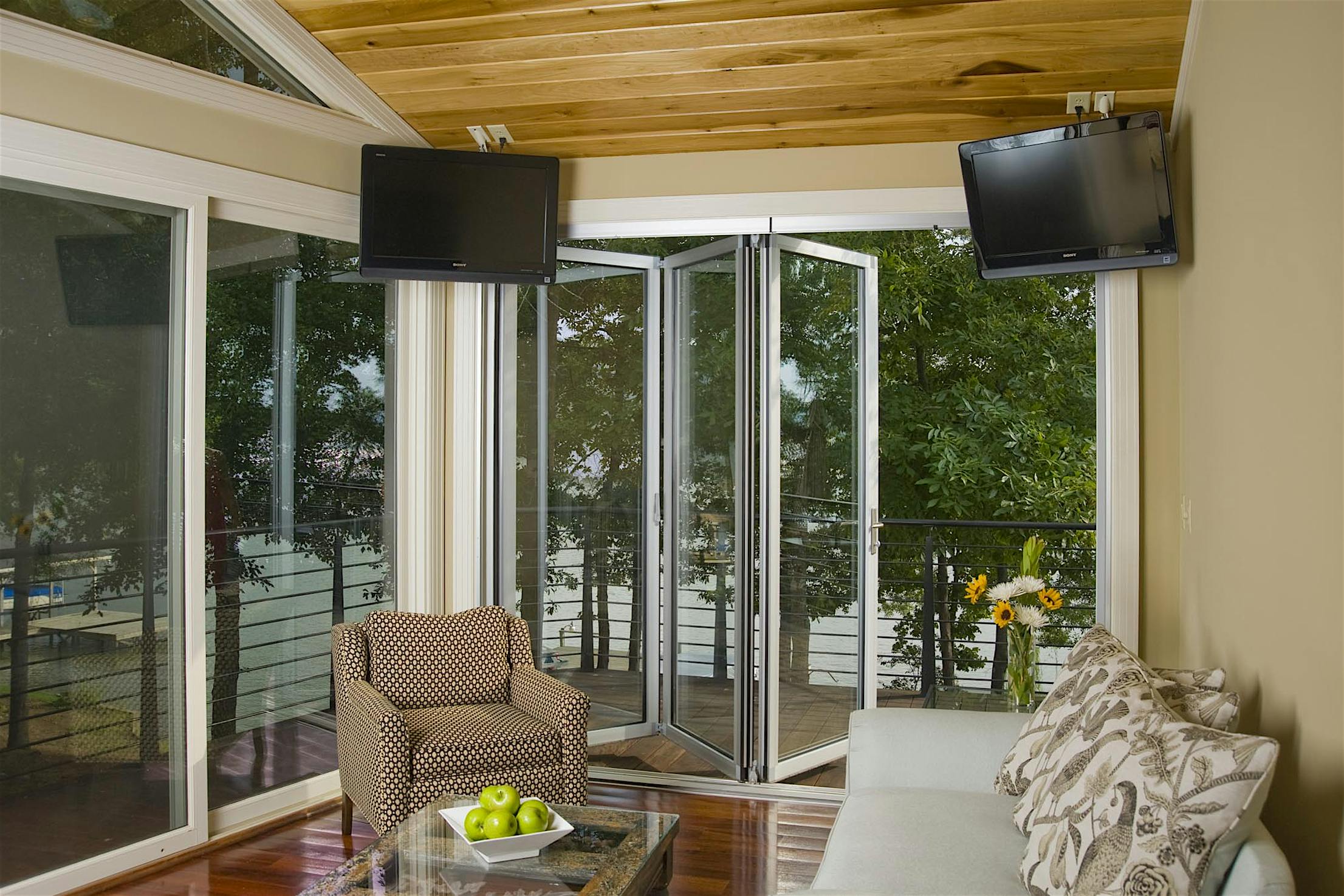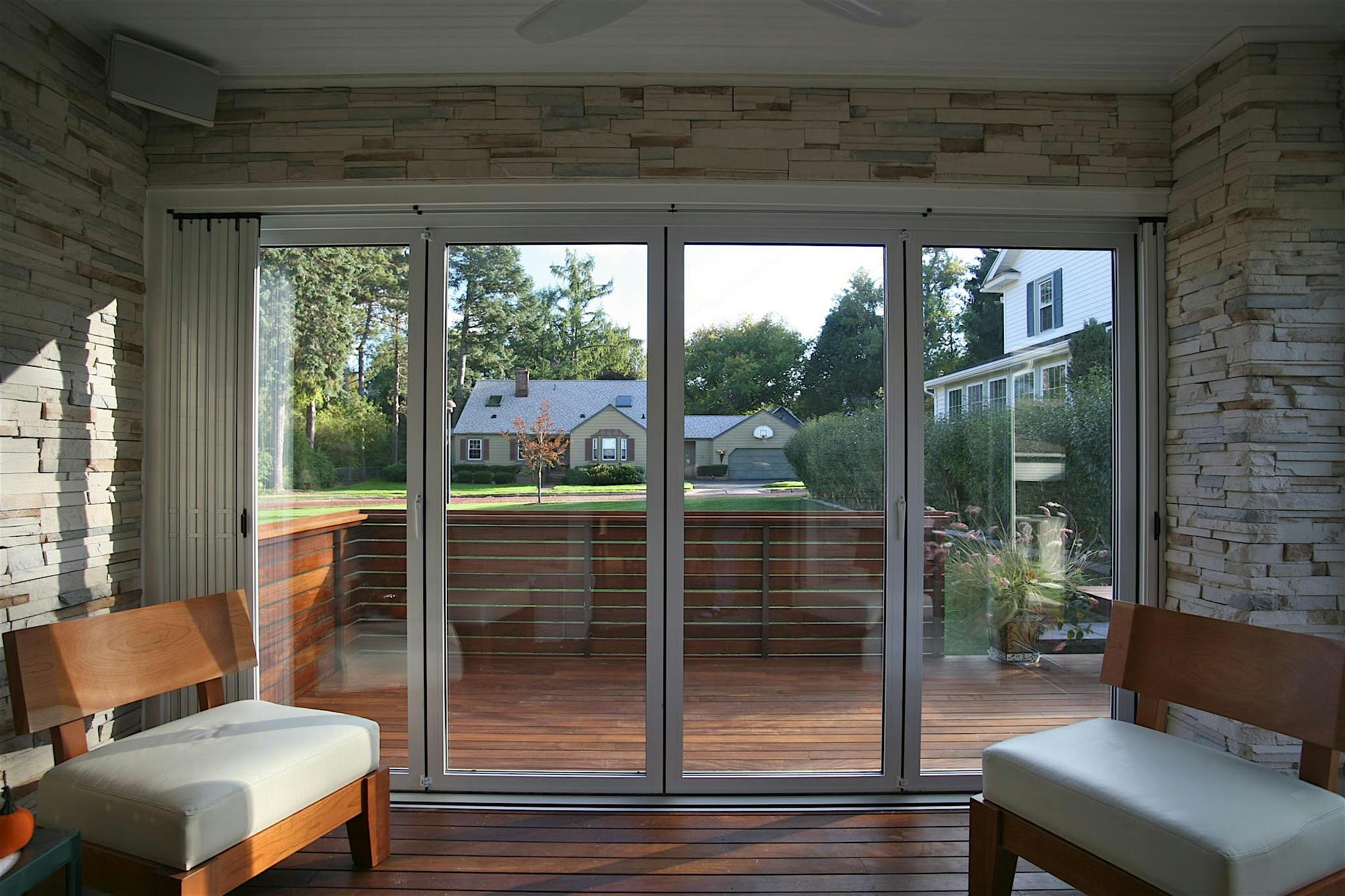A retractable screen add-on is perfect for blocking bugs while providing privacy and fresh air. Screens are not available through NanaWall Systems.
