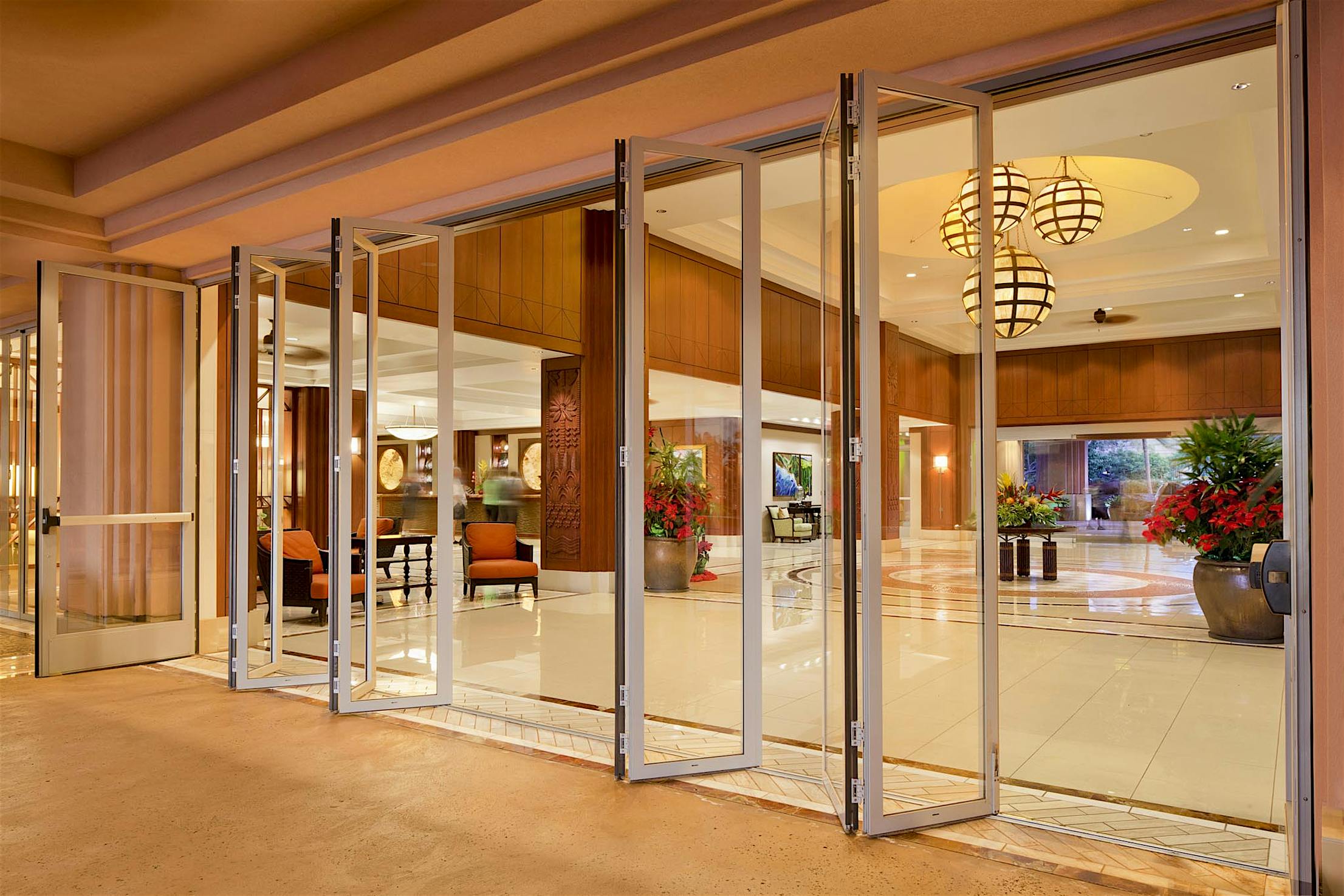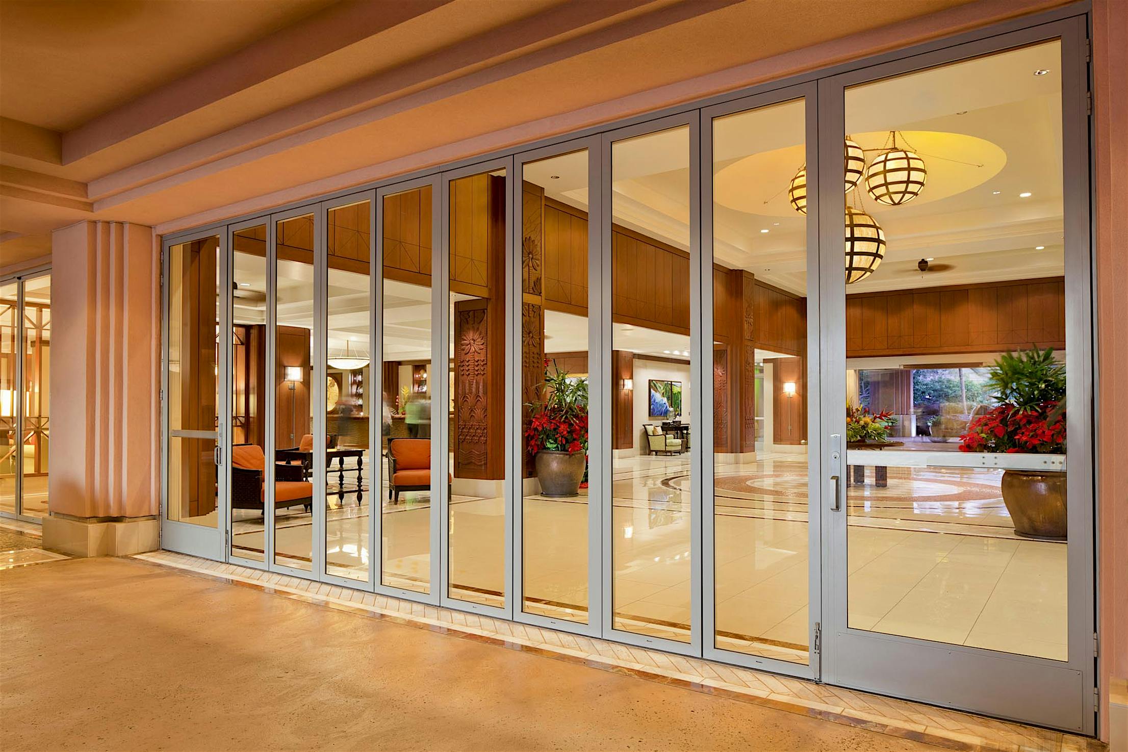 Standard to the system is concealed locking between folding panels that operates with a 180° turn of a flat handle.