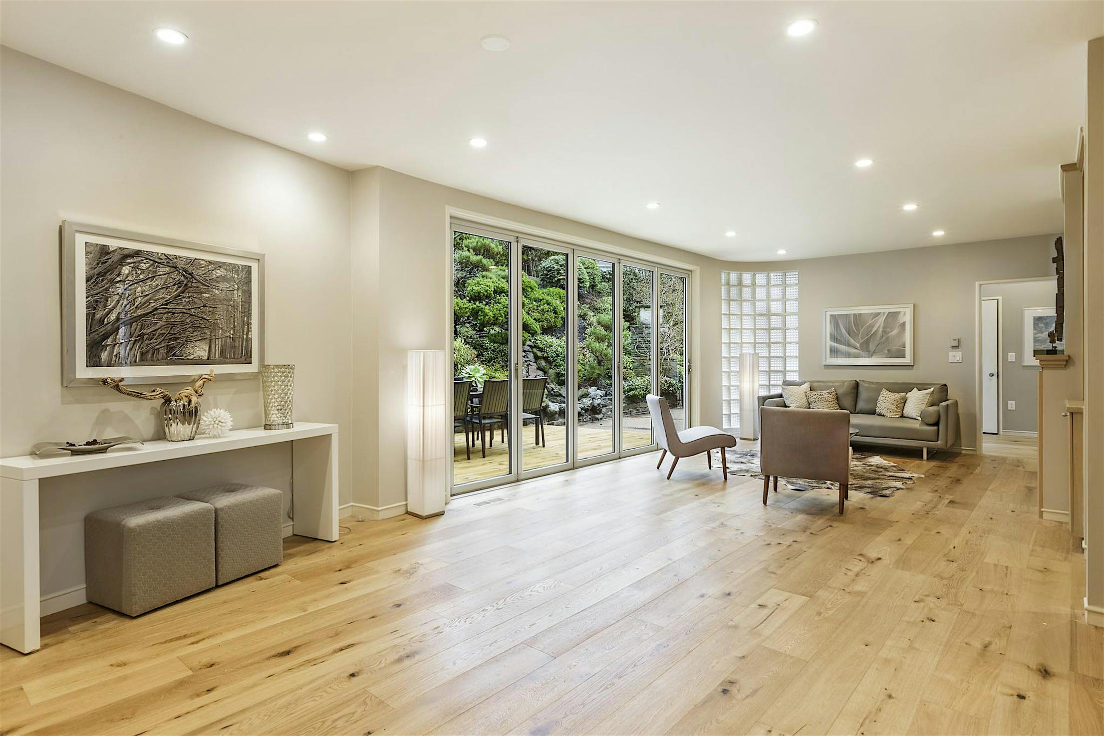 The NanaWall SL60 maintains equal sightlines around each door panel creating an attractive display of glass and light.