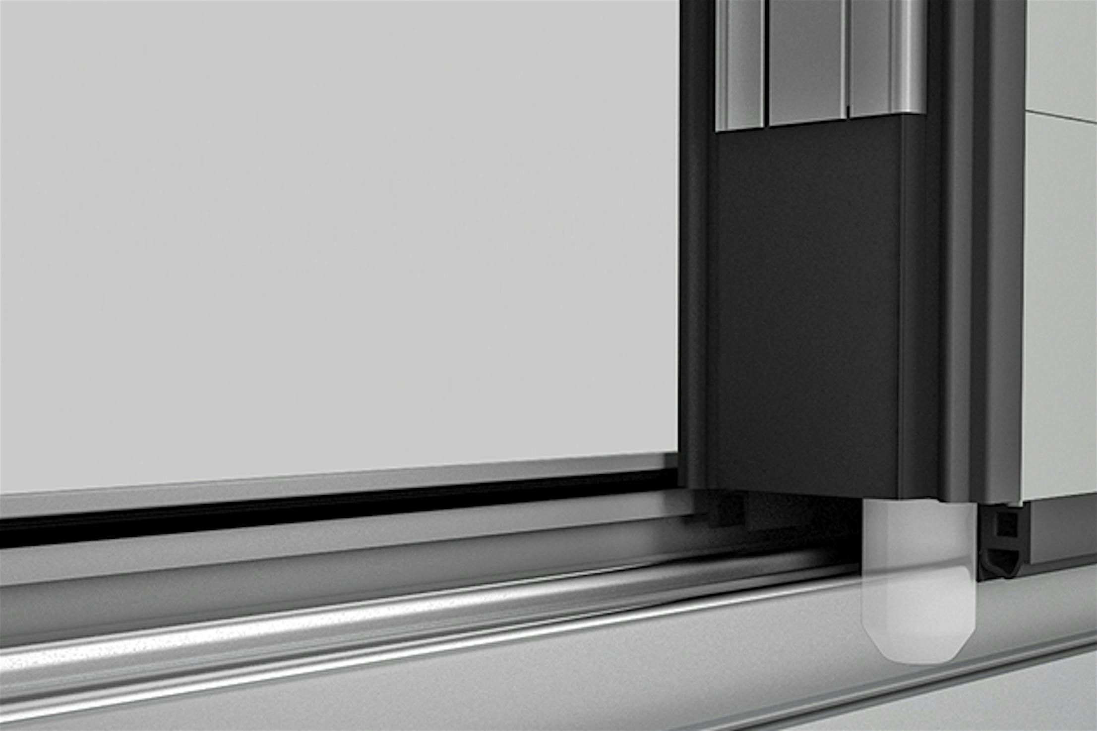 This animation demonstrates our NanaWall SL60 floor supported system roller option. To deal with building movement, the NanaWall floor supported option offers stainless steel wheels on a stainless steel track for continual smooth operation, even with up to 3/8" of debris in the track.