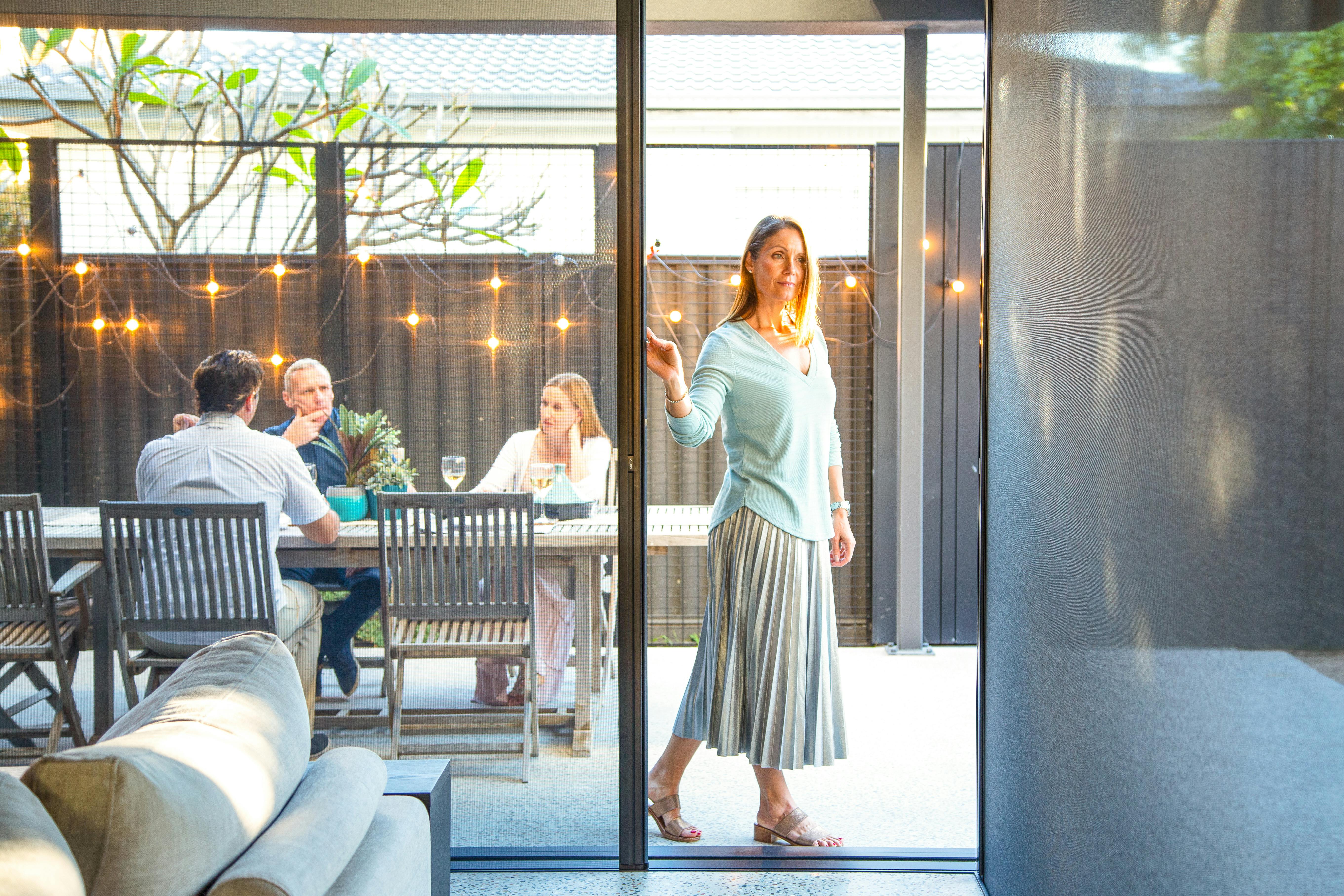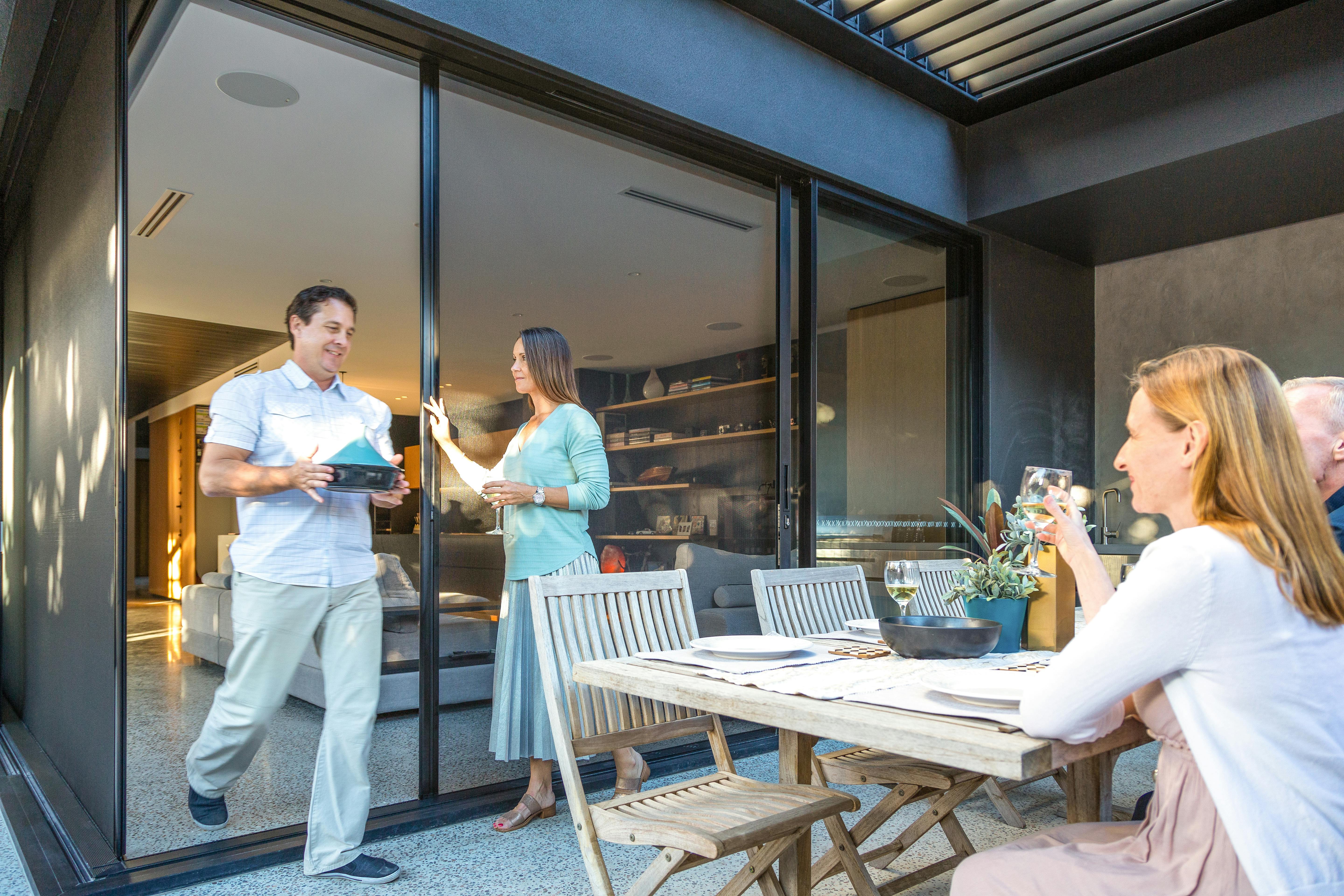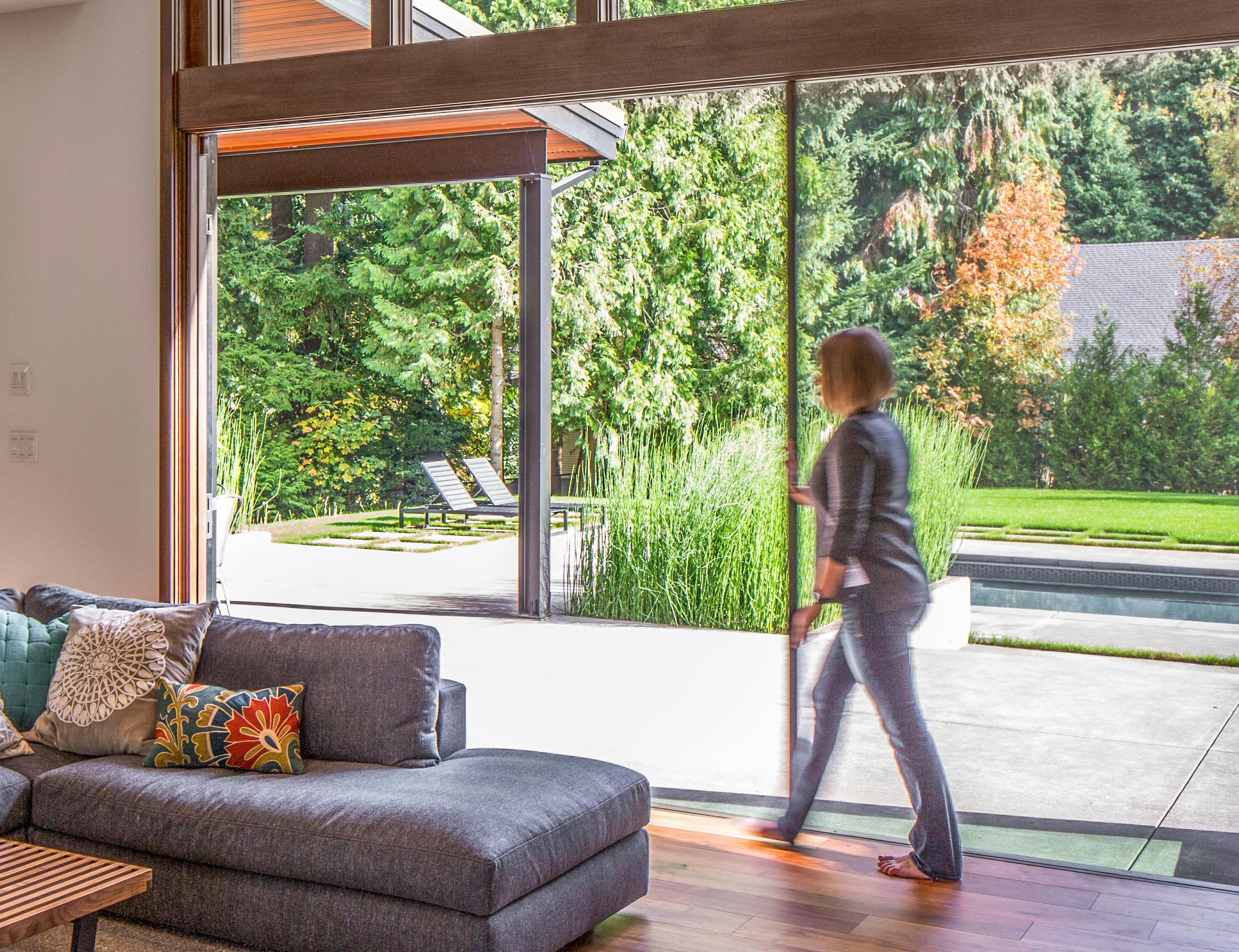 Large opening spans present a unique challenge—how to enjoy the unobstructed view when the space is completely open, while also being able to move inside and out without letting in insects.