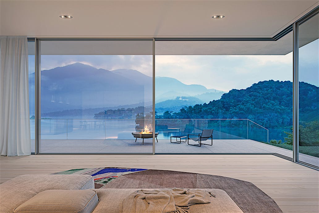 Thin lines and large glass expanses provide a refined, minimalist aesthetic.