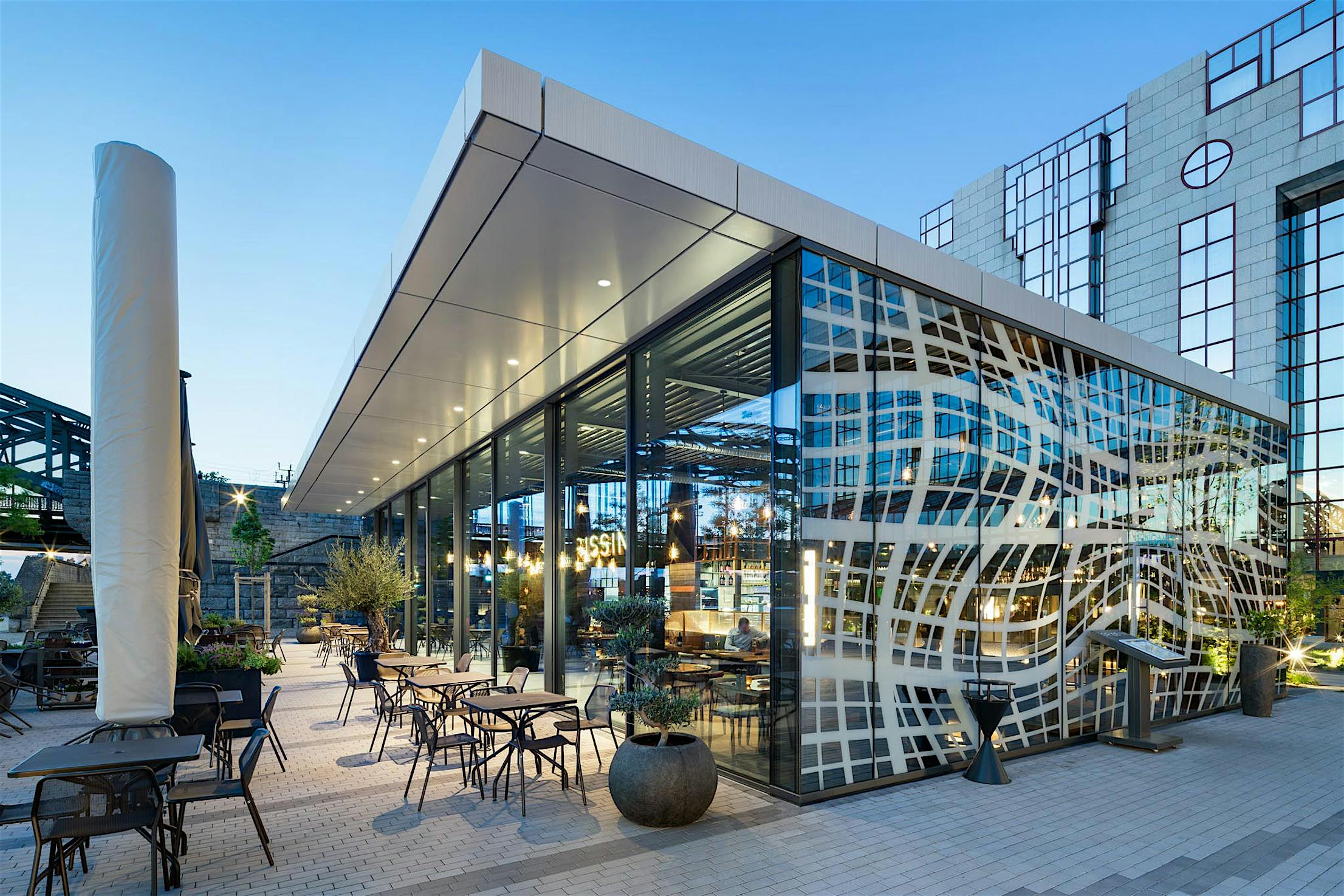 Visa One Market: “We selected cero for its clean lines and simple, minimal frame around the glass, and because of the center-opening option with no need for a closet or pocket for the doors to nest.”