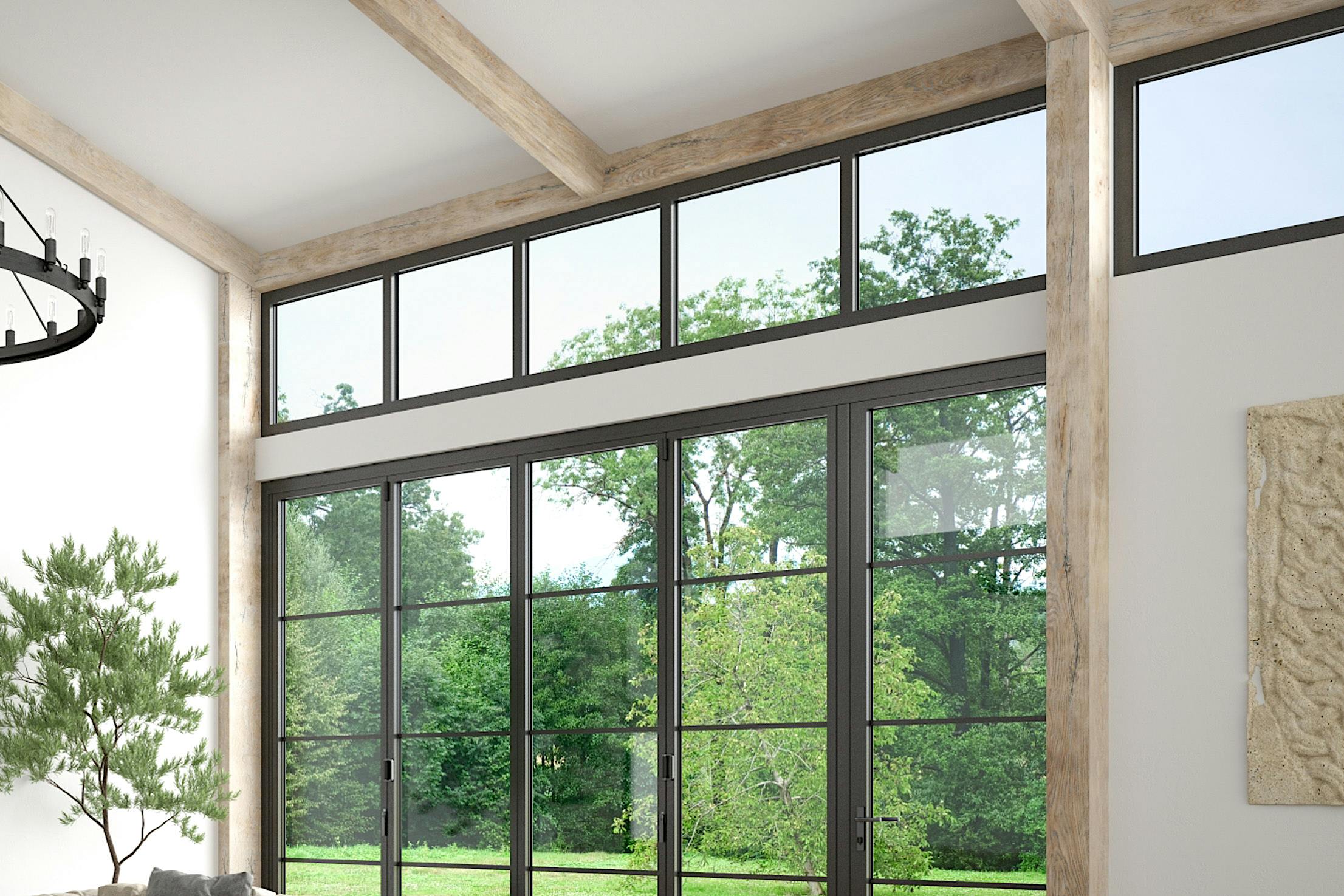 Pair your full-size opening glass walls with matching fixed windows, sidelites, or transoms for a consistent design and maximum daylight. These matching windows can be specified with energy-efficient glazing options for optimal performance.
