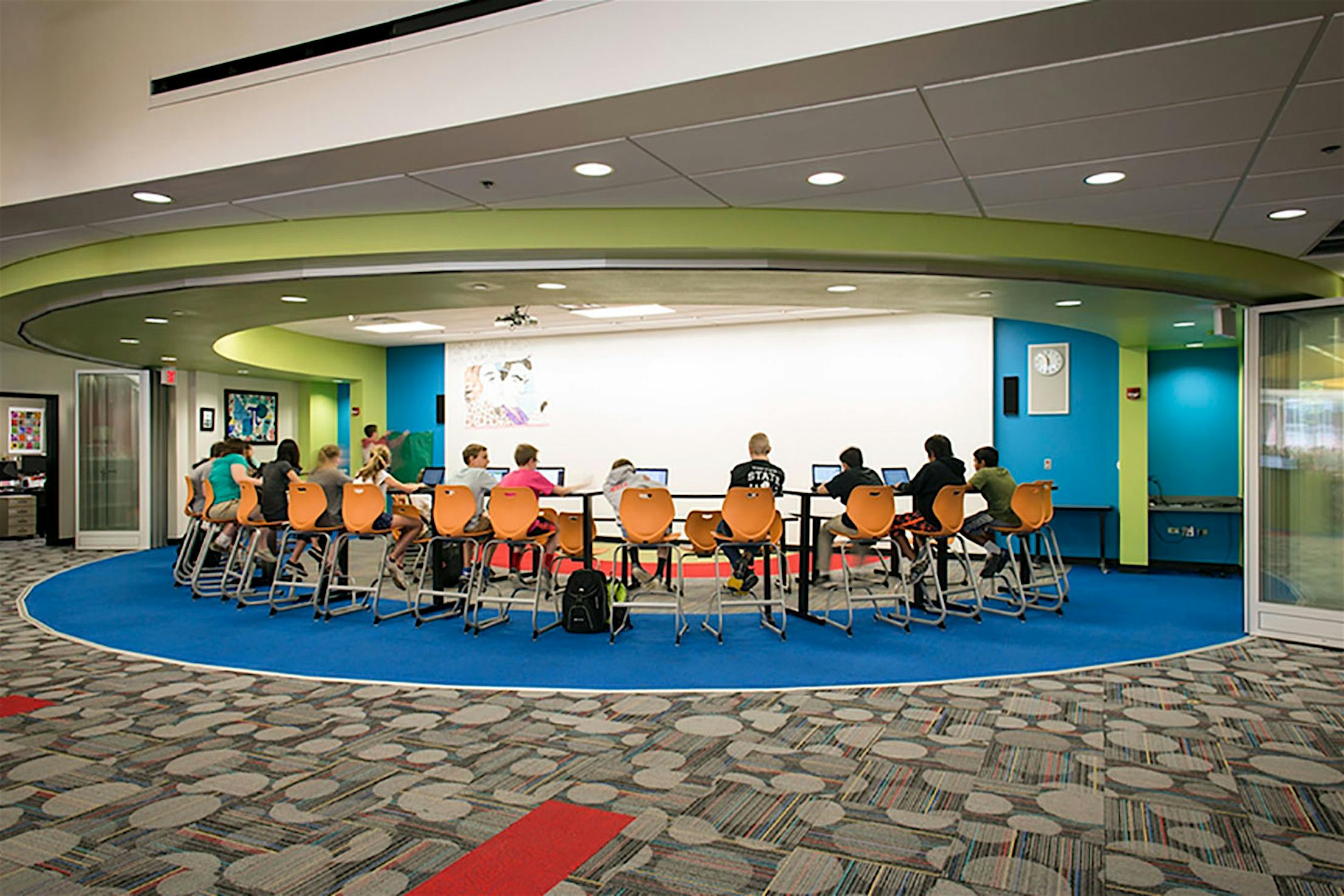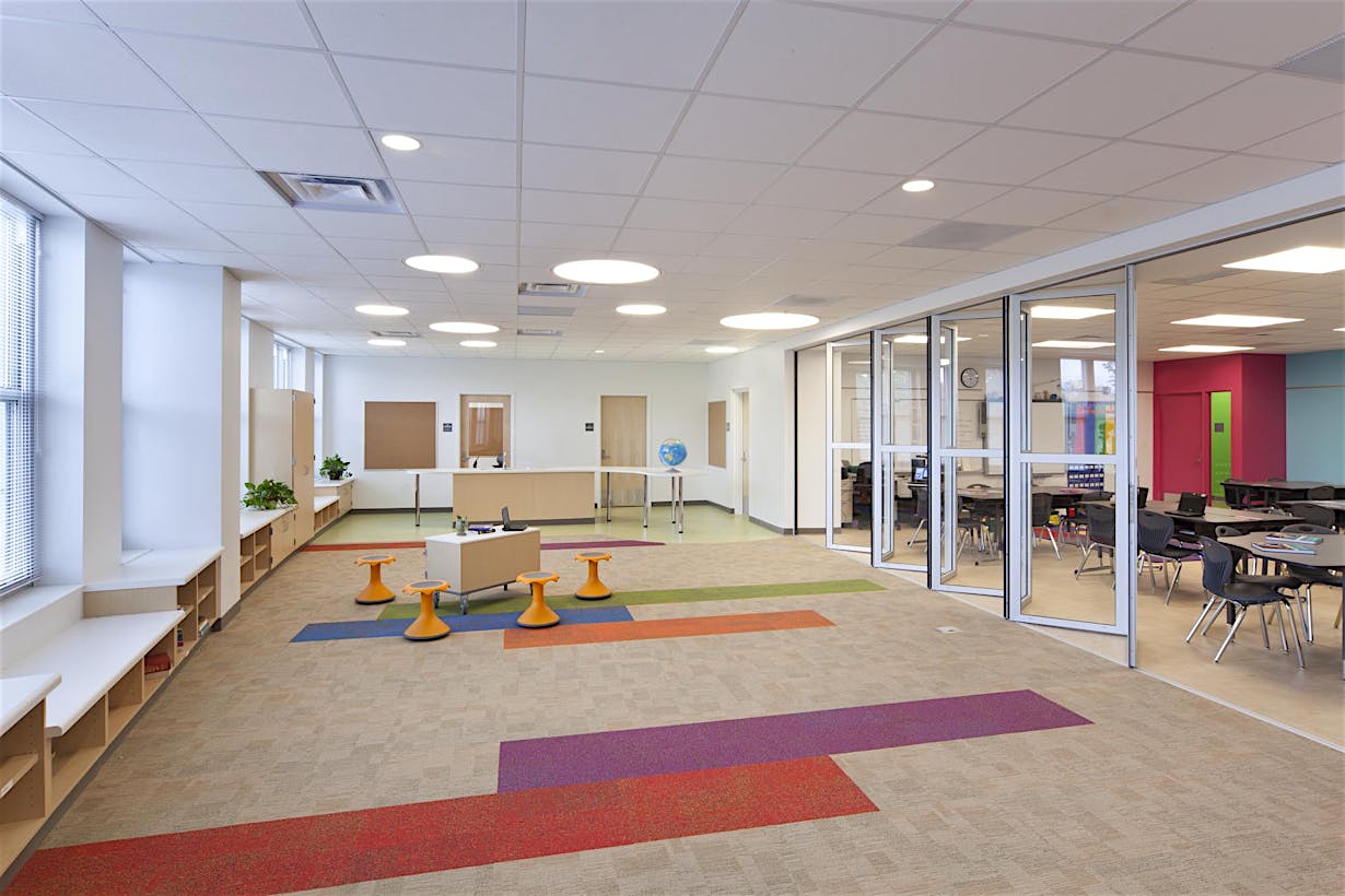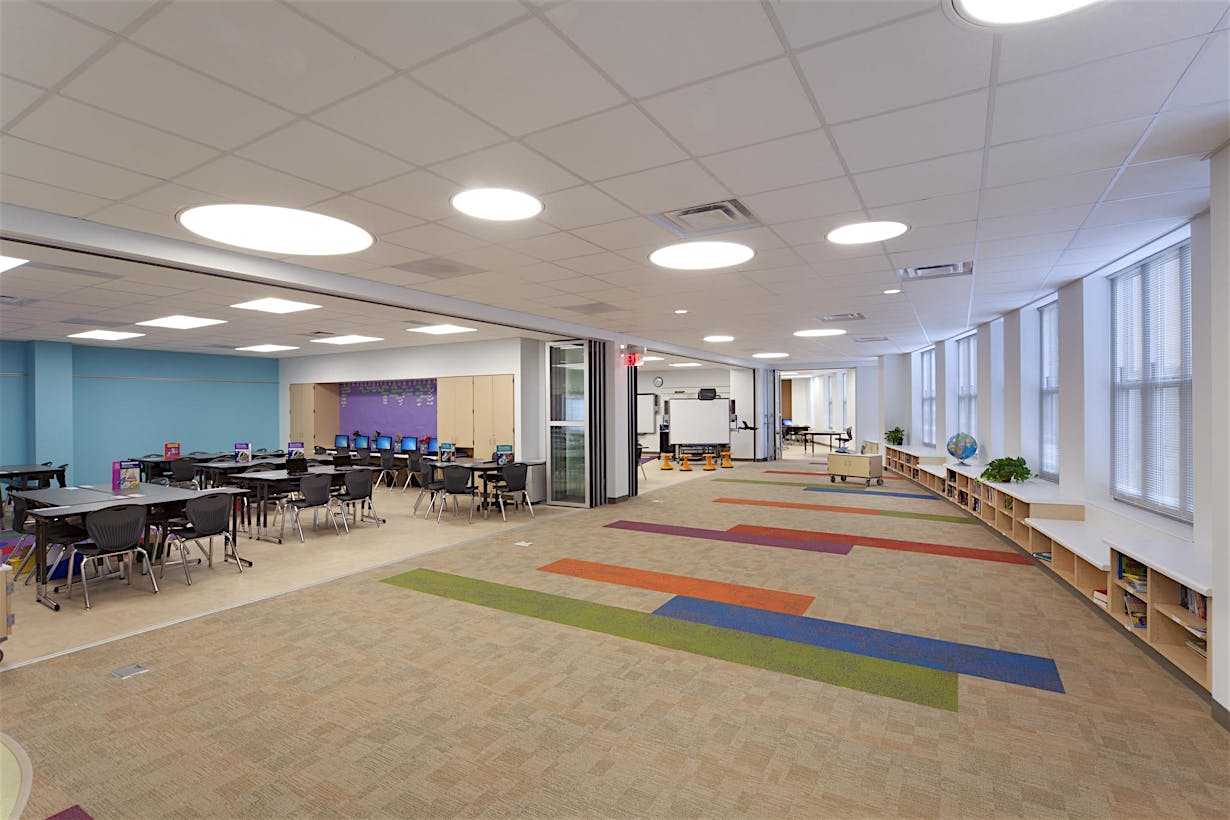 At Booker T. Washington Elementary, NanaWall operable glass walls enable multiple room configurations and sizes without building additional space-creating educational FlexSpace.