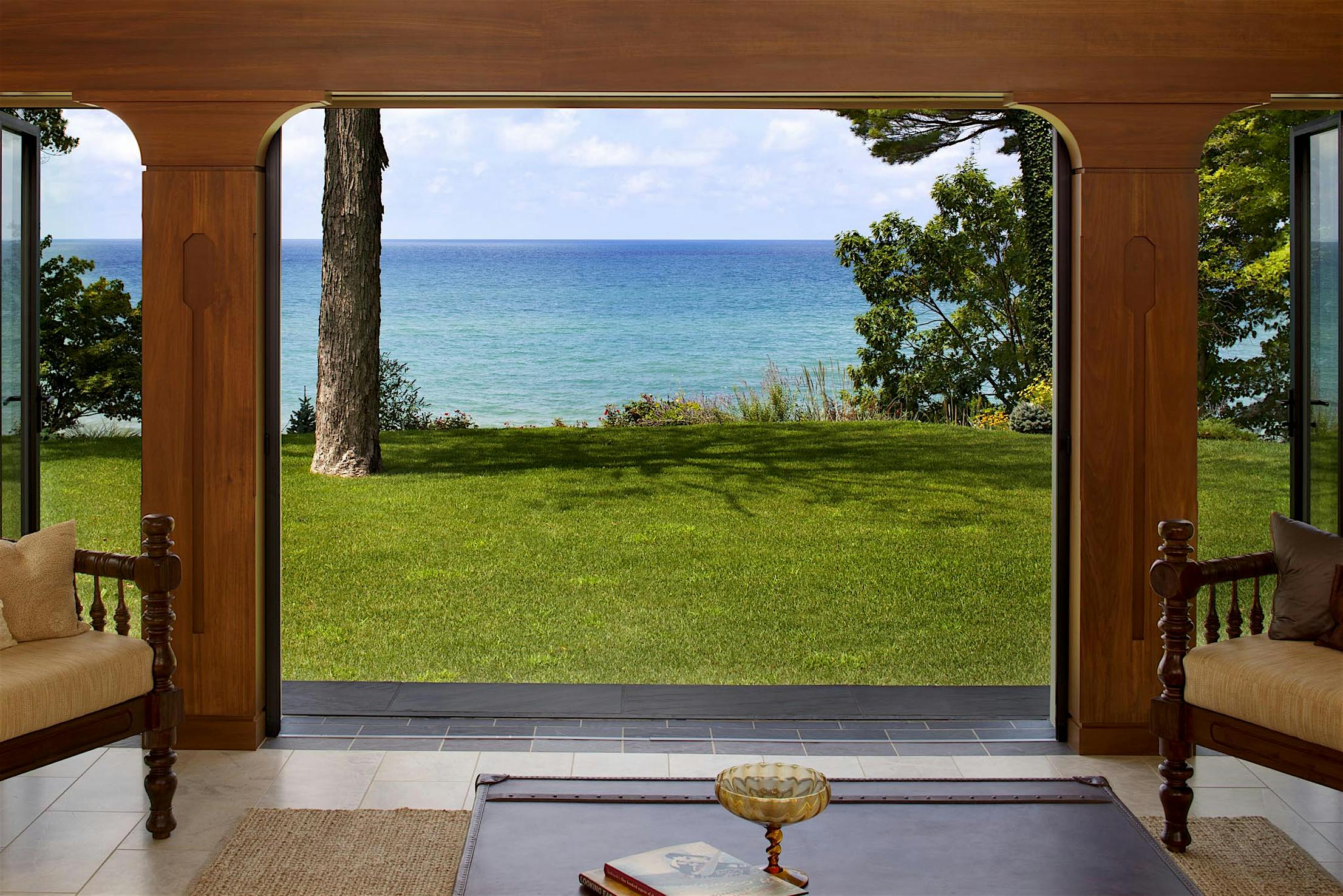 The clients expressing their desires for their dream home on the shores of Lake Michigan were quite specific about the desired relationship of the home to the surroundings: connect them, as intimately as possible. That’s why David Ogden of Chicago’s Raino Ogden Architects worked with Tai Kojro-Badziak of the nearby firm, roomTEN Design, to deliver the clients' dream home.