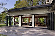 Kojro-Badziak's inspiration for the porch was the Moroccan tent, meaning a space for hospitality, as large and as open as possible, with a roof that vaults in the center. Ogden's task included delivering such a space, as well as ensuring the openings could manage seasonal and meteorological changes.