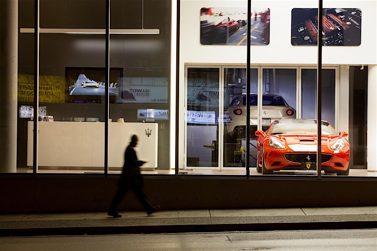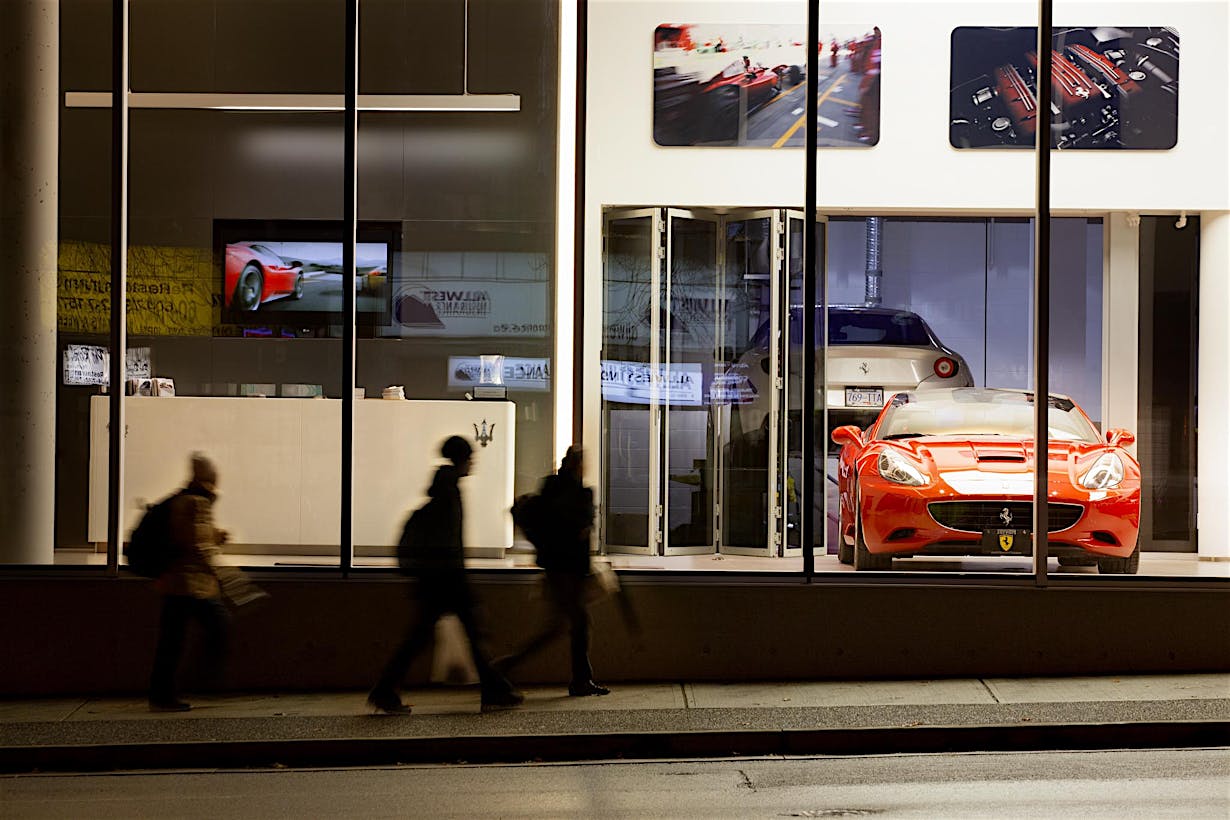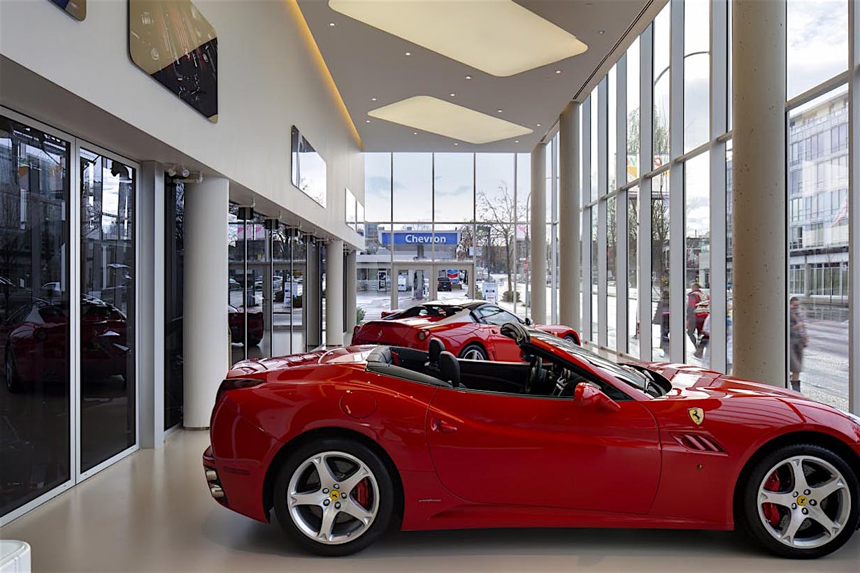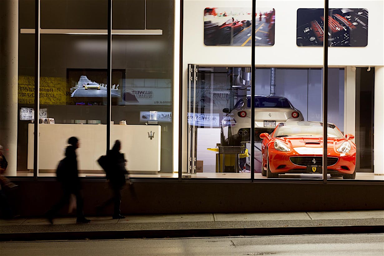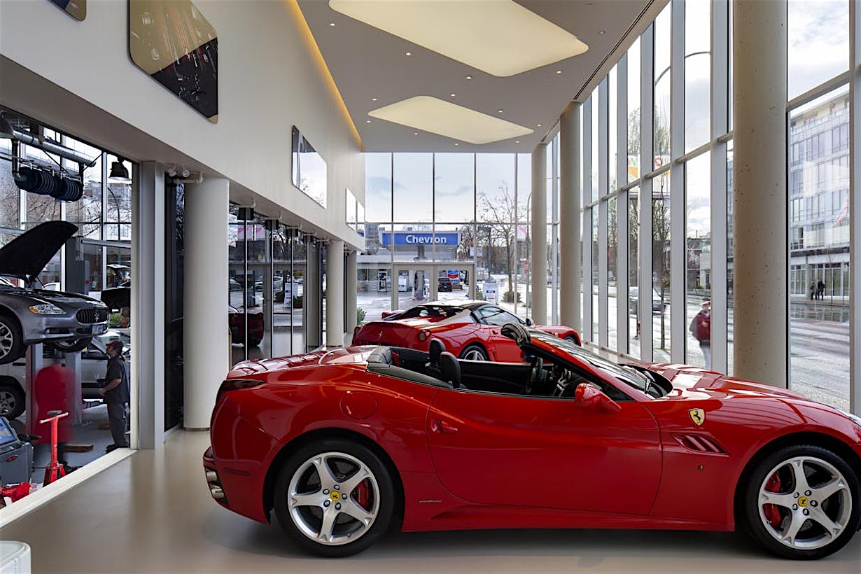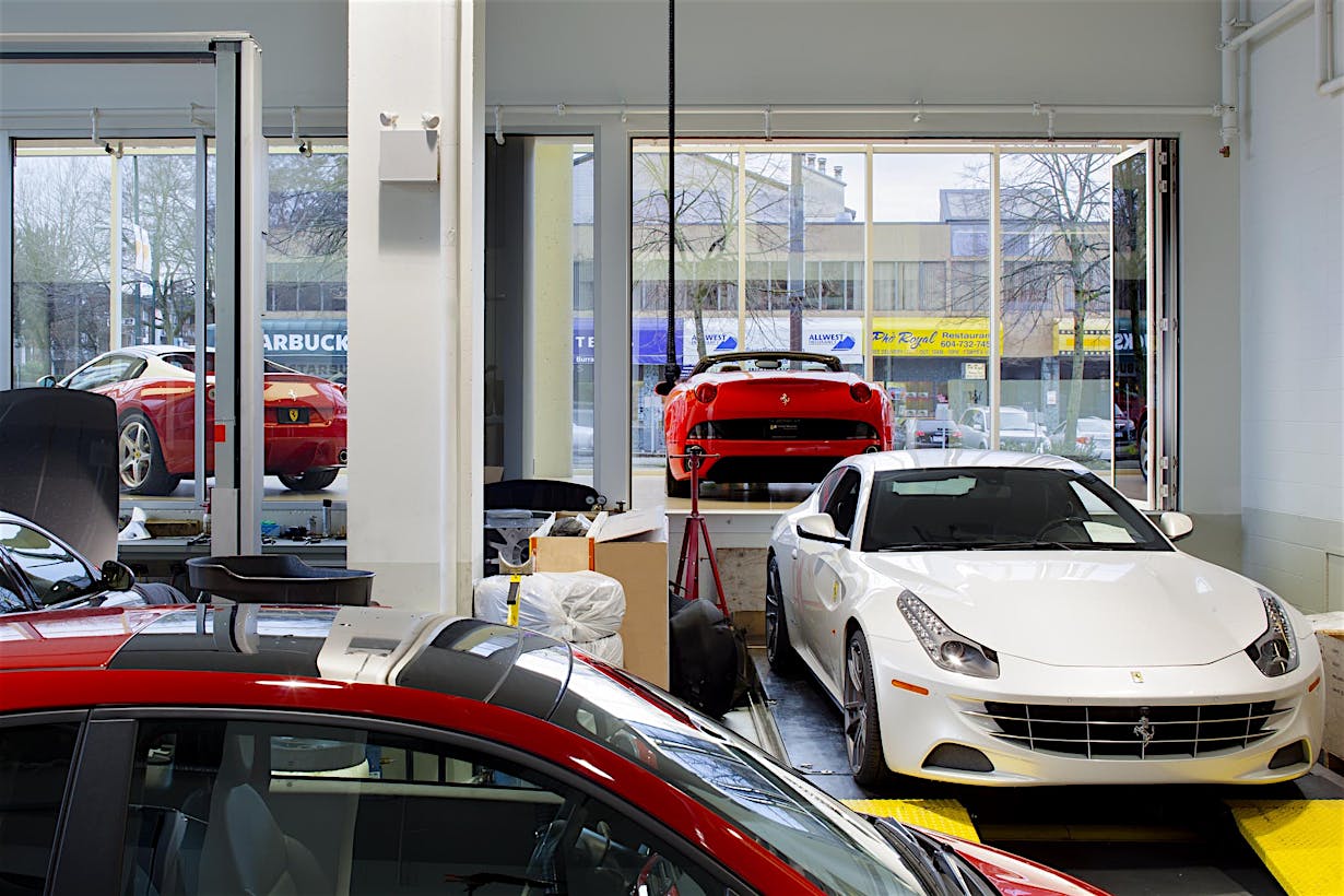 When designing a new auto showroom in Ontario CA, inventory access presented a unique challenge. As the architect discovered, there are few products which can provide a 9- to 12-foot clear width and still match the interior storefront design.