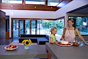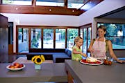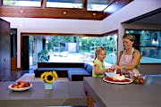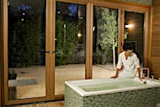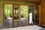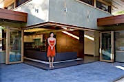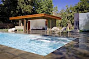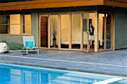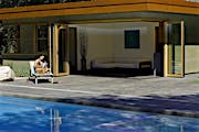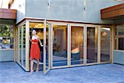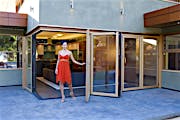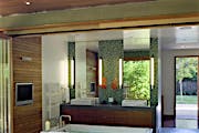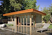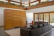 WDA integrated high-end modern design and a commitment to green building for the Menlo Park house. It makes use of an existing foundation and innovative landscape. Cor-Ten steel, stained concrete mixed with fly ash, and Finnish birch plywood veneer are counterbalanced with green flourishes. For example, the house uses radiant floors, solar hot water, photovoltaic power and passive ventilation – with the help of several NanaWall installations