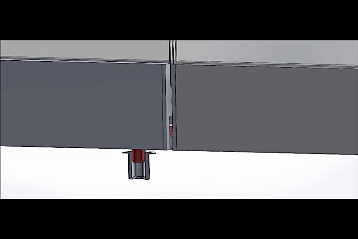 For straight units, the automatic floor bolt is self-activated by simply moving the panels on to one another. Once the first panel is positioned, the following panel activates the wheel and ramp assembly to automatically release the floor bolt effectively locking the panel into place without the need to lock it manually. No kneeling is required.