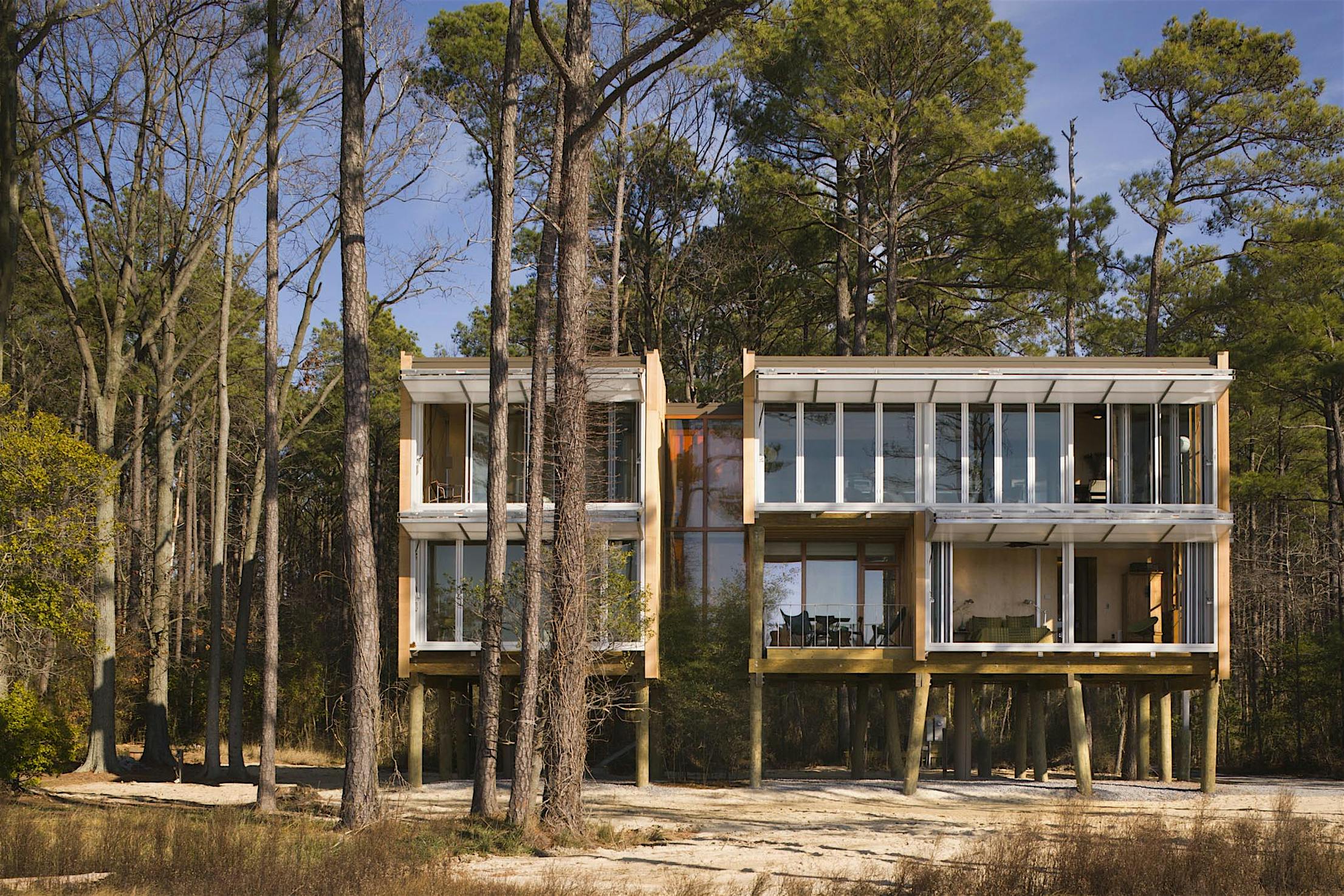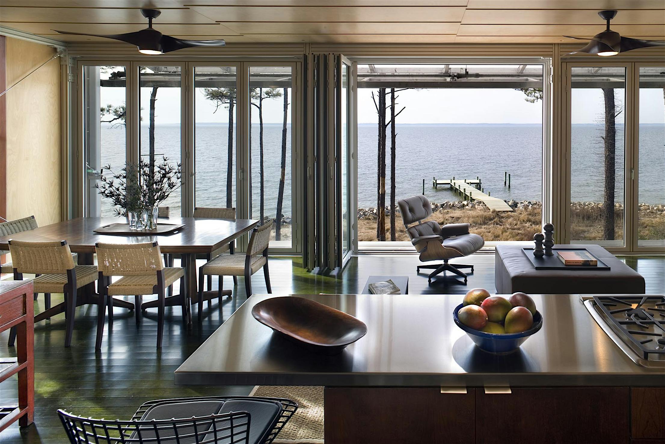 “NanaWall allowed us to create uninterrupted views to the Chesapeake Bay and open the west wall of the Loblolly House, effectively transforming the interior of the house into a porch.”