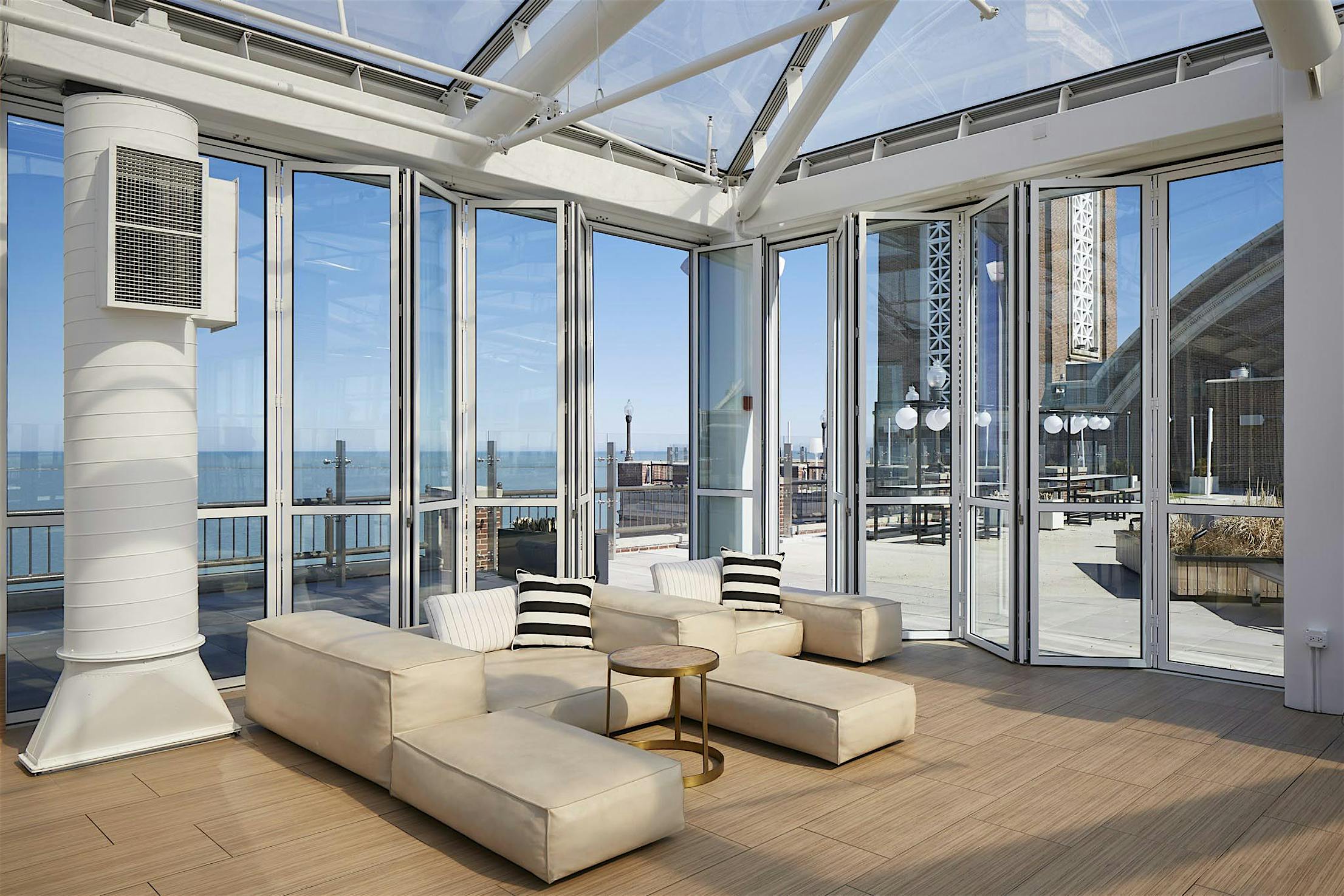 The NanaWall SL70 incorporates a post between each door panel—this design adds structural strength and allows for long-term commercial operation.