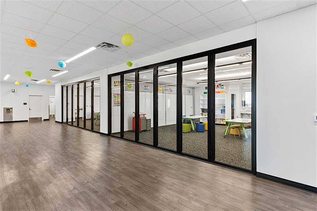 Capable of reaching heights of up to 12′ (3650 mm) tall, SL70 is an acoustic glass wall system suitable for interior applications such as schools, offices, medical facilities and hospitality spaces. Providing interiors with flexibility, transparency, and acoustical buffering, SL70 is sound-rated up to STC 42.