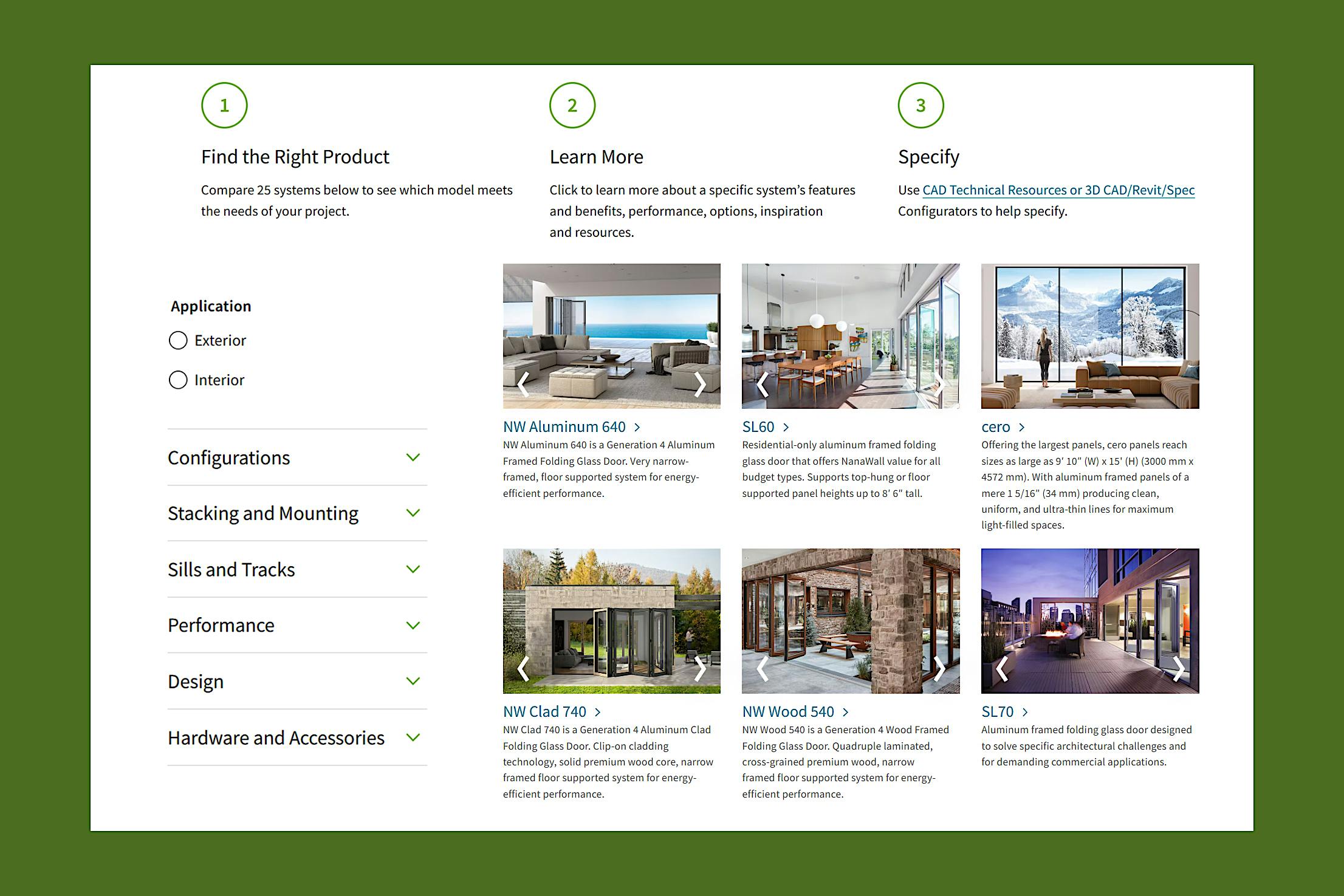 With over 25 flagship NanaWall products and multiple ways to customize, use our handy product finder tool to make the right product choice for your project.