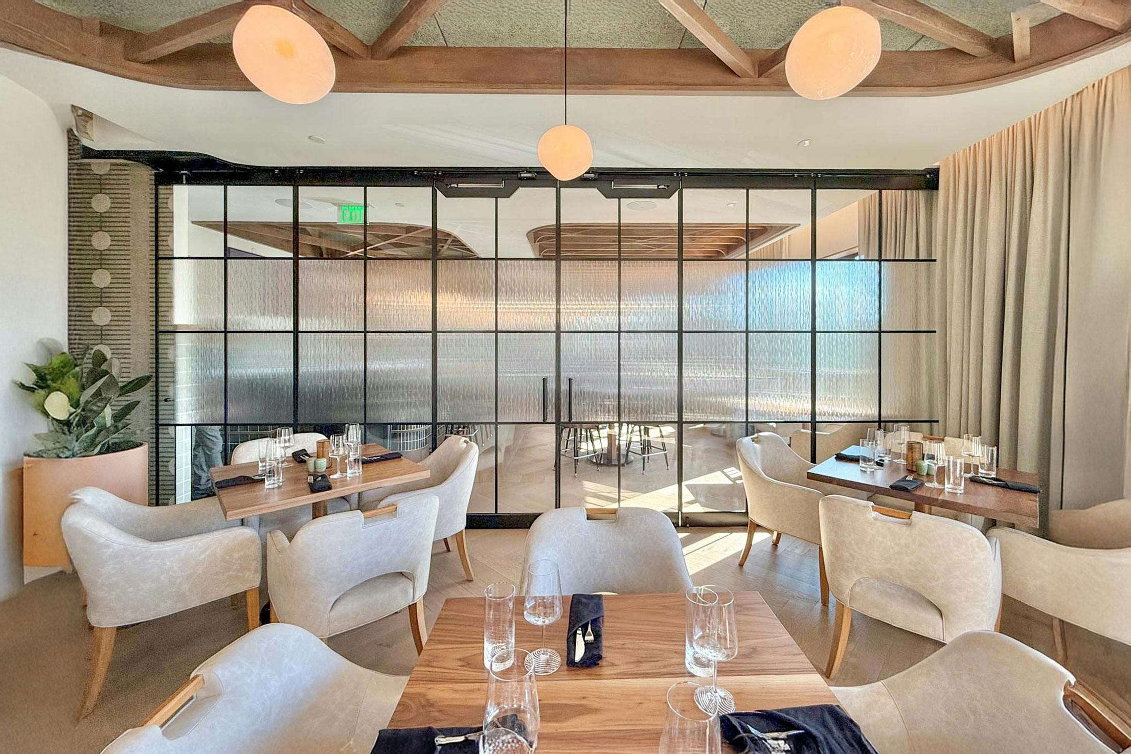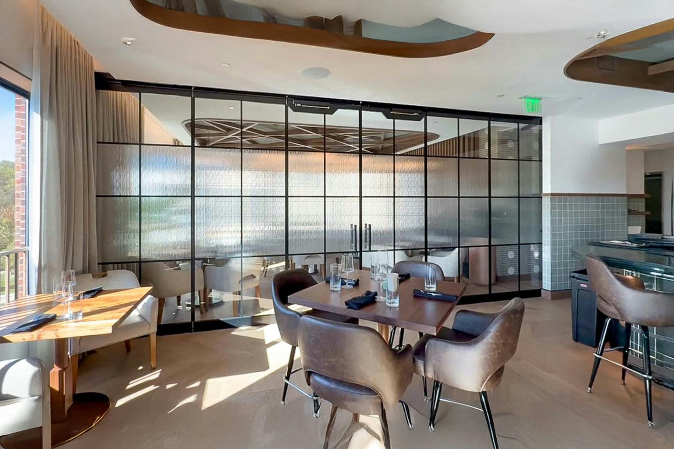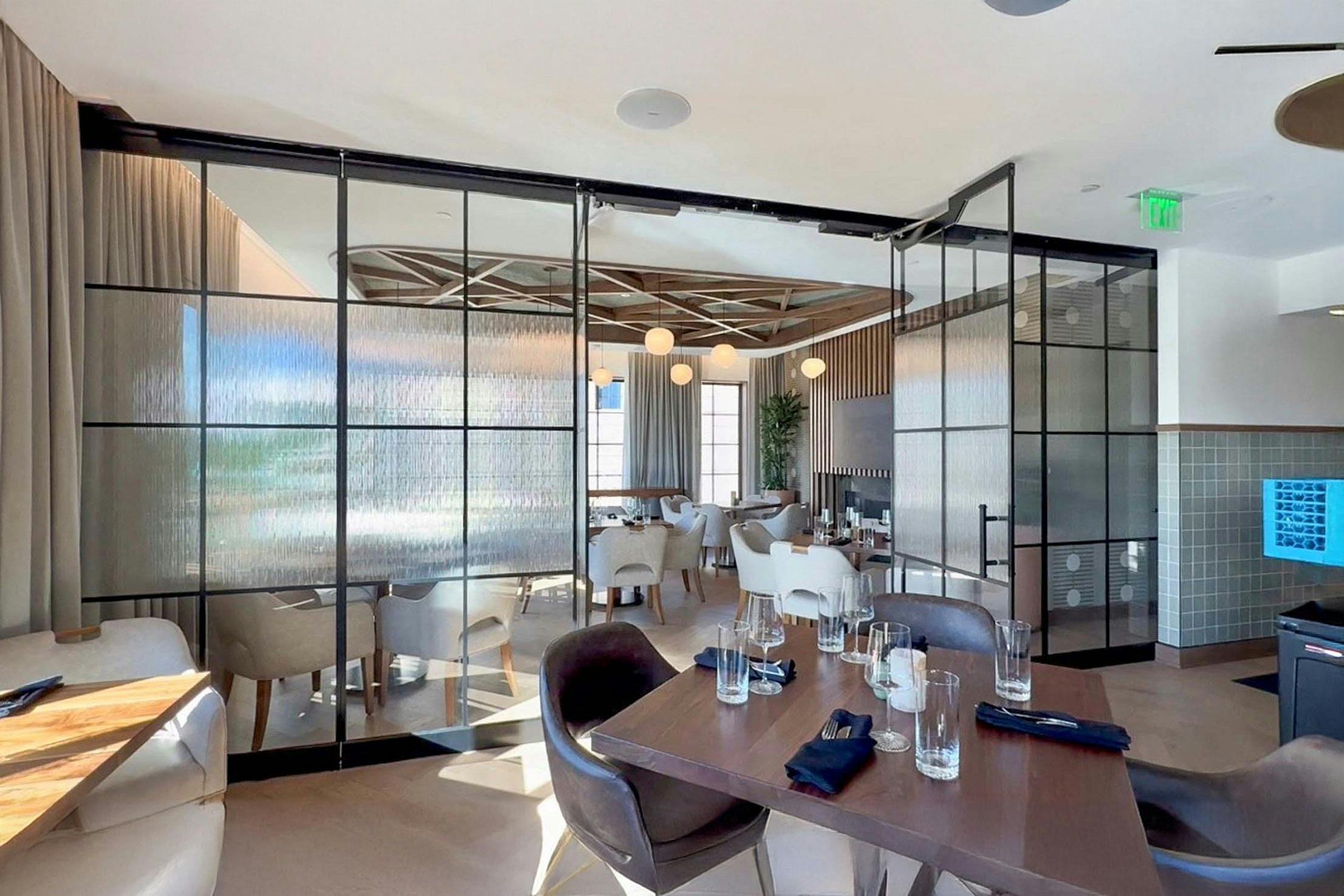 On the first floor, three SL70 window-sized systems open The Post Tavern to intimate river views and connect diners to the bustling foot traffic outside. The soon-to-open Lark Wine Bar on the first level will also feature three floor-to-ceiling SL70 folding glass walls to facilitate traffic and connect interiors to the outdoors. The crown jewel, the Rix Restaurant on the third floor, features a 900-square-foot terrace accessible via three 9-foot-tall folding glass walls. Inside, an HSW75 sliding glass wall converts a private dining room into extra seating when needed. In colder months, the terrace becomes a climate-controlled space, while in warmer weather, the panels open to embrace natural light and al fresco dining.