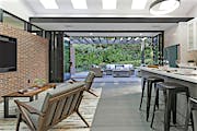 Kelly highlights its intuitive ease of operation, emphasizing that “the ability to easily open the great room to the patio more than doubles the area of the great room during most of the year.”