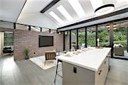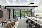 The NanaWall system opens the great room of this accessory dwelling unit into the rich geometries and cycles of the natural environment for the benefit of both.