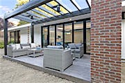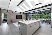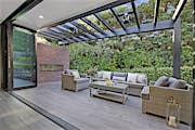 The NanaWall folding door system is a high-performance window-wall that also physically dematerializes the building's exterior envelope when opened, bringing the sensory experience of the garden to the client's everyday living like nothing else. The rest of the glazing throughout the building - both interior and exterior - was designed to completely integrate the NanaWall system into the design.