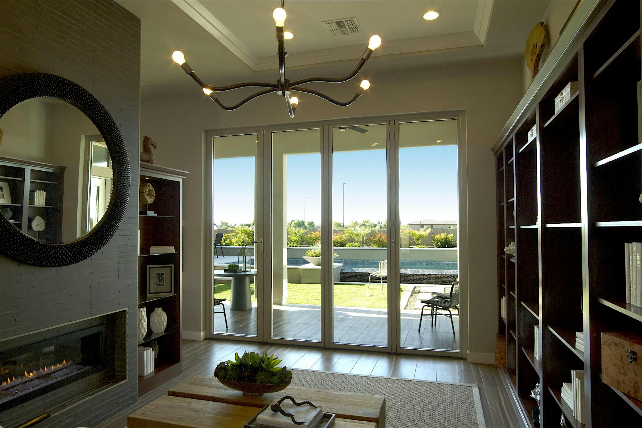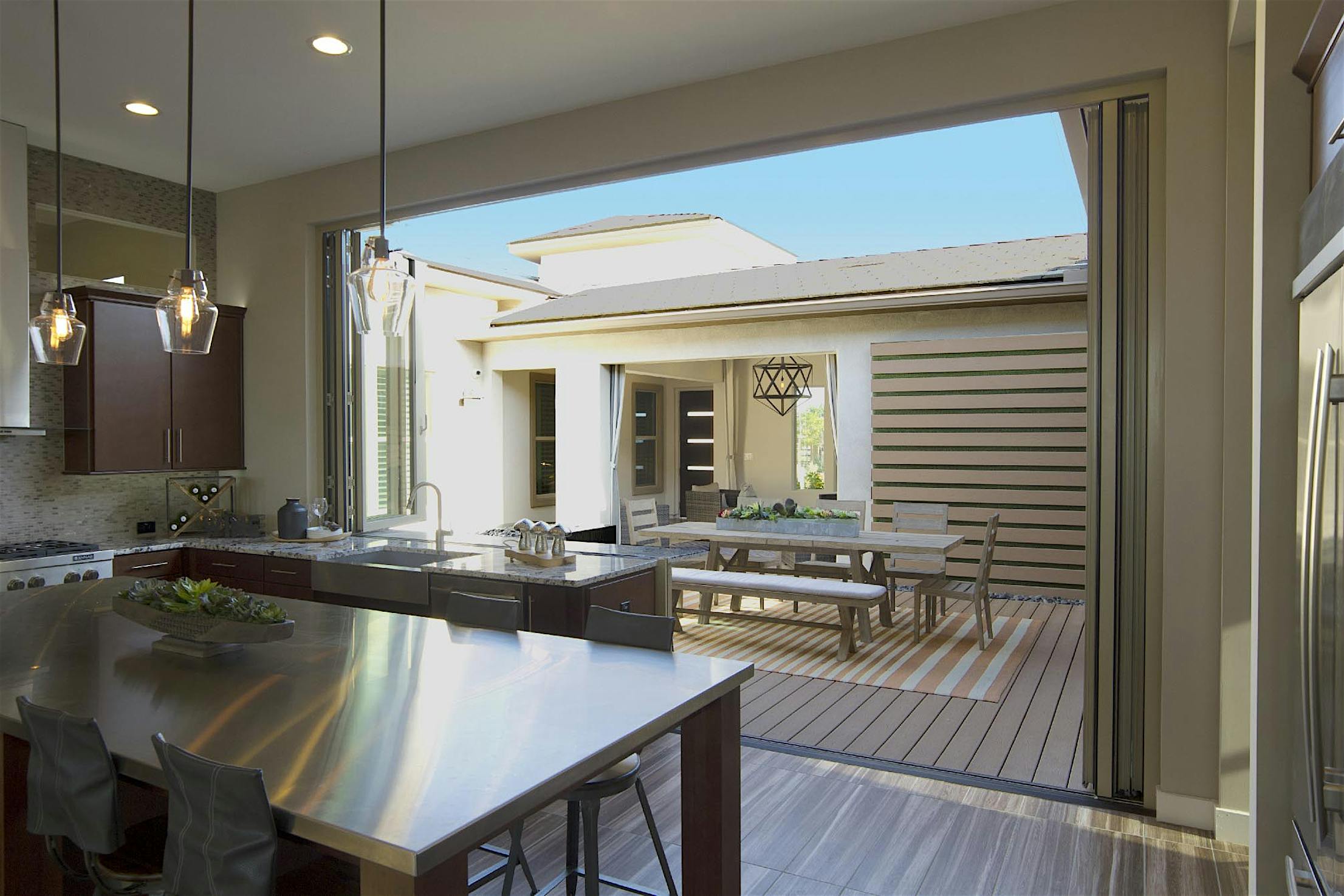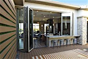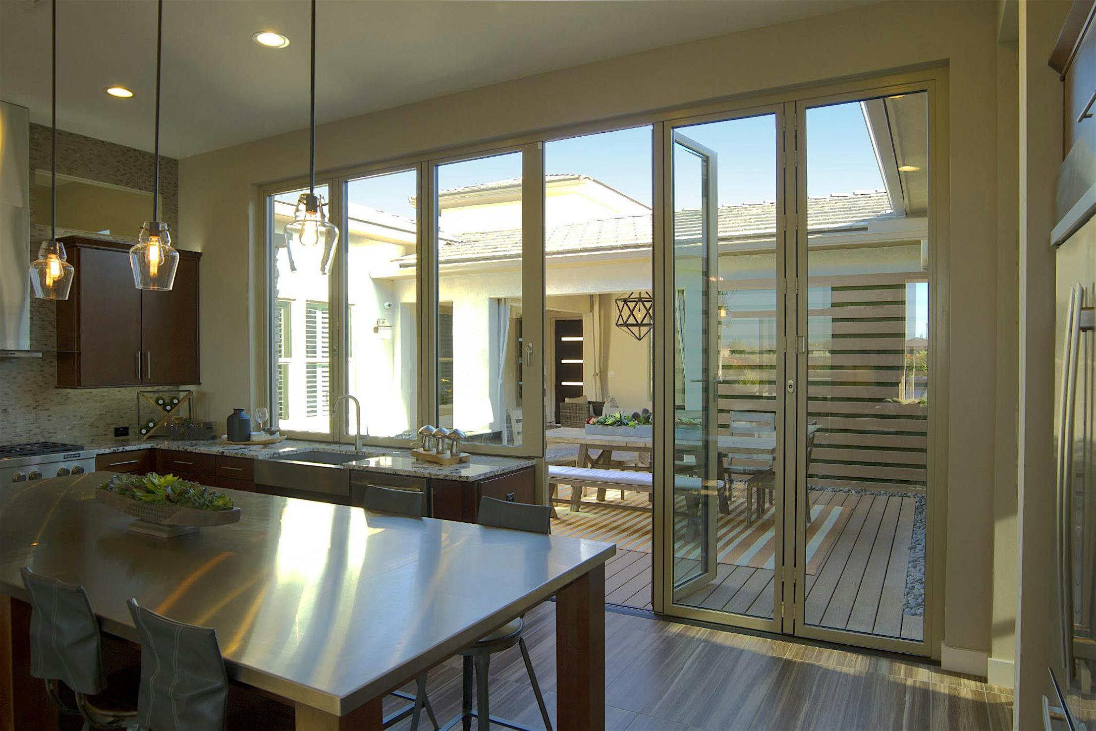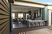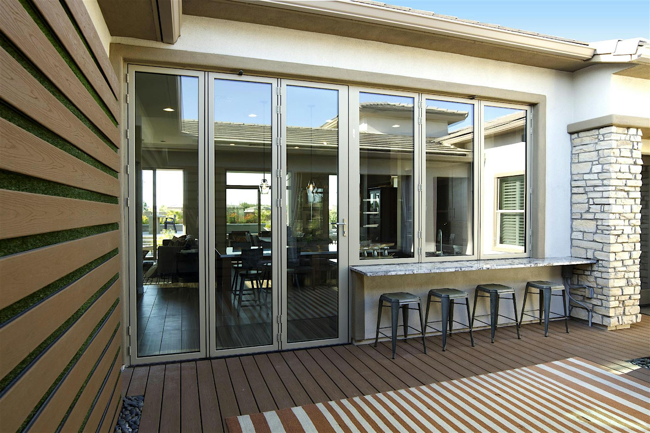 Multiple units of NanaWall SL60 were selected for the project because of its minimal sightlines and its ability to thrive in a tough Northeast climate. Folding door connect the mountain terrain with the inside of the home, even when the doors are closed.