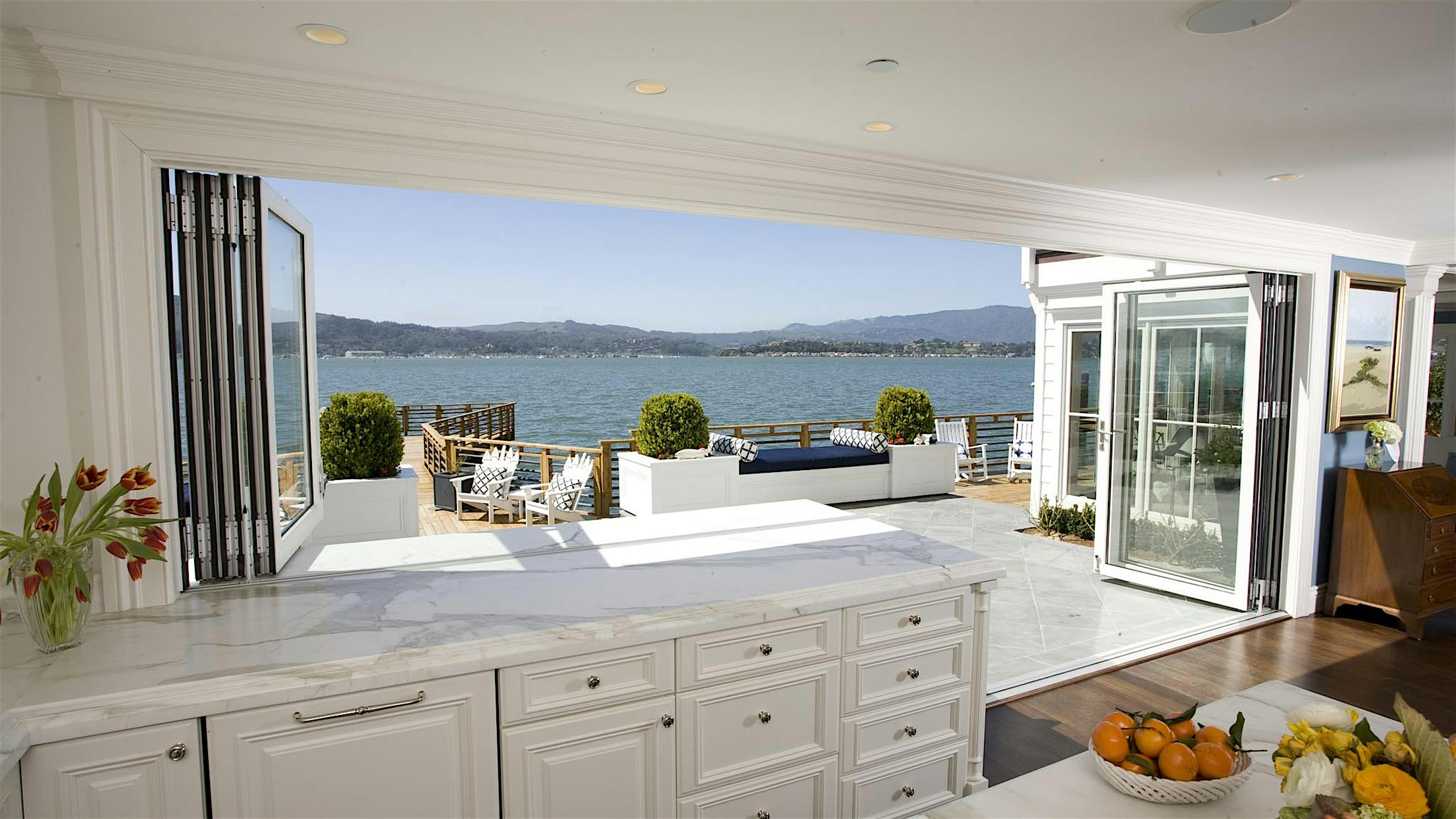 Knowing that his client wanted a classic kitchen and great room area that allowed for easy entertaining both inside and out, builder C.K. Dluzak of ZAK Enterprises in Santa Rosa, California, developed a second-to-none kitchen solution that has matched the owners’ easy, laid-back California lifestyle. It also opens their house so that it feels like you’re out on the open waters of Belvedere Cove, not far from San Francisco.