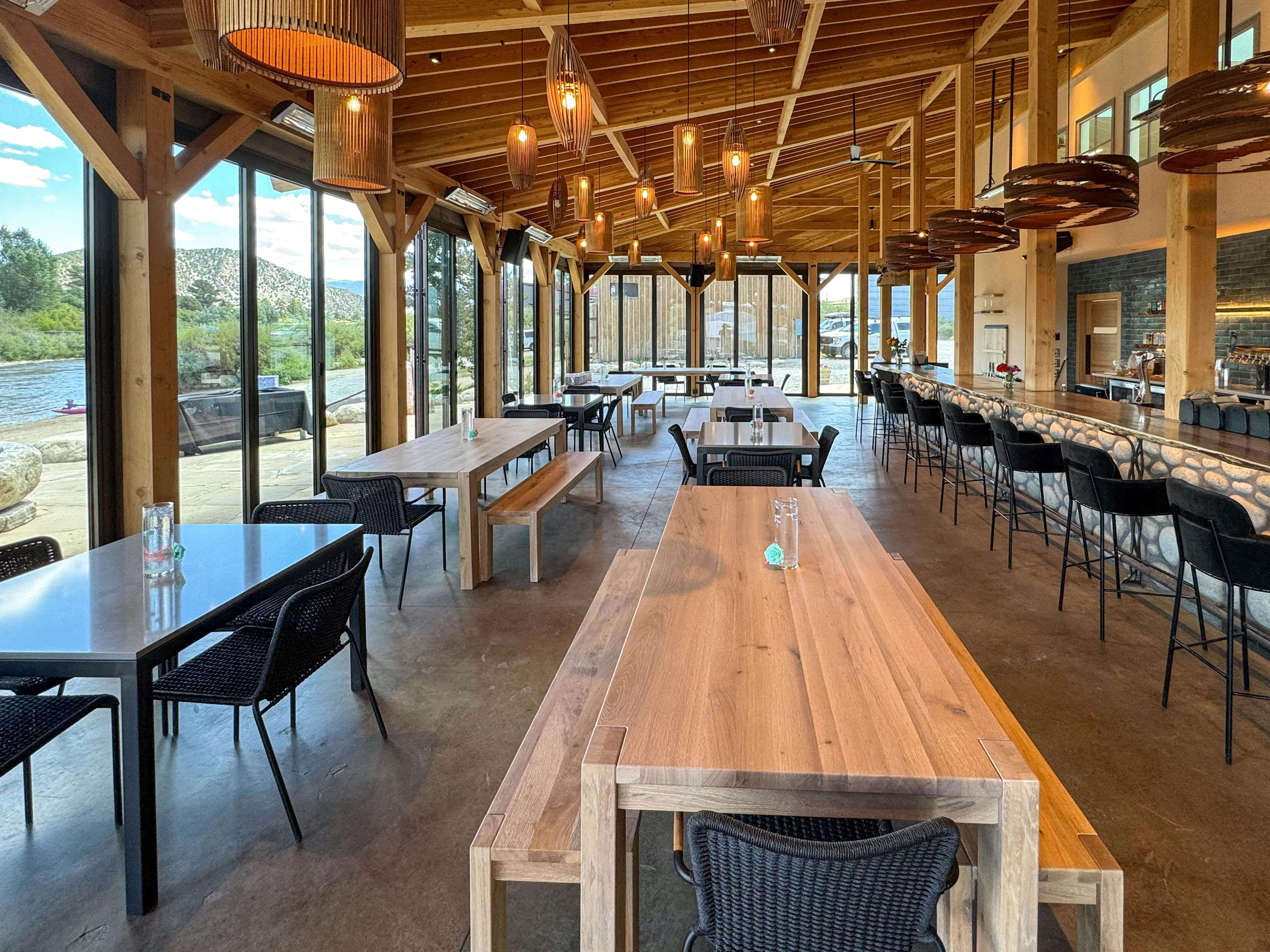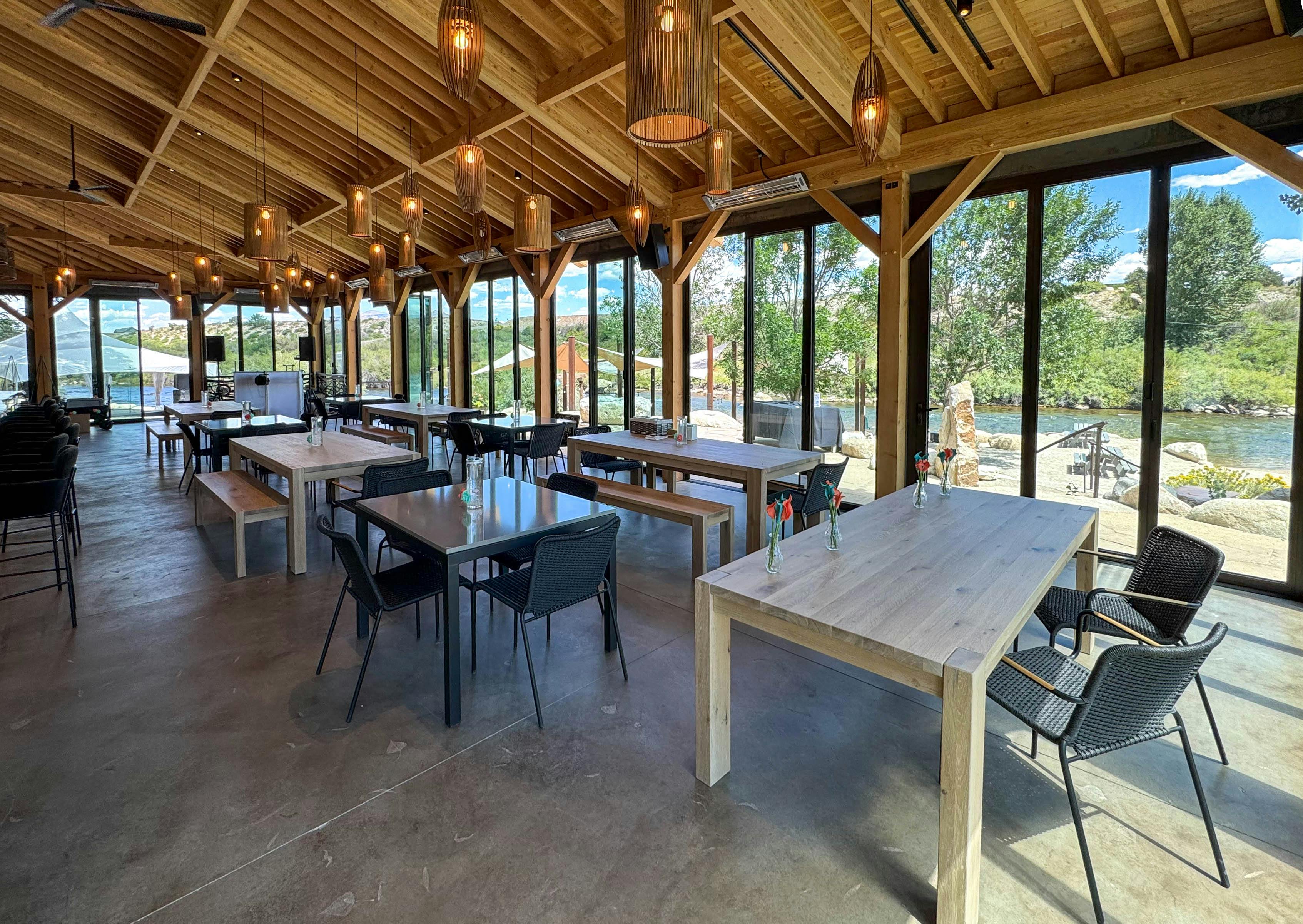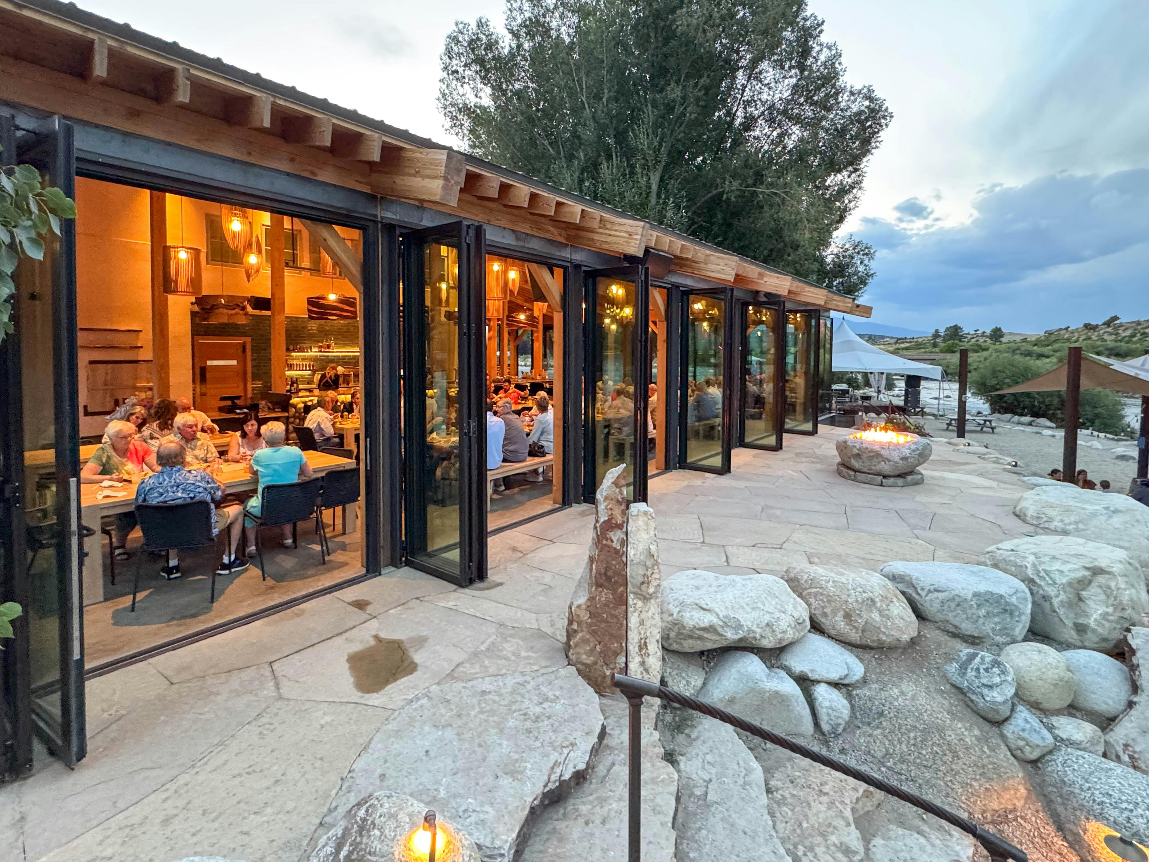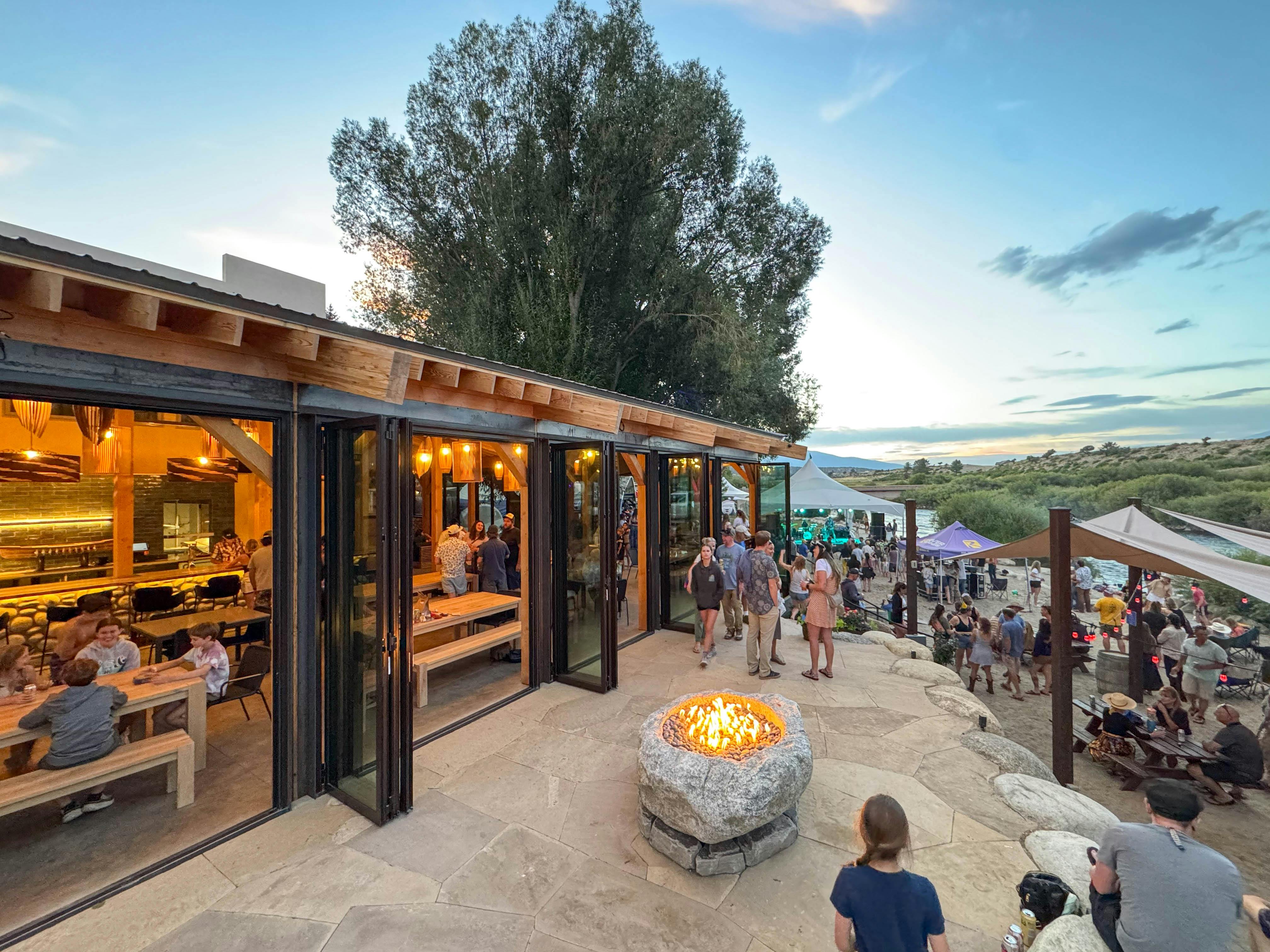 Allowing guests to see, feel, and hear the outdoors, this Colorado riverside restaurant immerses itself in its natural environment with flexible folding glass walls.