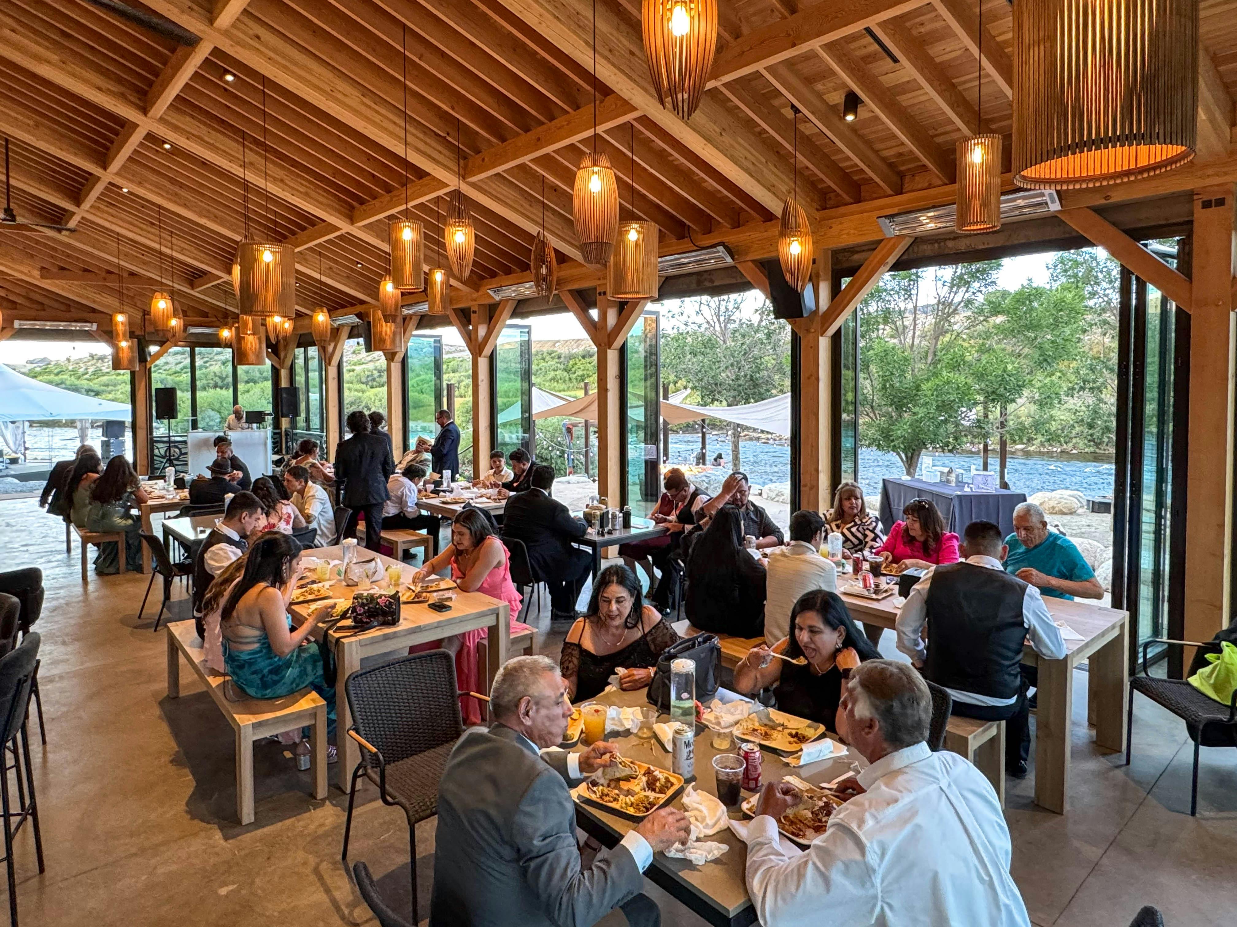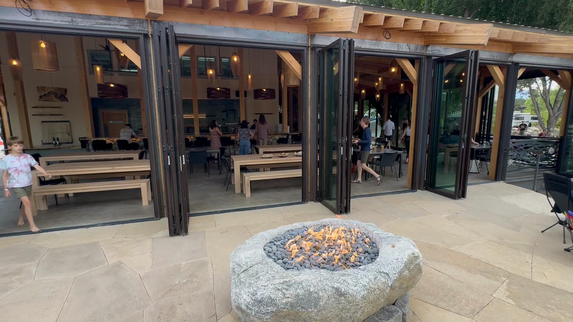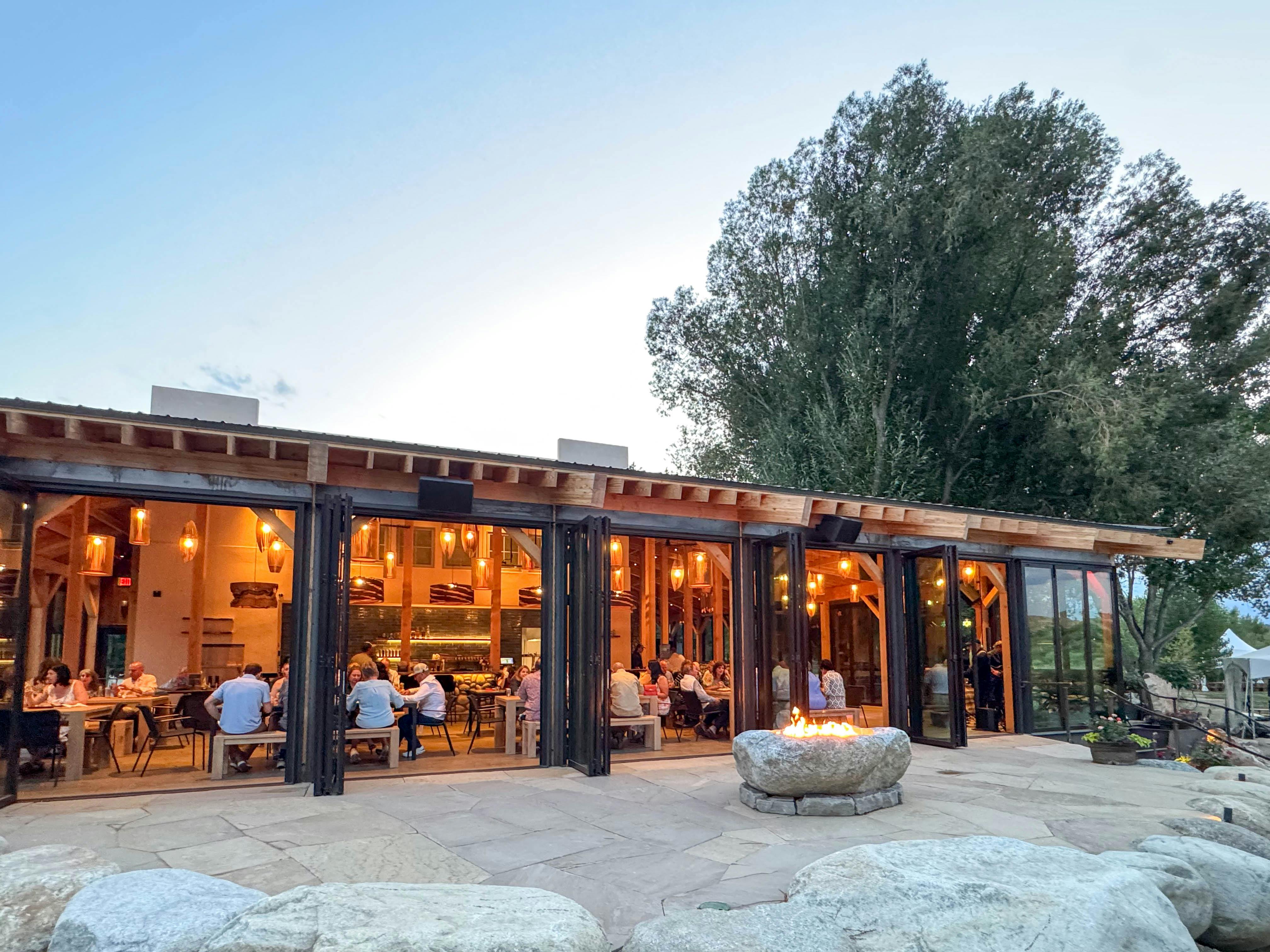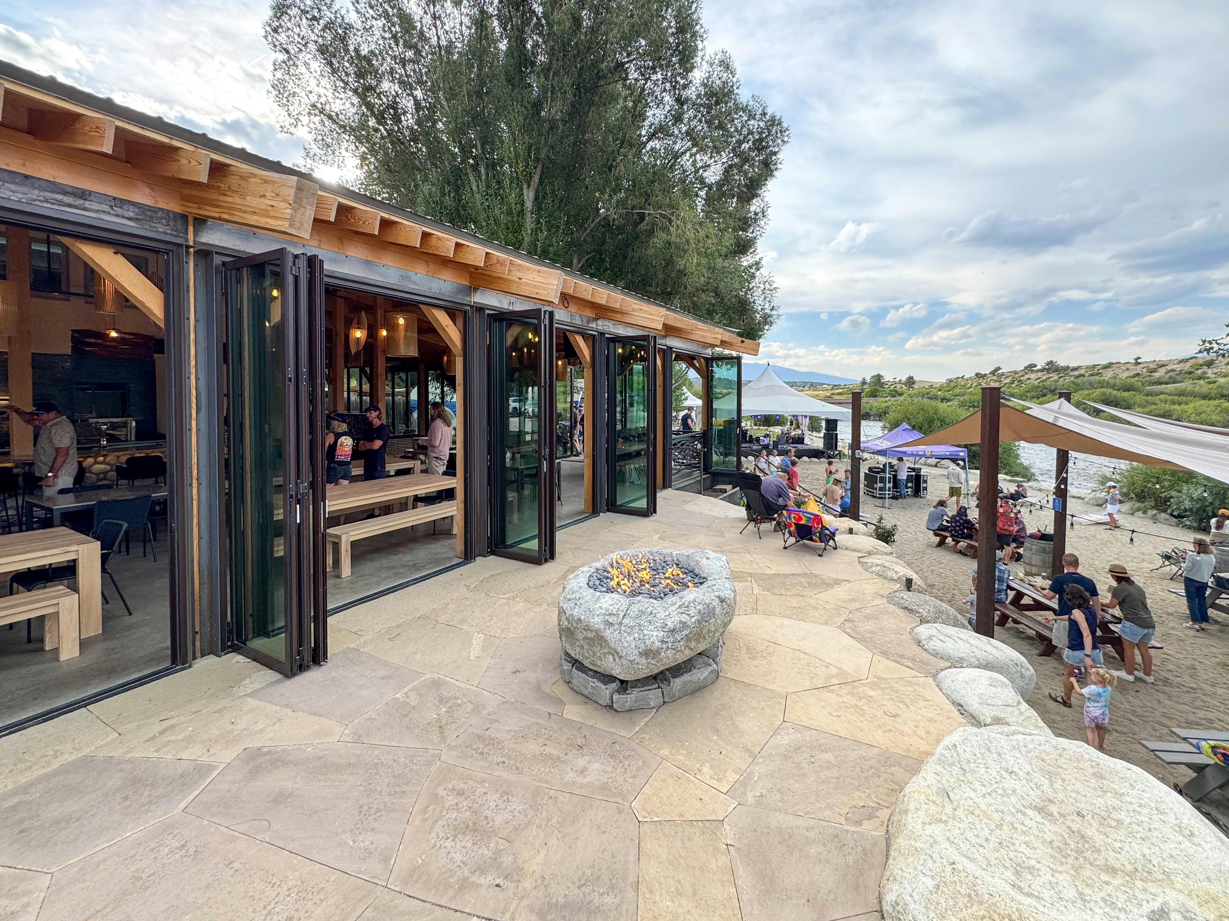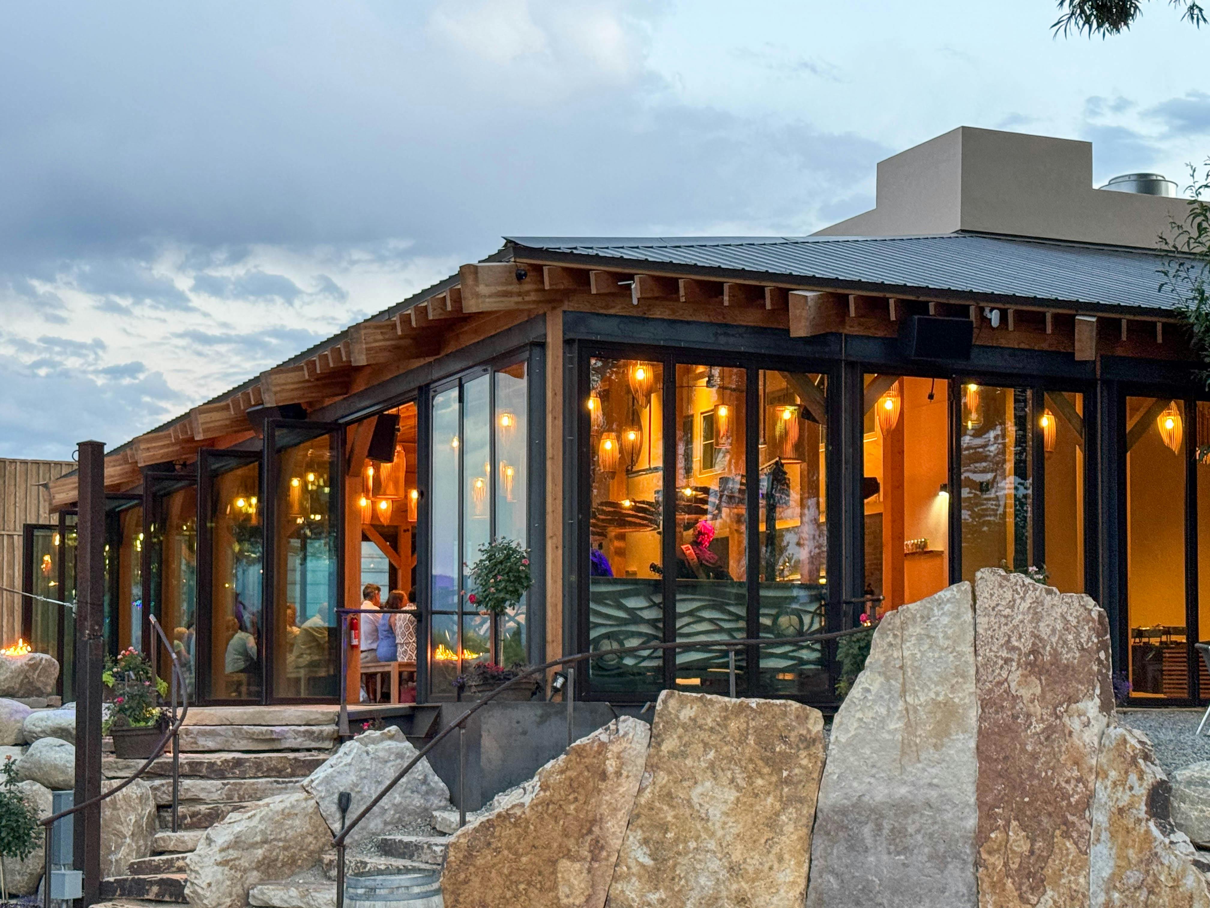 Allowing guests to see, feel, and hear the outdoors, this Colorado riverside restaurant immerses itself in its natural environment with flexible folding glass walls.