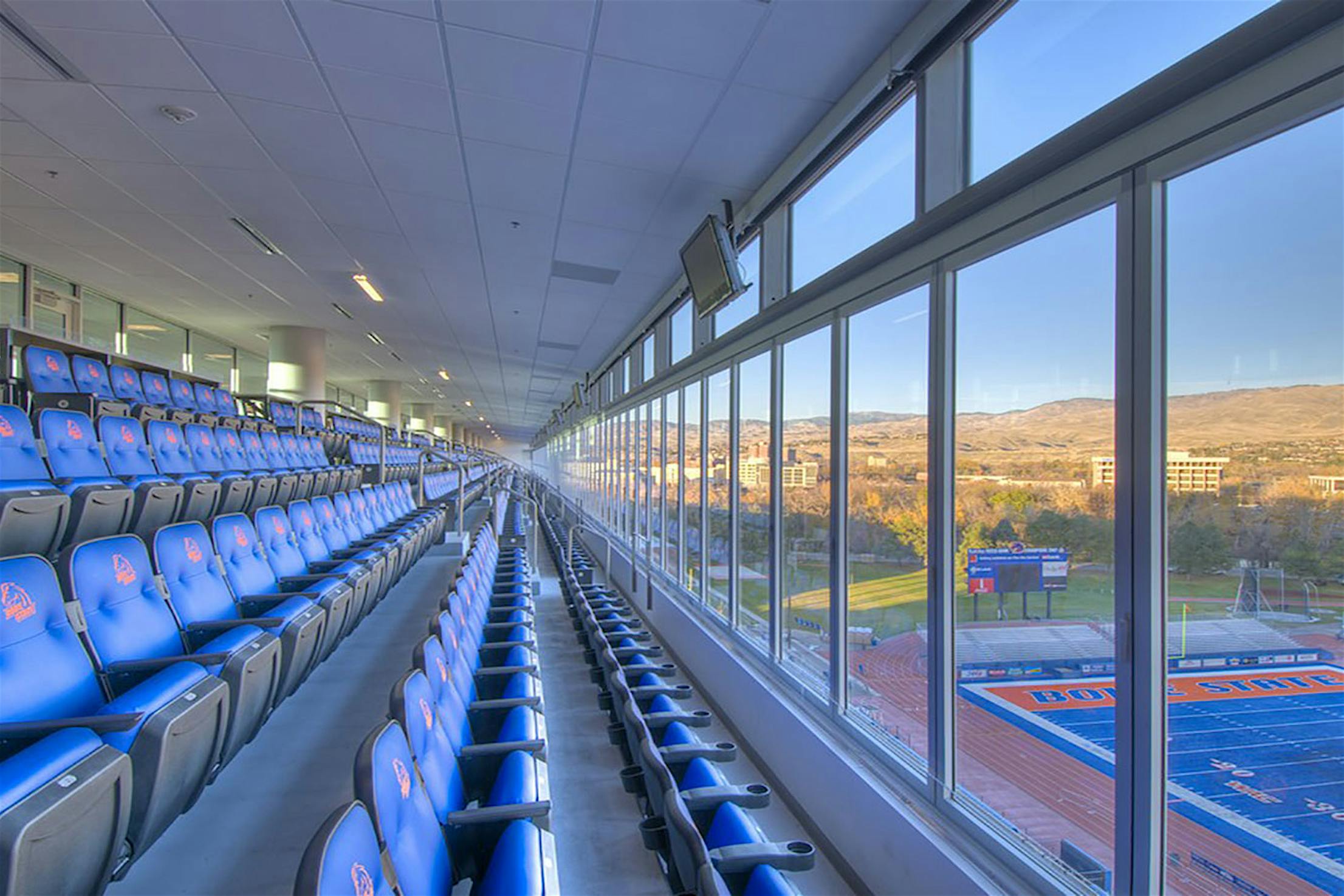 The addition of the Stueckle Sky Center to Boise State Stadium addressed needed improvements to university operations, including production and media broadcast support for its successful athletic department. Yet the school’s mandate to Salt Lake City-based FFKR Architects also emphasized new opportunities for "booster accommodations" – luxury seating and event spaces for big fans of the BSU Broncos, on three of four new levels: loge boxes, club seating, and sky suites.