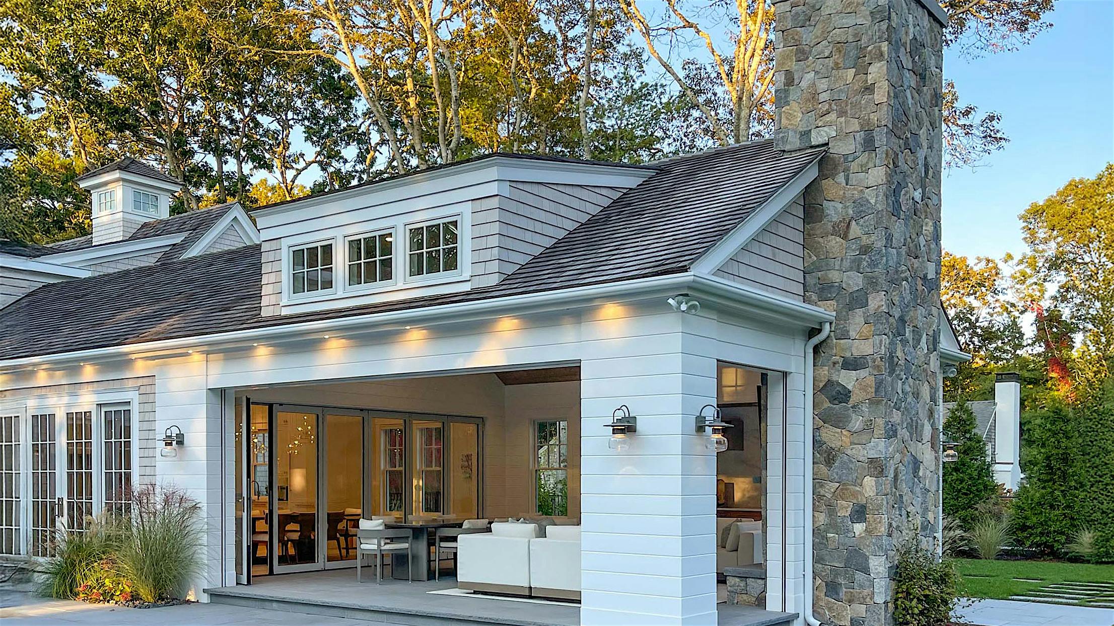 The vision for this Cape Cod home was to achieve effortless indoor-outdoor living by seamlessly connecting its interiors to the natural surroundings. Envisioned by Deborah Kendall from Progressive Designs, the design extends the indoor dining area into a charming, screened porch that opens to the patio and pool. The bright and airy outdoor living room perfectly accommodates large family gatherings and events, offering a functional space that captures the breezy coastal atmosphere.