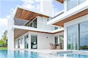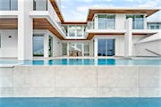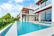 With help of the SL73 Aluminum Framed Thermally Broken Hurricane Approved Folding System, this Palm Beach cabana offers homeowners a superb indoor/outdoor entertainment space.